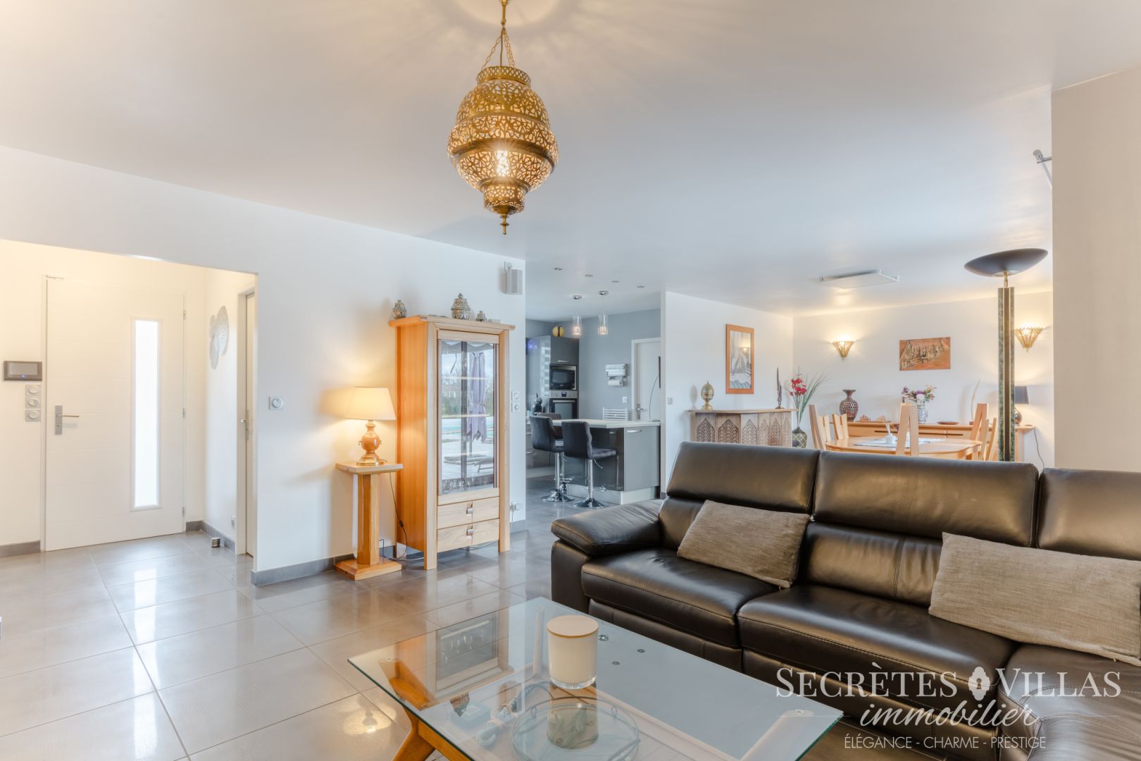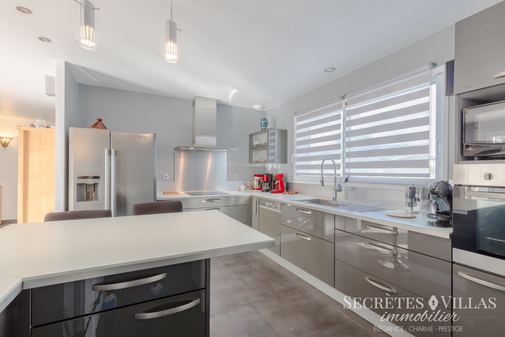 VENDU PAR NOS SOINS. NOUVEAUTE! HAUT BOULIAC, secteur très prisé au calme dans environnement résidentiel recherché, belle maison contemporaine PLAIN PIED 2014 vous offrant: entrée, open space 53m2 salon salle à manger et cuisine US équipée (possibilité baie supplémentaire dans salon et agrandissement avec chambre mitoyenne mur non porteur), cellier buanderie, couloir dégagement, suite parentale: chambre placard, dressing et Sdb balnéo/douche italienne. 3 chambres, Sdb/douche italienne à jets. 2 Terrasses. Pergola avec stores. Auvent abrité et carrelé avec évier, WC pour piscine et rangement. Parking 6 véhicules. GARAGE 57M2 grande hauteur sous plafond et local technique. Cabanon. Le tout sur un beau terrain clos paysagé sans vis à vis bien exposé de 2015m2 avec piscine au brome 8X4 chauffée pompe à chaleur et rideau de protection électrique. Construction et prestations de qualité: vide sanitaire, garantie décennale et dommage ouvrage jusqu'à été 2024, baies alu double vitrage, Chauffage au sol pompe à chaleur , ballon thermodynamique, panneaux solaires, alarme, fibre, visiophone, portail et porte de garage électriques, 3 récupérateurs d'eau, carrelé tout autour de la maison, grand parking enrobé..Adapté PMR. Ensemble entretenu et confortable. Commerces et écoles. A côté Bus pour collège et lycée. 12mn Bordeaux centre et gare Saint jean. Les informations sur les risques auxquels ce bien est exposé sont disponibles sur le site Géorisques (4.12 % honoraires TTC à la charge de l'acquéreur.)