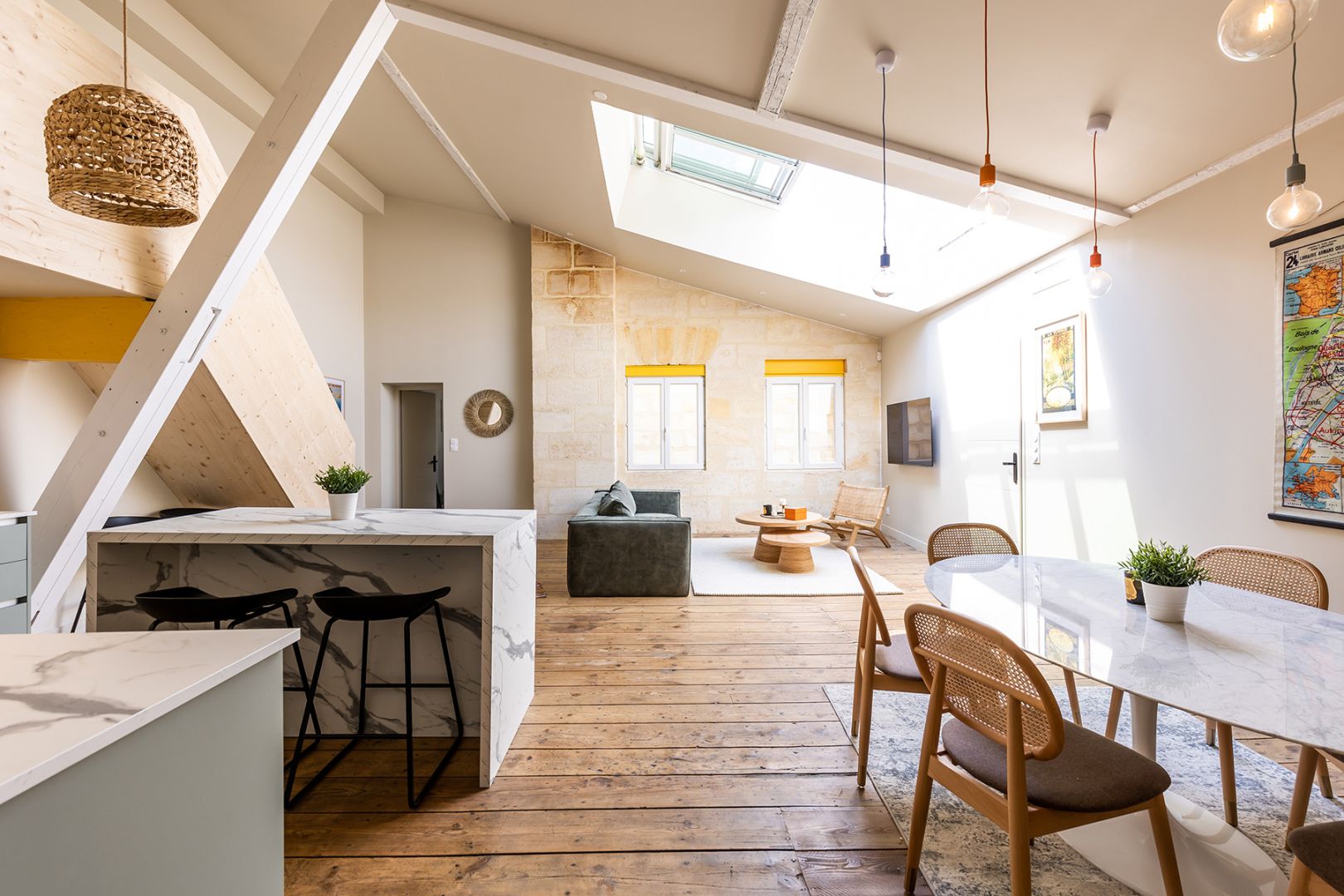 VENDU PAR L'AGENCE. BORDEAUX COEUR CHARTRONS, idéalement placé entre RUE NOTRE DAME et QUAIS, au calme dans petite copropriété avec ascenseur, au dernier étage superbe duplex 130m2 vendu meublé et entièrement rénové avec matériaux de qualité vous offrant: entrée placard vestiaire, buanderie, cellier, vaste open space comprenant jolie cuisine équipée US et ilot central, superbe pièce de réception belle hauteur de plafond et splendide verrière électrique à ciel ouvert, wc lave main, 3 chambres, sdb, suite parentale: chambre, dressing équipé et sde avec wc. Local rangement sur palier. Ensemble baigné de lumière mêlant charme de l'ancien et confort contemporain. A pied tous commerces et tram. Produit introuvable sur le marché! La copropriété inclut 5 lots pour un montant moyen annuel de la quote part du budget prévisonnel des dépenses courantes de 1 380 EUR. Pas de procédure en cours. Mandat délégué. Les informations sur les risques auxquels ce bien est exposé sont disponibles sur le site Géorisques.