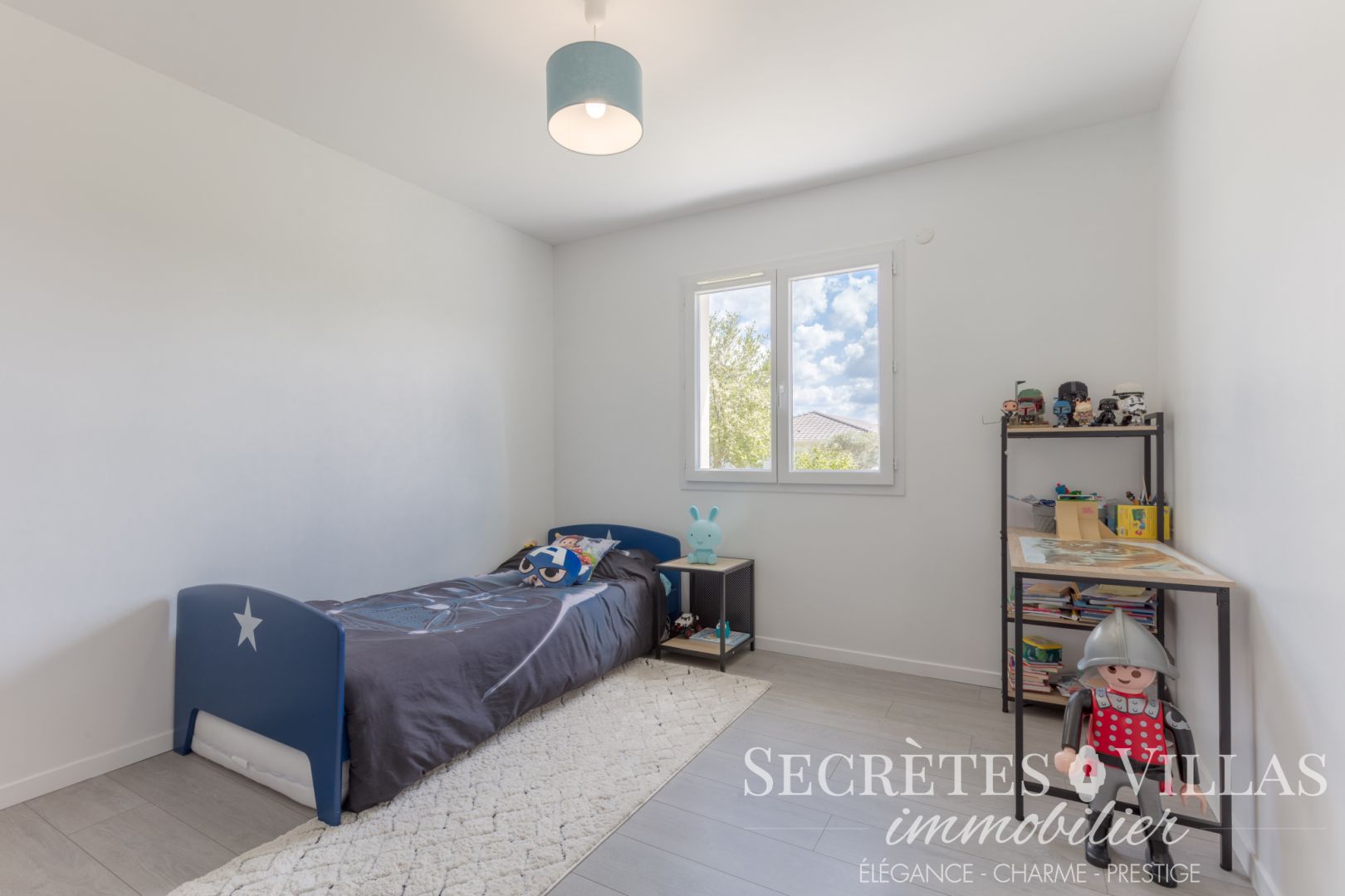 VENDU PAR L'AGENCE. HAUT BOULIAC secteur prisé, au calme MAISON CONTEMPORAINE 110M2 PLAIN PIED DE 2014 vous offrant: entrée sur OPEN SPACE DOUBLE EXPOSITION 53,50M2: séjour cuisine équipée US et salon avec conduit cheminée, cellier buanderie. Espace nuit et dégagement: 3 chambres placards dont deux de 13M2, SDB/DOUCHE, Wc et lave main. Garage simple. Parking 3 véhicules. Le tout sur un agréable terrain clos arboré 900m2 vue verdoyante avec vaste jolie terrasse bois exotique et belle PISCINE enterrée 7X3 avec abri AZENCO extra plat août 2020. Potentiel constructible. Construction et prestations: Vide sanitaire total, isolation ++ norme RT 2012, garantie décennale 2024, parking bel enrobé 100m2 mai 2023, chauffage sol pompe à chaleur, Clim réversible pièce de vie, baies Alu, volets électriques, portail automatique, visiophone. DIAGNOSTICS TOUT OK. Cadre résidentiel et environnement de qualité. Très bonne Ecole maternelle et primaire. Tous commerces à proximité. Nombreux Bus pour Bordeaux collège et lycée, arrêt à côté. 10MN GARE ST JEAN ET BORDEAUX CENTRE! Les informations sur les risques auxquels ce bien est exposé sont disponibles sur le site Géorisques. Les informations sur les risques auxquels ce bien est exposé sont disponibles sur le site Géorisques : www.georisques.gouv.fr (4.13 % honoraires TTC à la charge de l'acquéreur.)