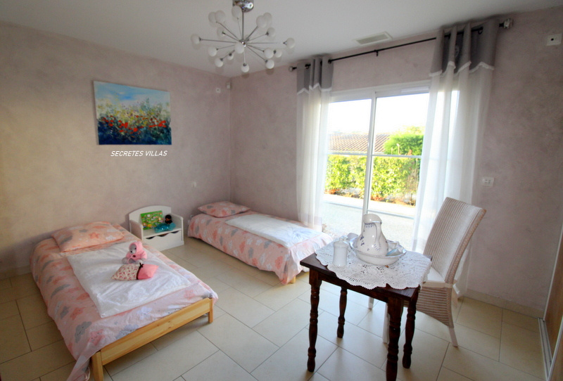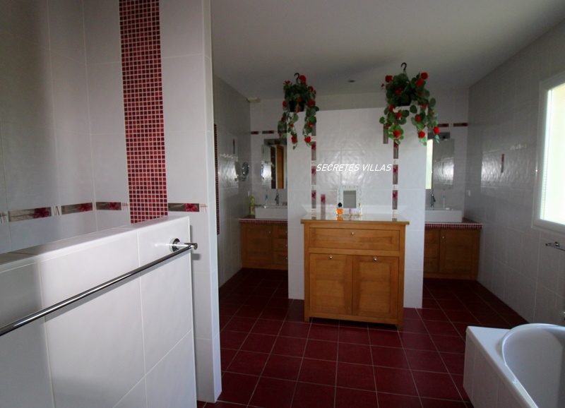 SUD BORDEAUX, SECTEUR LA BREDE AU CALME, BELLE VILLA CONTEMPORAINE ANNEE 2007 350M2 DONT 226M2 DE PLAIN PIED VOUS OFFRANT : BELLE ENTREE, WC AVEC LAVE MAIN, OPEN SPACE 80M2 COMPRENANT MAGNIFIQUE PIECE DE RECEPTION CHEMINEE ET SUPERBE CUISINE US EQUIPEE. SALON TV OU BUREAU OUVERT SUR SEJOUR, CELLIER BUANDERIE. COIN NUIT DISTRIBUANT 3 CHAMBRES 17, 16,50M2 ET 13M2 CHACUNE AVEC SDE. WC AVEC LAVE MAIN. AGREABLE SUITE PARENTALE AVEC CHAMBRE 23M2, SDB/DOUCHE A L'ITALIENNNE 14M2, WC ET DRESSING AMENAGE 8M2. EN RDJ AVEC ACCES INTERIEUR OU ENTREE INDEPENDANTE : CHAMBRE/BUREAU AVEC SDE, BUANDERIE, CHAUFFERIE, CAVE A VIN, FAMILY ROOM 80 M2. GARAGE FERME 2 VEHICULES ET CARPORT 3 VEHICULES. BELLE CUISINE D'ETE EQUIPEE AVEC BARBECUE, PATIO AVEC JACUZZI. LE TOUT SUR UN BEAU TERRAIN PISCINABLE CLOS ET ARBORE DE 1500M2 EXPOSE SUD. ENSEMBLE DE QUALITE TRES SOIGNE. BELLES PRESTATIONS: HUISSERIES ALU DOUBLE VITRAGE, VOLETS CENTRALISES, CHAUFFAGE AU SOL GAZ, CLIMATISATION, ASPIRATION CENTRALISEE, ALARME, PANNEAUX SOLAIRES, PORTE DE GARAGE ET PORTAIL AUTOMATIQUE. ECOLES, TRANSPORTS POUR COLLEGE ET LYCEE LA BREDE PRIVE OU PUBLIC. 2MN GARE ST MEDARD D'EYRANS, 2MN CENTRE LA BREDE, 15 MN BORDEAUX ST JEAN. PRODUIT DE QUALITE RECHERCHE SUR LE MARCHE! (4.00 % honoraires TTC à la charge de l'acquéreur.)