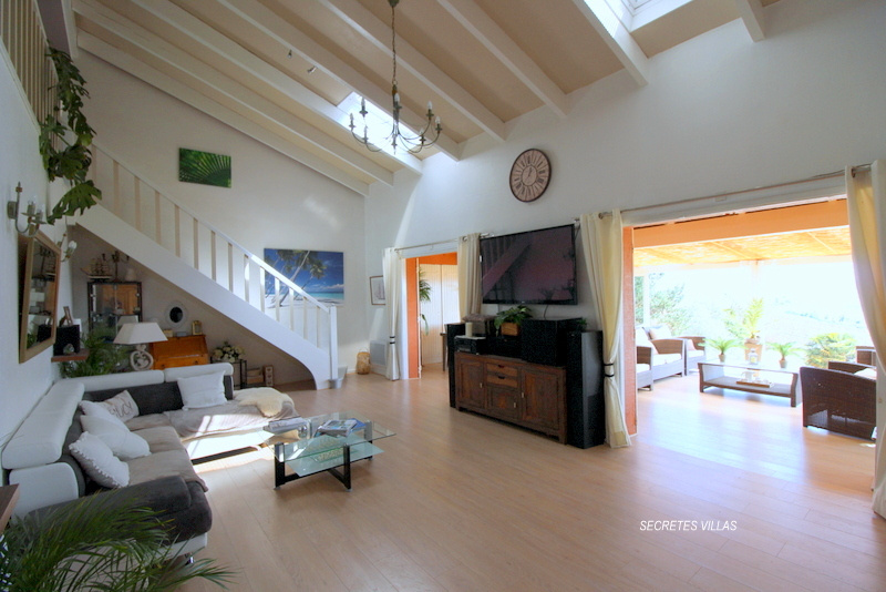 BORDEAUX 40MN AU CALME DANS CADRE BUCCOLIQUE AVEC VUE DOMINANTE EXCEPTIONNELLE 180o, SUPERBE VILLA LUMINEUSE 360M2 RENOVEE AU GOUT DU JOUR VOUS OFFRANT AU RDC : ENTREE AVEC PLACARDS, BEAU SALON TOIT CATHEDRALE AVEC POELE A BOIS PROLONGE PAR TRES AGREABLE VERANDA SALLE A MANGER 38M2 MAGNIFIQUE VUE DEGAGEE, CUISINE EQUIPEE AVEC ESPACE REPAS 25M2 TOUJOURS AVEC VUE, COIN NUIT AVEC COULOIR DEGAGEMENT, 3 CHAMBRES, WC ET SDE DOUCHE ITALIENNE. A L'ETAGE: MEZZANINE COIN BUREAU 20M2, 2 CHAMBRES, VASTE SDB ET WC INDEPENDANT. EN REZ DE JARDIN: SALLE DE SPORT CARRELEE 58M2 AVEC BAIE VITREE, DRESSING, BUANDERIE, CAVE CELLLIER, DEBARRAS, CHAMBRE AVEC DOUCHE 13M2 ACCES INDEPENDANT AVEC TERRASSE PRIVEE. GARAGE 25M2 HAUTEUR 2M68. CARPORT 2 PLACES ACCES VEHICULES HAUTS. POSSIBILITE DE GARER PLUSIEURS VEHICULES SUR LA PROPRIETE. PLUSIEURS TERRASSES VUE PANORAMIQUE EPOUSTOUFLANTE. ESPACE PISCINE : DOUCHE ET WC, POOL HOUSE, CUISINE D'ETE AVEC EVIER ET PLANCHA, TERRASSE COUVERTE, PERGOLA, GRANDE PISCINE TRADITIONNELLE BETON 10X5. LE TOUT SUR UN SOMPTUEUX TERRAIN ARBORE DE 4309M2 ENTOURE DE VIGNES AVEC VUE DEGAGEE RARISSIME A L'AMBIANCE TOSCANE. ENSEMBLE INTERIEUR ET EXTERIEUR SOIGNE. NOMBREUX RANGEMENTS. ENVIRONNEMENT DE QUALITE TRES REPOSANT. VIGNOBLES ET JOLIES COMMUNES AUX ALENTOURS. PROXIMITE COMMERCES. ECOLE MATERNELLE ET PRIMAIRE. BUS POUR COLLEGE ET LYCEE PUBLIC ET PRIVE TRAJET 10MN. IDEAL FAMILLES, RESIDENCE SECONDAIRE, PROFESSION LIBERALE...VERITABLE PETIT PARADIS ! TRES RARE SUR LE MARCHE! (5.53 % honoraires TTC à la charge de l'acquéreur.)