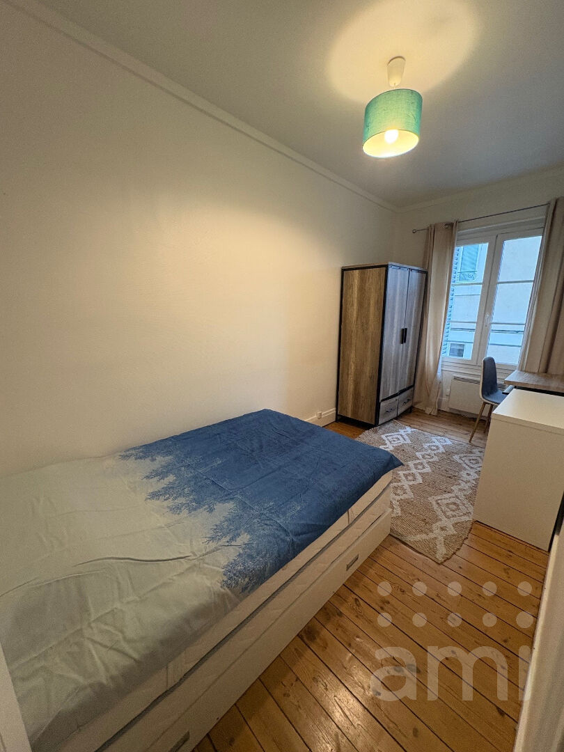 Location de quatre chambres meublées dans un appartement entièrement rénové avec goût de 82m². Entrée sur séjour, une cuisine aménagée et équipée, une salle d'eau et WC. Deux chambres de disponibles, une chambre individuel et l'autre avec salle d'eau privative. Appartement équipé et aménagé. Les charges comprennent : Internet, eau, gaz et électricité. Disponible de suite.