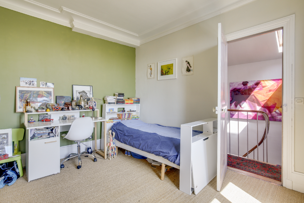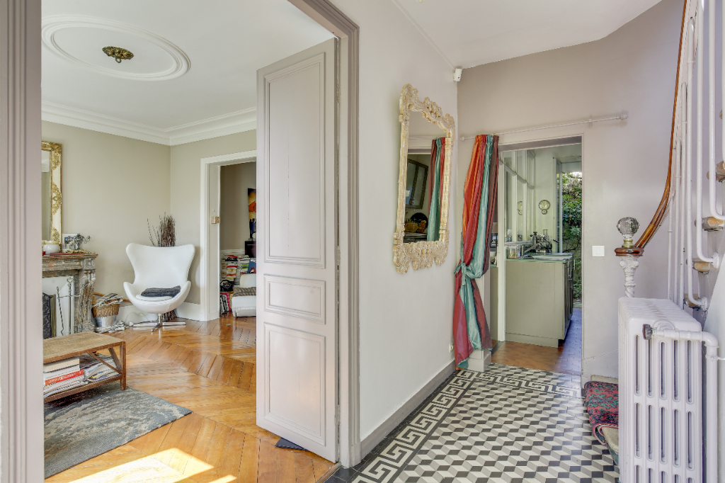 L'agence VILLA d'OUEST a le plaisir de vous proposer cette maison de caractère édifiée en 1893 qui est située dans le quartier très recherché de l'hôpital FOCH. Non mitoyenne, bâtie sur une parcelle paysagée de 290 m2, elle est composée : En RdC, d'un séjour traversant avec cheminée, parquet ancien, moulure et belle hauteur sous plafond, une belle cuisine donnant sur une terrasse à l'arrière. Au 1er étage, de 2 chambres dont une avec dressing, une salle de bains. Au 2ème étage , de 2 chambres, une salle de bains et 2 dressings. Cette maison dispose également d'un sous-sol total, entièrement aménagé avec entrée indépendante, une vaste pièce, salle de douche, cave, buanderie et un espace Jacuzzi. Un WC par niveau. Ses Atouts : beau jardin sans vis à vis, belle hauteur sous plafond, vue Paris qui font de cette maison un bien rare. Idéalement située : Commerces, écoles, transports à moins de 5 mn. Box possible à la location à 10 m de la maison. (2.40 % honoraires TTC à la charge de l'acquéreur.)