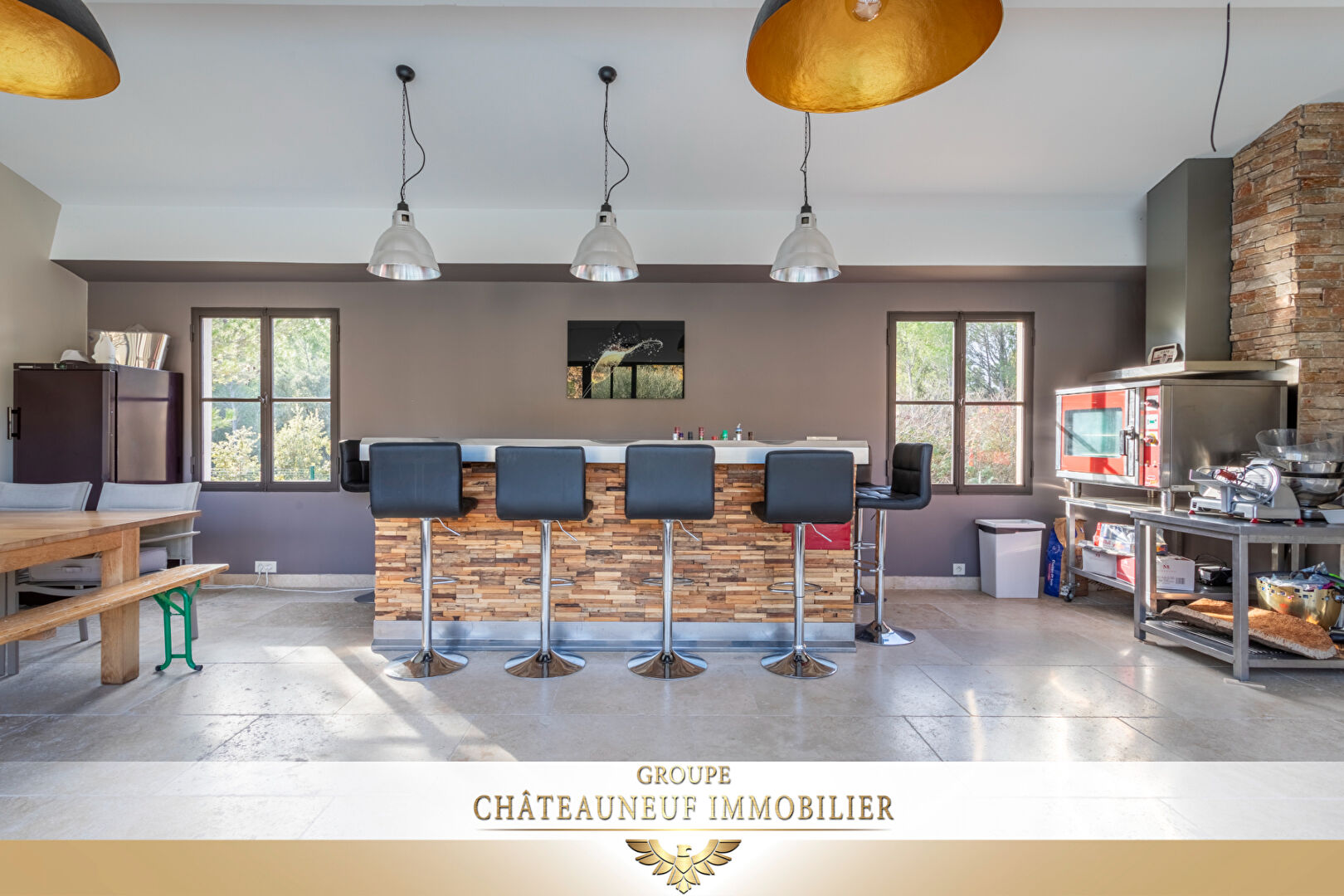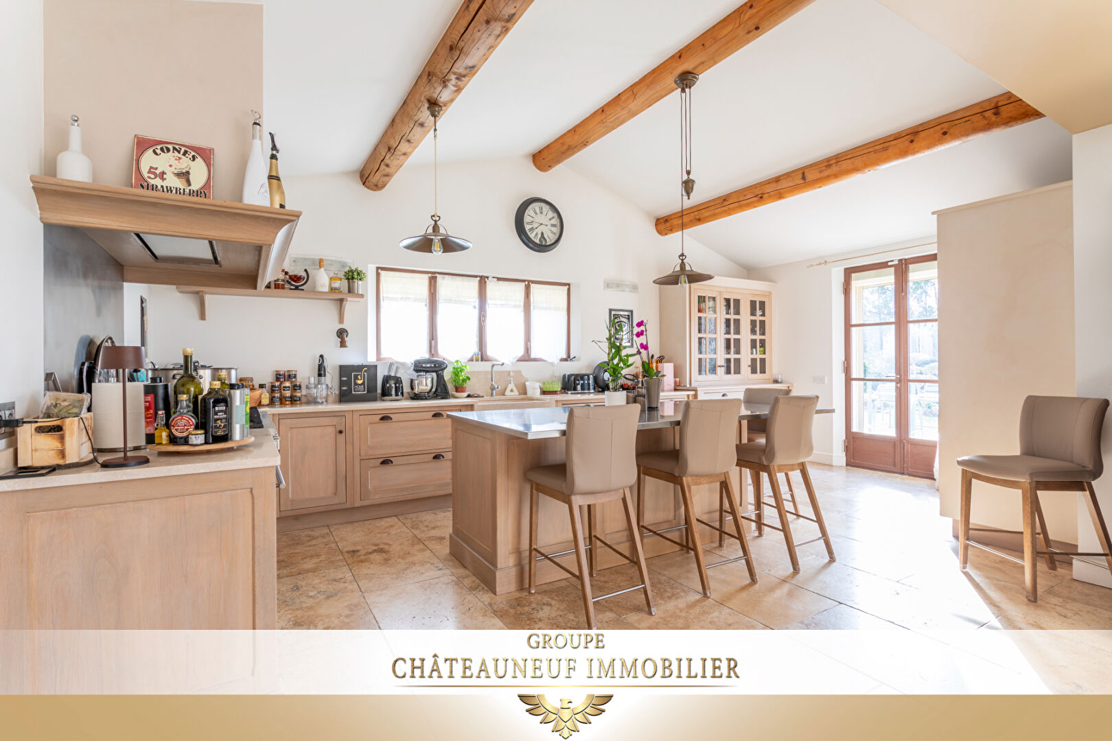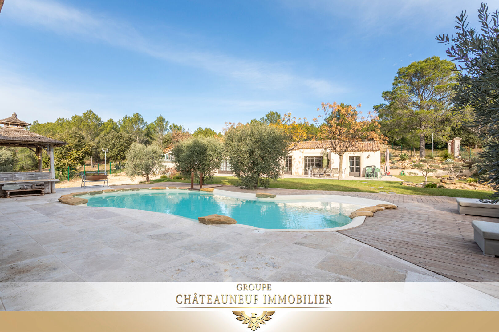 A VENDRE - MAGNIFIQUE VILLA CONTEMPORAINE A VENTABREN Le Groupe Châteauneuf Immobilier est fier de vous présenter cette splendide villa contemporaine de plain-pied, entièrement rénovée avec soin en 2016, nichée dans un quartier recherché de Ventabren. A seulement 15 minutes d'Aix-en-Provence et de la gare TGV d'Aix, vous profiterez d'un cadre de vie exceptionnel alliant calme, confort et proximité des commodités (écoles, commerces, services). Caractéristiques principales Surface habitable : Environ 160 m², avec des volumes lumineux et une disposition optimisée sur 3000 m² de terrain Orientation : Exposition plein Sud, garantissant une belle luminosité tout au long de la journée. Terrasse : Sublime terrasse de 100 m² idéale pour vos moments de détente ou pour recevoir vos proches. Garage : Vaste garage de 60 m², parfait pour plusieurs véhicules et rangement. Pool House : Espace indépendant de 60 m², entièrement isolé et équipé, idéal pour vos journées ensoleillées et vos soirées conviviales. Piscine : Piscine moderne au sel de 10 x 4 m, entourée d'un espace paysager sans aucun vis-à-vis. Jacuzzi : Pour des instants de relaxation inégalés. Technologies et confort moderne Domotique : Gestion centralisée des équipements et système de caméras pour une sécurité et une commodité maximales. Un cadre de vie unique Cette villa combine le charme de la modernité, le confort absolu et une situation privilégiée. Profitez de la quiétude d'un environnement résidentiel, tout en restant à proximité immédiate des commodités essentielles et des grands axes. Une propriété d'exception à découvrir sans tarder ! Pour plus d'informations ou pour organiser une visite, contactez-nous dès aujourd'hui. Vivez l'élégance et la sérénité à Ventabren.