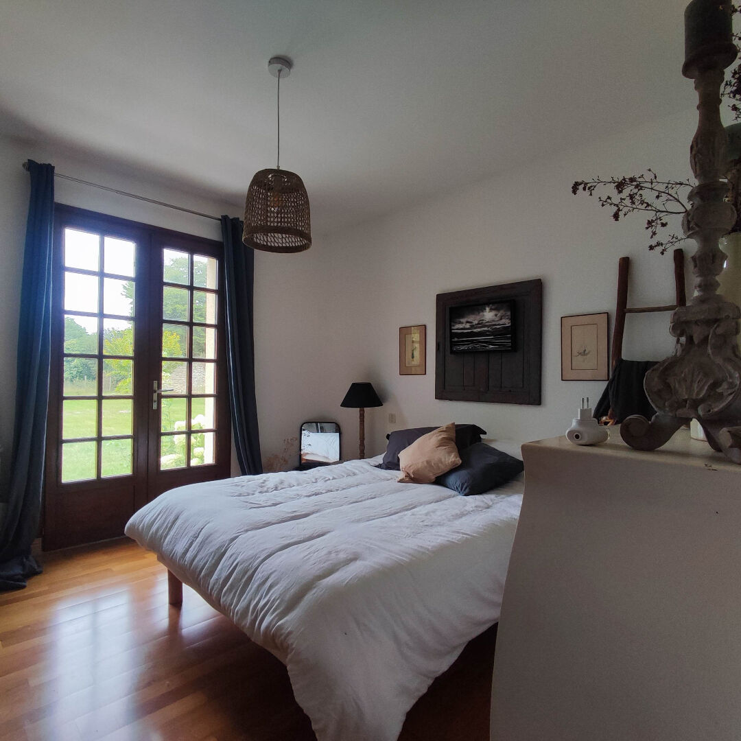 Propriété nichée entre HENNEBONT et KERVIGNAC Maison traditionnelle d'architecte de 147 m² dans un cadre d'exception ! Le rez-de-chaussée s'ouvre sur un hall distribuant un espace de vie composé d'un salon-séjour avec cheminée et insert, d'une cuisine aménagée et équipée, de deux chambres avec placards, d'une salle de bains et d'un toilette indépendant. A l'étage, une mezzanine dessert 4 chambres, une salle d'eau et un WC. Sous-sol et caves en pierre. Le jardin de plus de 5 000 m² est composé d'arbres d'ornement et de fruitiers. Les informations sur les risques auxquels ce bien est exposé sont disponibles sur le site Géorisques : www.georisques.gouv.fr. (6.02 % honoraires TTC à la charge de l'acquéreur.)