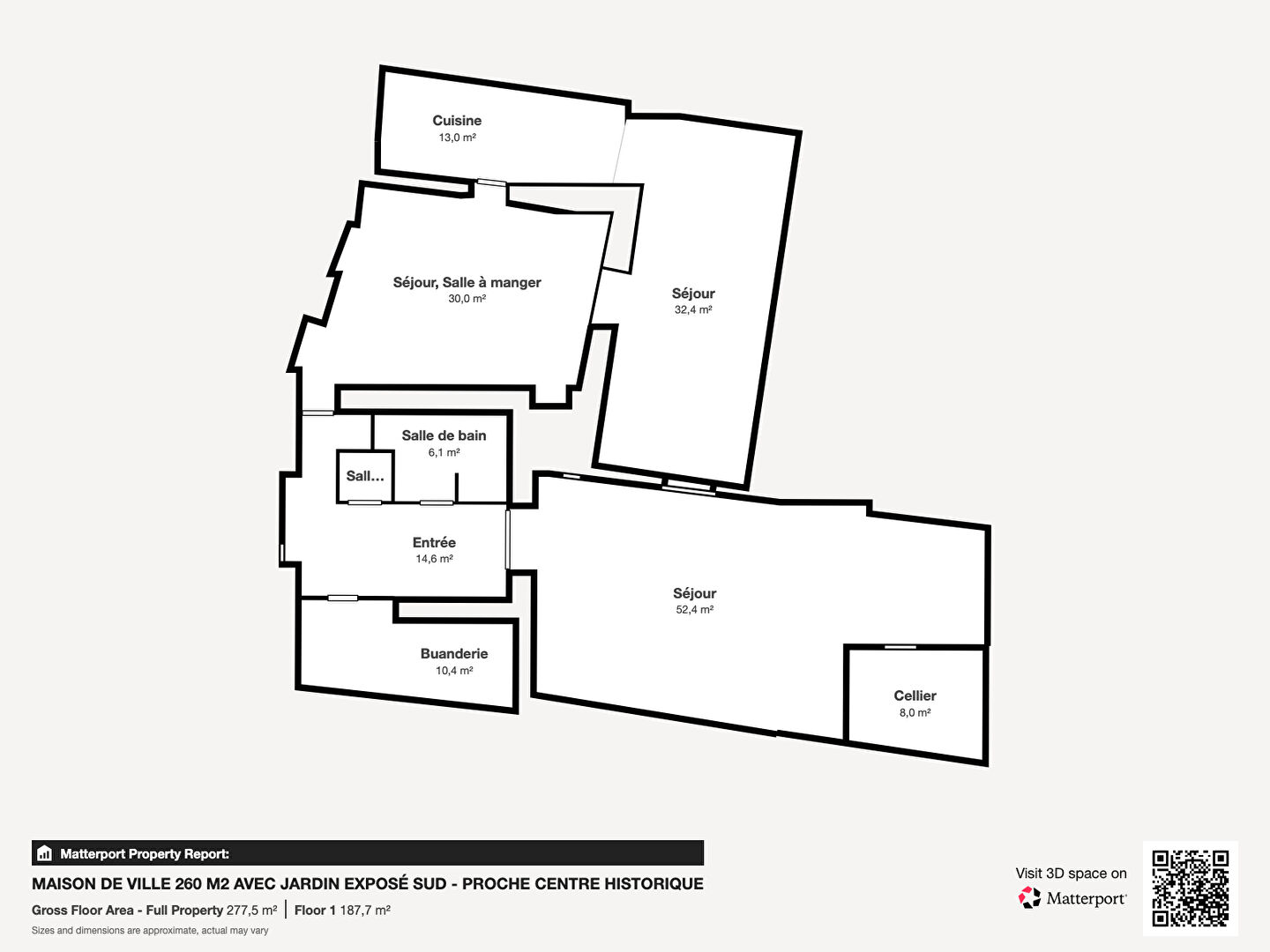 MAISON DE VILLE 260 M2 AVEC JARDIN EXPOSÉ SUD - PROCHE CENTRE HISTORIQUE Rue du Particulier vous propose à la vente cette MAGNIFIQUE maison de ville d'une surface d'environ 260 m2 sur un terrain cadastré de 411 m2. Une propriété de caractère située proche du CENTRE HISTORIQUE de Bayeux, de toutes les commodités et de la CATHÉDRALE Notre-Dame de Bayeux. Vous trouverez tout le CHARME DE L'ANCIEN rénové avec goût et des matériaux HAUT DE GAMME encore sous garantie décennale. Des finitions sont à prévoir. Elle offre au rez-de-chaussée une entrée qui dessert un SUBLIME SÉJOUR/SALON de 59 m2 dont une cave à vin, un second séjour de 29 m2 avec une cheminée (transformable en suite parentale pour une VIE DE PLAIN-PIED), une cuisine de 13,78 m2 une buanderie, une salle d'eau,et un wc indépendant. En complément, une magnifique véranda de 30 m2 donnant accès à une terrasse carrelée avec une EXPOSITION SUD qui est très recherchée et un double garage de 50 m2. A l'étage, un palier dessert 1 bureau, 4 chambres de 13,06 m2, 13,31 m2, 14 m2 et 14,95 m2. Dans cette dernière chambre, un escalier est présent pour accéder aux combles isolées (33 m2 au sol) pouvant servir d'espace de stockage ou de créer un autre espace d'habitation. En complément, un wc indépendant. Il sera très facile de créer une salle d'eau supplémentaire. Cette maison est idéale pour une grande famille. FENÊTRES PVC DOUBLE VITRAGE. Chaudière à condensation. Taxe foncière : 2000 euros DPE effectué en 08/2024. Montant estimé des dépenses annuelles d'énergie pour un usage standard : entre 2 830 et 3 890 euros. Prix moyens des énergies indexés au 01/01/2021 (abonnements compris). DPE : C / GES : C Consommation énergie primaire : 138 kwh/m2/an. Les informations sur les risques auxquels ce bien est exposé sont disponibles sur le site Géorisques : https://www.georisques.gouv.fr/ Honoraires à la charge du vendeur.