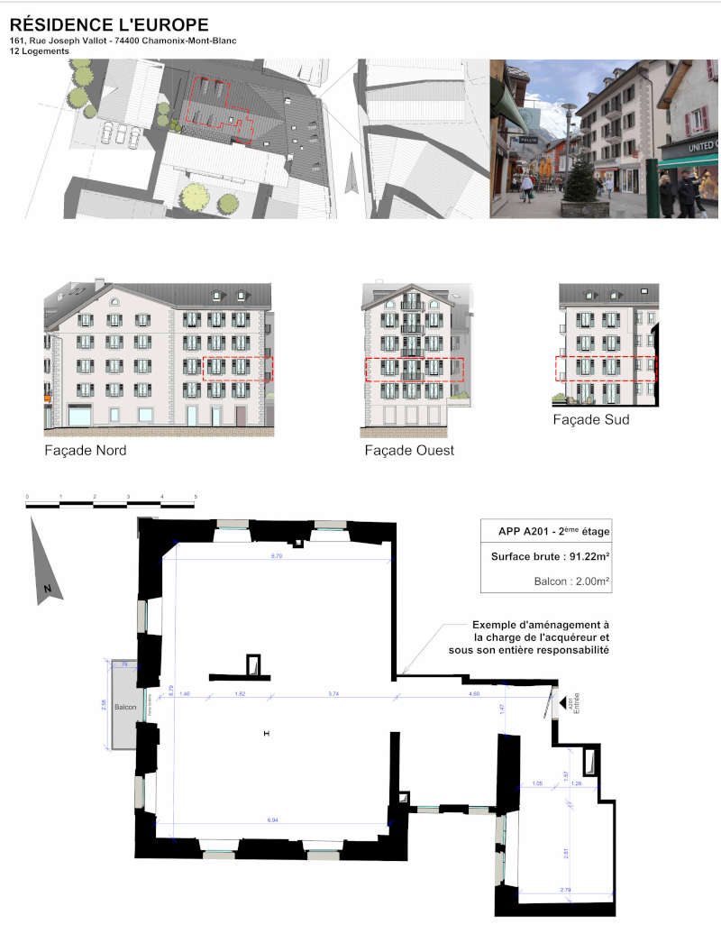 Dans un ancien hôtel situé au centre-ville, qui sera complètement rénové nous vous proposons ce grand appartement de plus de 90 m2, vendu en plateau brut*. Situé au 2e étage de la résidence, ce plateau pourra se composer de 3 chambres, chacune avec salle de bains. Le grand séjour donnera accès à un balcon. En annexe, une cave et un casier à ski. La résidence : Une histoire de près de 140 ans C'est François Jullien Couttet, forgeron et maréchal ferrant qui entre 1887 et 1897 construit cet hôtel de 80 chambres au coeur de la rue Vallot. L'hôtel de l'Europe voit le jour en 1897, c'est la Belle Époque ! Il sera exploité jusqu'à la fin des années 50, puis transformé au fil du temps en appartements. 2025 marquera la renaissance de ce beau bâtiment La façade sera restaurée en conservant son architecture et une nouvelle toiture sera posée dans le style qu'elle avait autrefois. L'intérieur sera complètement refait avec création d'un ascenseur, de casiers à ski et de caves. * La copropriété L'Europe comprend 12 appartements du 1er étage au 4ème + combles. Au rez de chaussée, nous retrouvons l'accès aux étages et 3 commerces ne faisant pas partie du programme de commercialisation. *Les appartements sont vendus en plateaux bruts, l'aménagement intérieur sera à la charge de l'acquéreur. Pour tout renseignement complémentaire, contactez-nous. Nota : *Les appartements sont vendus en plateaux bruts, l'aménagement intérieur sera à la charge de l'acquéreur. L'emplacement précis des éléments porteurs et des gaines techniques, ainsi que, les côtes, les surfaces et autres éléments architecturaux sont susceptibles d'évoluer en fonction des impératifs constructifs et des tolérances d'exécution.