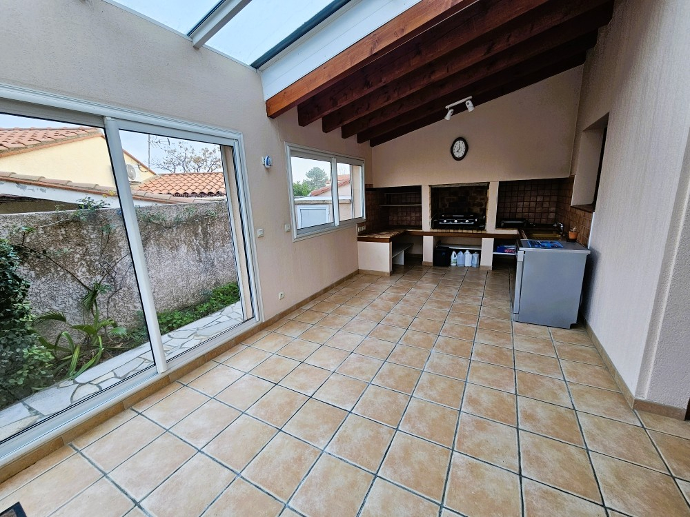 Dans un quartier calme et résidentiel, cette jolie villa 5 pièces 3 faces, climatisée se situe à quelques mètres de la plage ! Elle se compose au rez-de-chaussée d'une entrée, d'une cuisine ouverte sur une belle pièce de vie donnant accès à une véranda lumineuse avec une cuisine d'été, un cellier, un bureau, W.C. séparé avec douche. A l'étage, trois chambres avec placard, une salle d'eau avec W.C.. A l'extérieur vous disposerez d'une belle terrasse carrelée et d'un car port. Cette villa offre un cadre de vie agréable à deux pas de la mer. Les informations sur les risques auxquels ce bien est exposé sont disponibles sur le site Géorisques "www.georisques.gouv.fr"