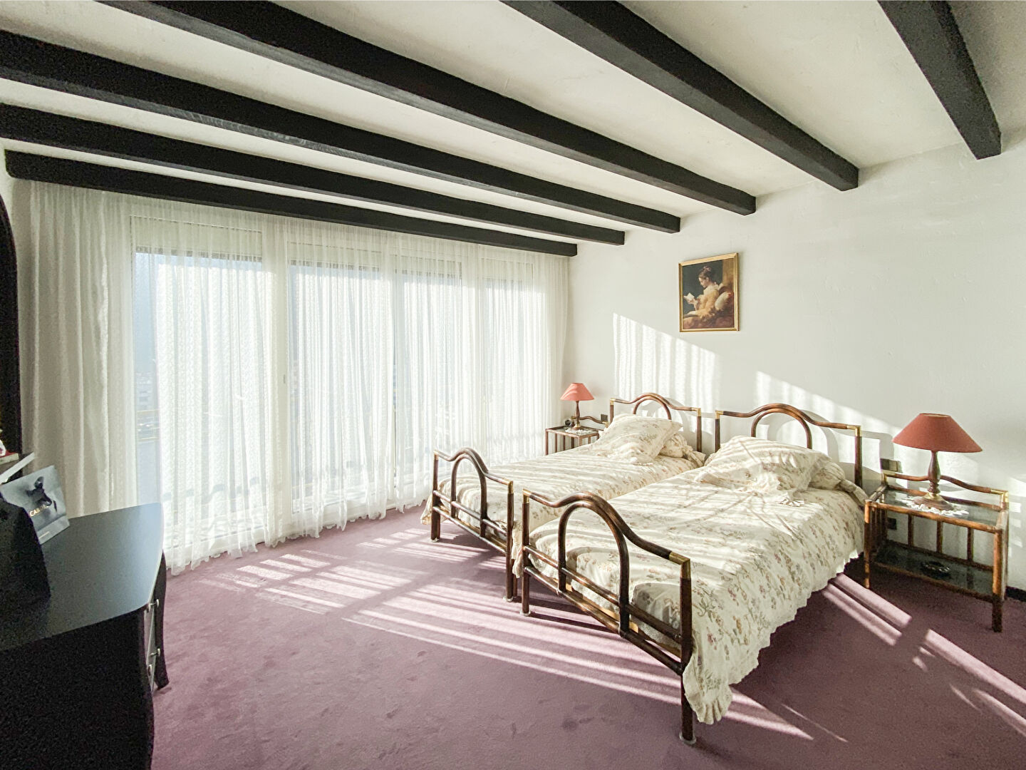 Très rare Seyssinet mairie villa-appartement sur toit 6P+C 155m² dernier étage terrasse avec ascenseur arrivant directement dans l'appartement. Vue panoramique. Grand séjour avec cheminée, cuisine, salle à manger, bureau, 3 grandes chambres dont une suite. 2 salle de bains. deux dressing, cellier. grand balcon, terrasse 40m² sur toit de l'immeuble. climatisation réversible. double vitrage aluminium 2 caves. parking facile, possibilité garage en location. Copropriété de 243 lots - dont 112 lots habitation. (Pas de procédure en cours). Charges annuelles : 5165 euros.