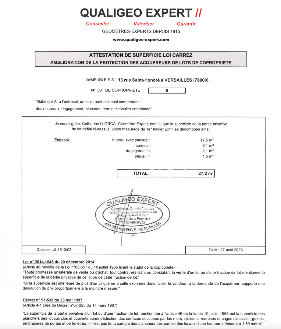 VERSAILLES SAINT-LOUIS BUREAUX Bureaux place de la Cathédrale Saint-Louis Idéalement placé, toute activité possible. Prévoir des travaux, vendu libre. Copropriété de 6 lots - dont 3 lots habitation. (Pas de procédure en cours). Charges annuelles : 1200 euros.