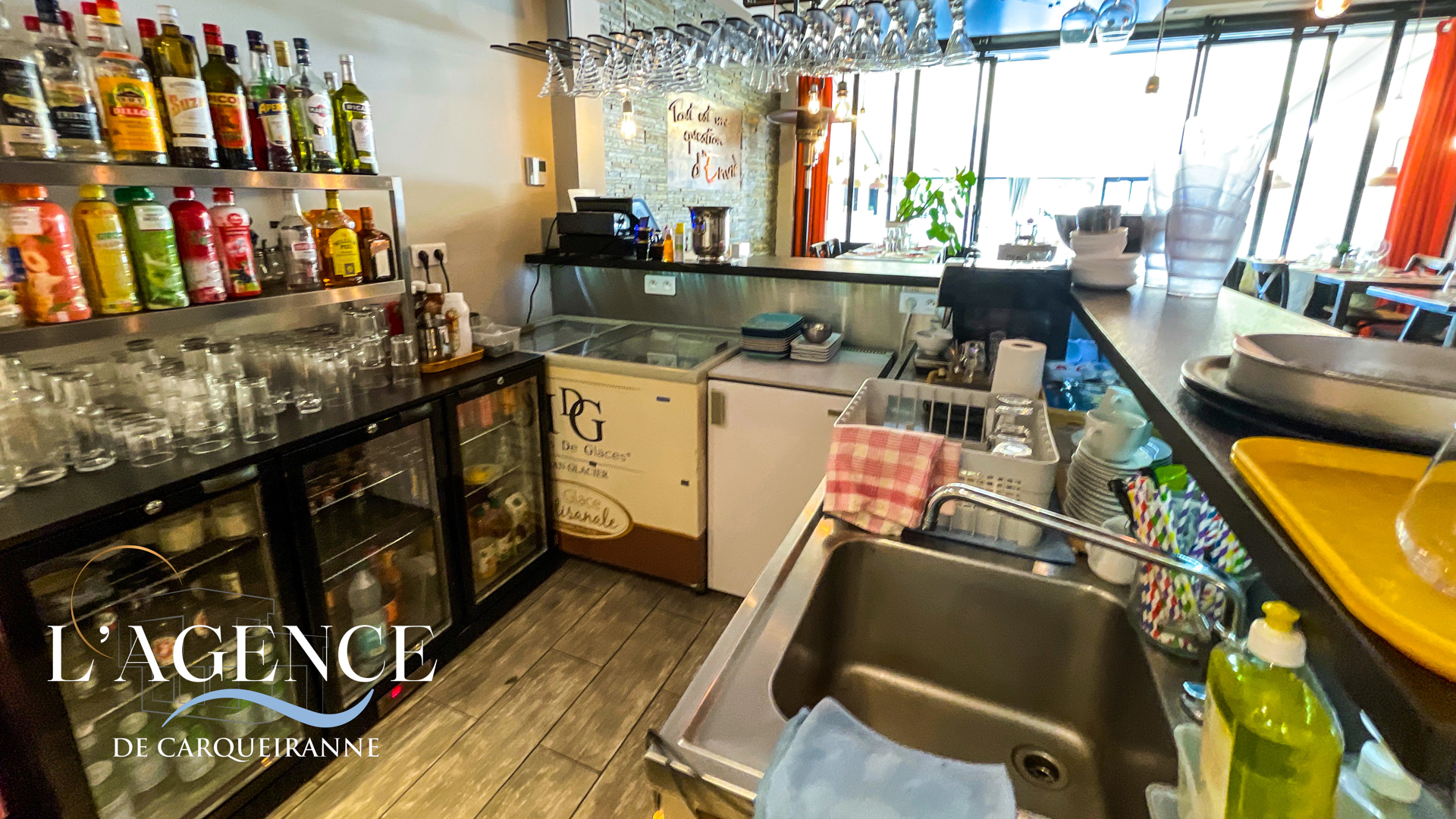 Samuel L'AGENCE DE CARQUEIRANNE " Côté Pro" vous propose "EN EXCLUSIVITE" le fonds de commerce d'un restaurant d'environ 86 M2 idéalement situé A 150 Mètres de la plage la plus fréquentée de la station balnéaire mais également face à la place centrale et l'office du Tourisme endroit idéal ou se déroule toutes les animations estivales mais également hivernale. Ce restaurant dispose de 56 places au total (32 places intérieur, 24 place en terrasse), la cuisine est récente et garantie, entièrement équipée d'une ligne de cuisson "ZANUSSI" une belle cave a vins, du mobilier neuf, le tout encore garantie. La salle est climatisée et décorée avec gout. La terrasse est protégée par un vélum neuf et électrique. Cette affaires est idéal pour un couple à l'année et 2 personnes en CDD en saison. Possibilité de faire une brasserie chic ou bristronomique. A visiter rapidement !