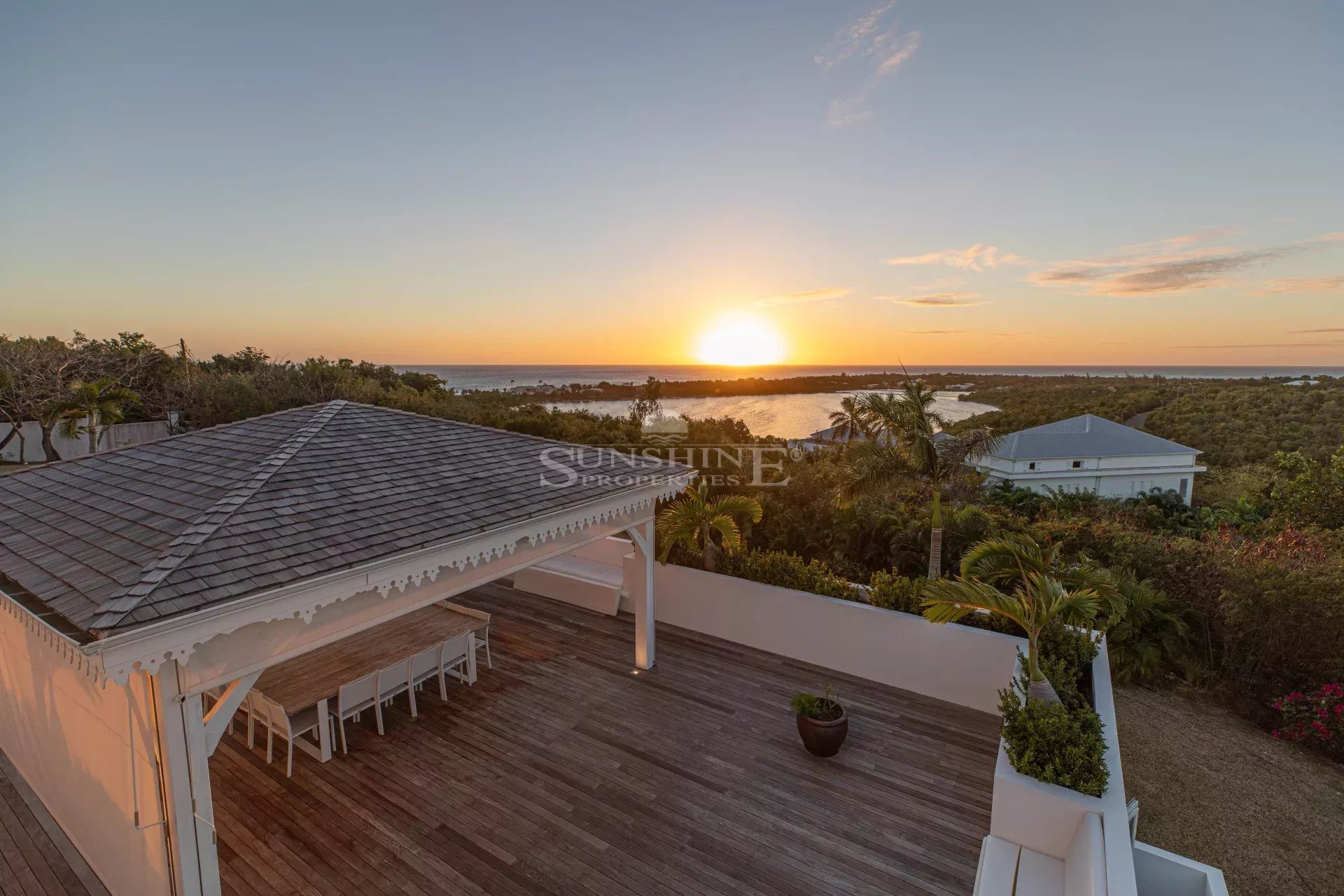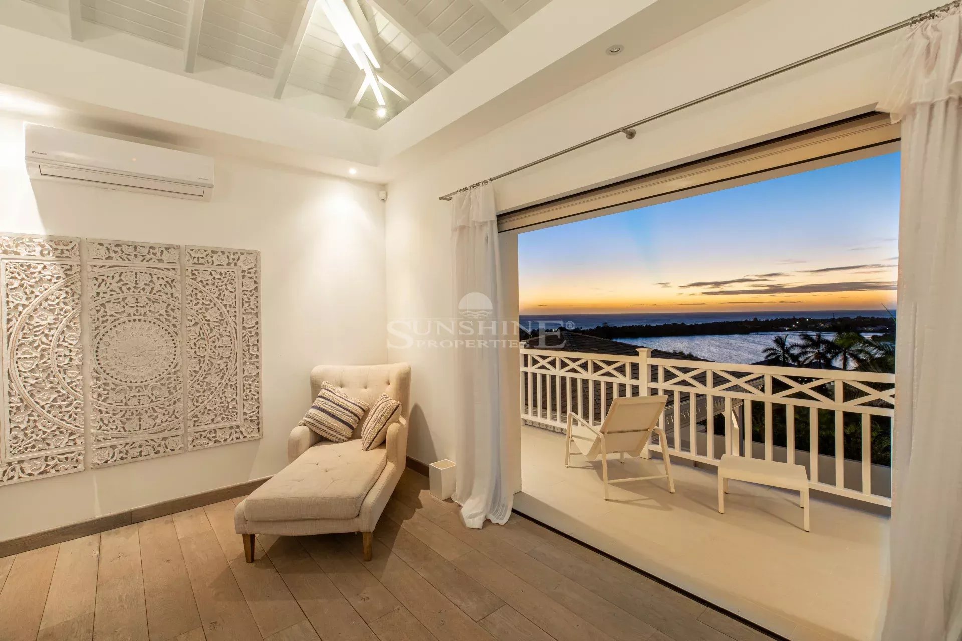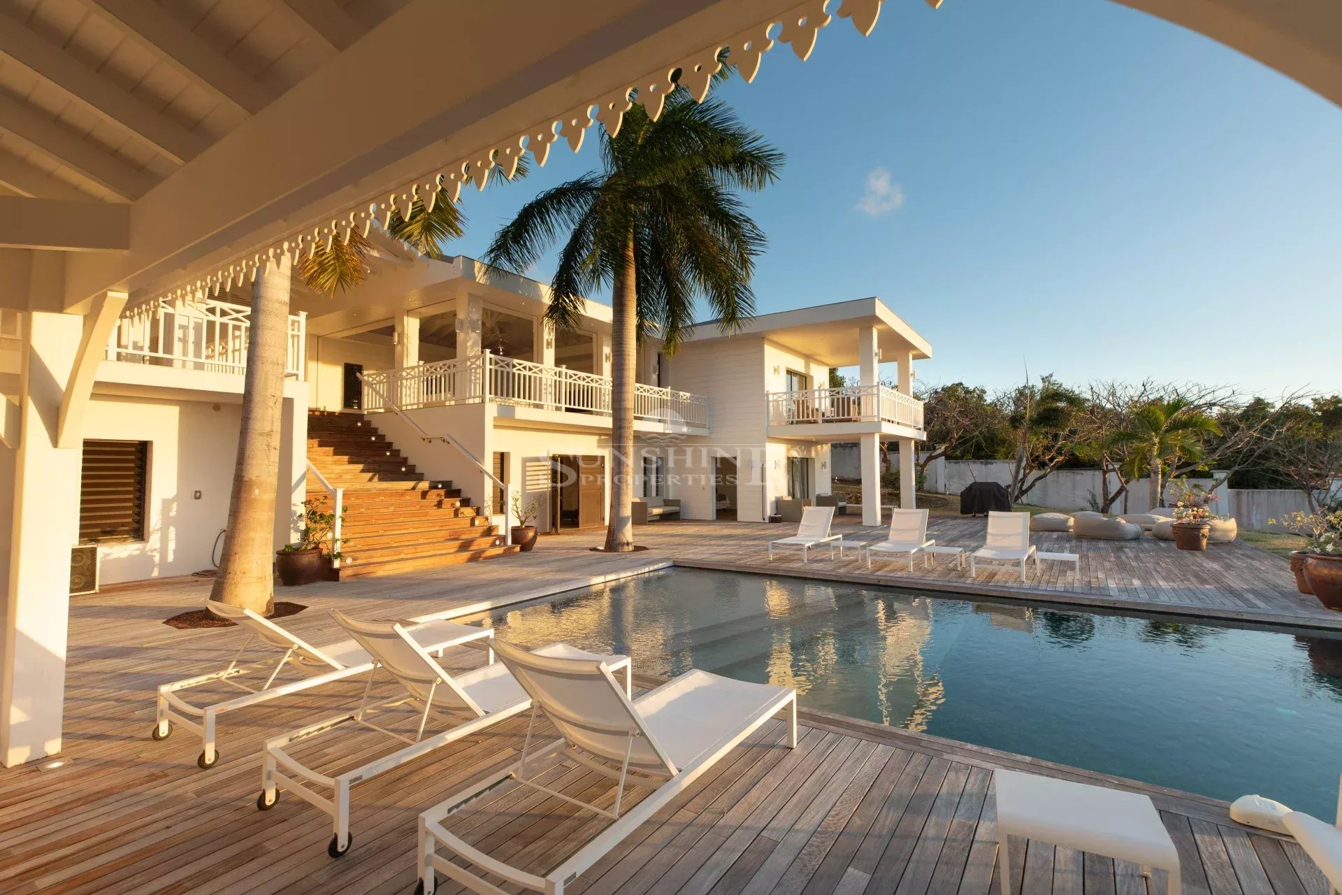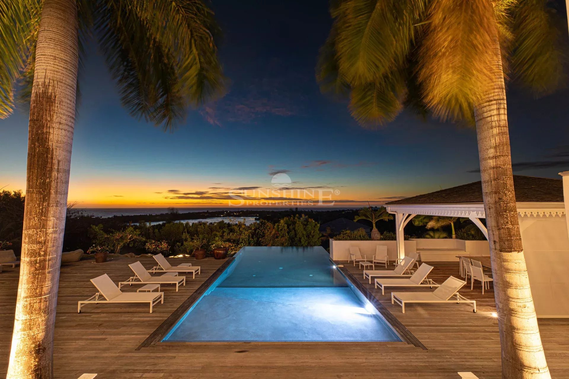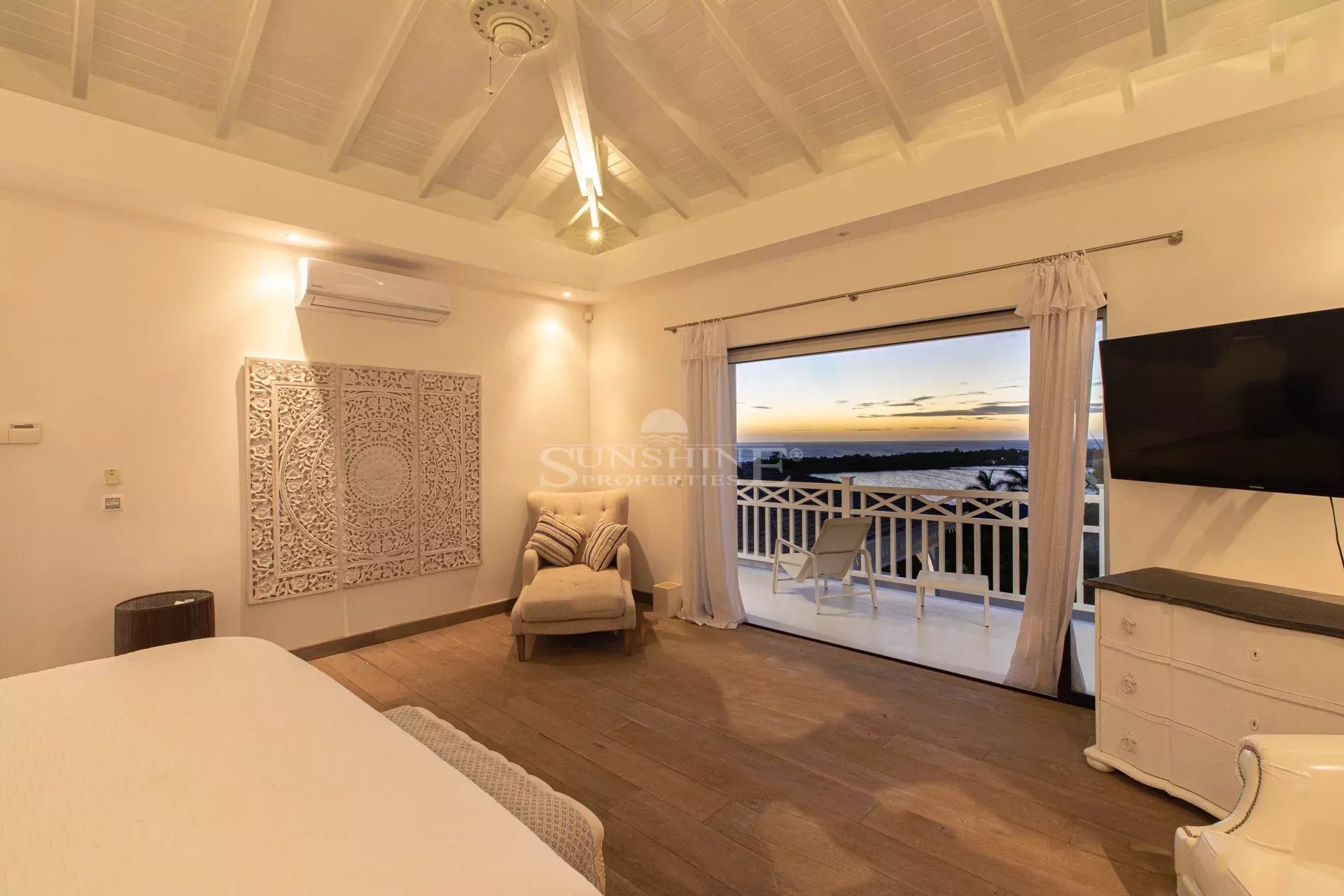 Elle est protégée 24 heures sur 24 et située dans la communauté luxueuse et recherchée des Terres Basses. Elle offre une vue panoramique splendide de 270 degrés s'étendant jusqu'à l'horizon de la mer des Caraïbes. Elle est entourée de magnifiques jardins luxuriants et d'arbres fruitiers tropicaux. Cette luxueuse propriété comprend 6 chambres et 6 salles de bains. La villa jouit d'une vue magnifique sur le coucher de soleil, complétée par des espaces intérieurs et extérieurs spacieux et ouverts. Le salon et la salle à manger sont ouverts et profitent pleinement des hauts plafonds, des murs de la galerie et des immenses portes conçues pour résister aux ouragans. Vous serez ravis de recevoir vos invités dans cette fabuleuse maison à plusieurs niveaux, tout en profitant des vues panoramiques changeantes à chaque coucher de soleil, dans une élégance et une quiétude splendides. Cette villa bénéficie d'une architecture moderne, chic et caribéenne, avec toutes les commodités modernes. Elle est située sur une légère pente sur 2,4 hectares, soit 24 000 m^(2). Veuillez nous contacter pour obtenir de plus amples informations. Veuillez noter que le prix de vente est exprimé en euros.
