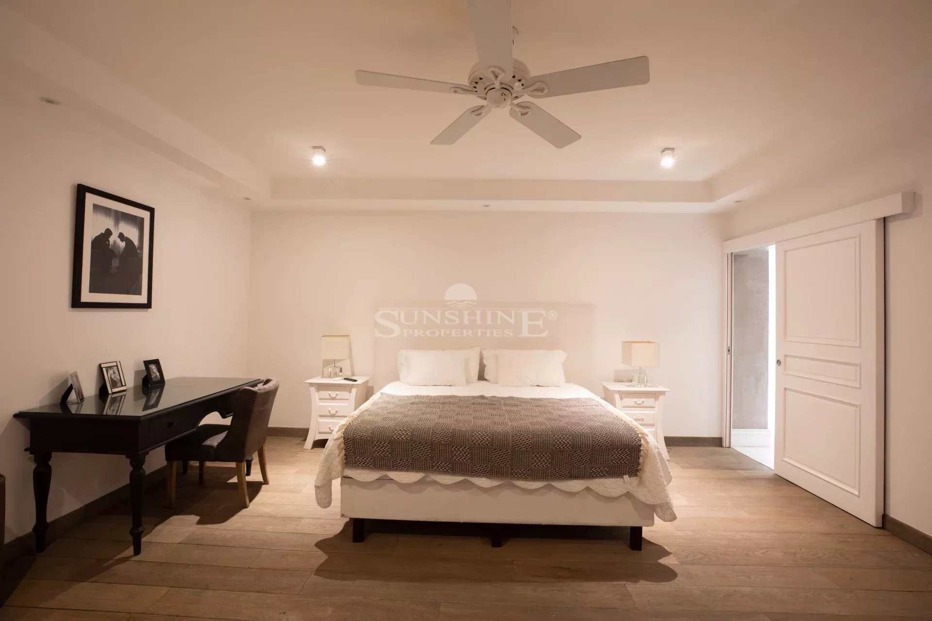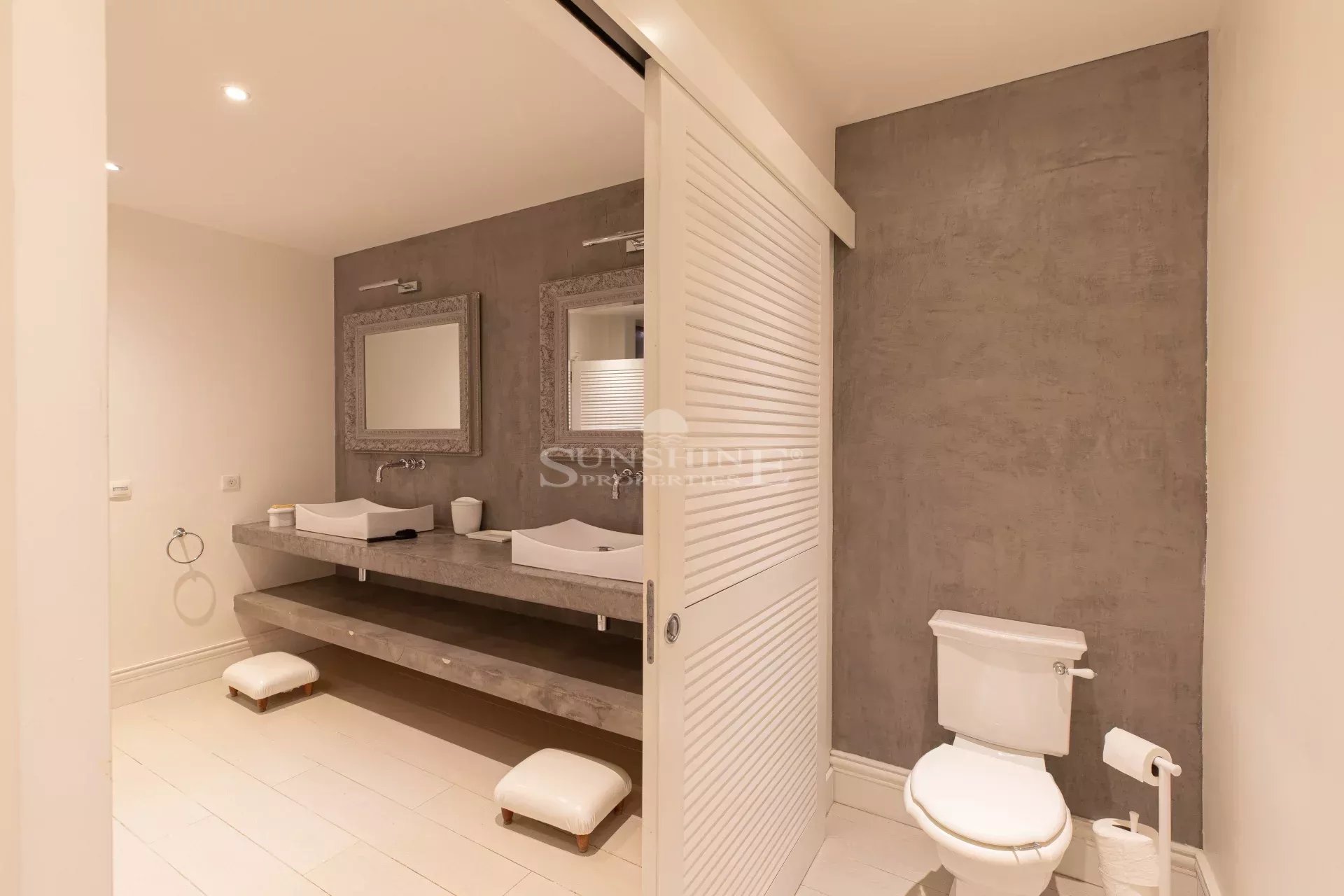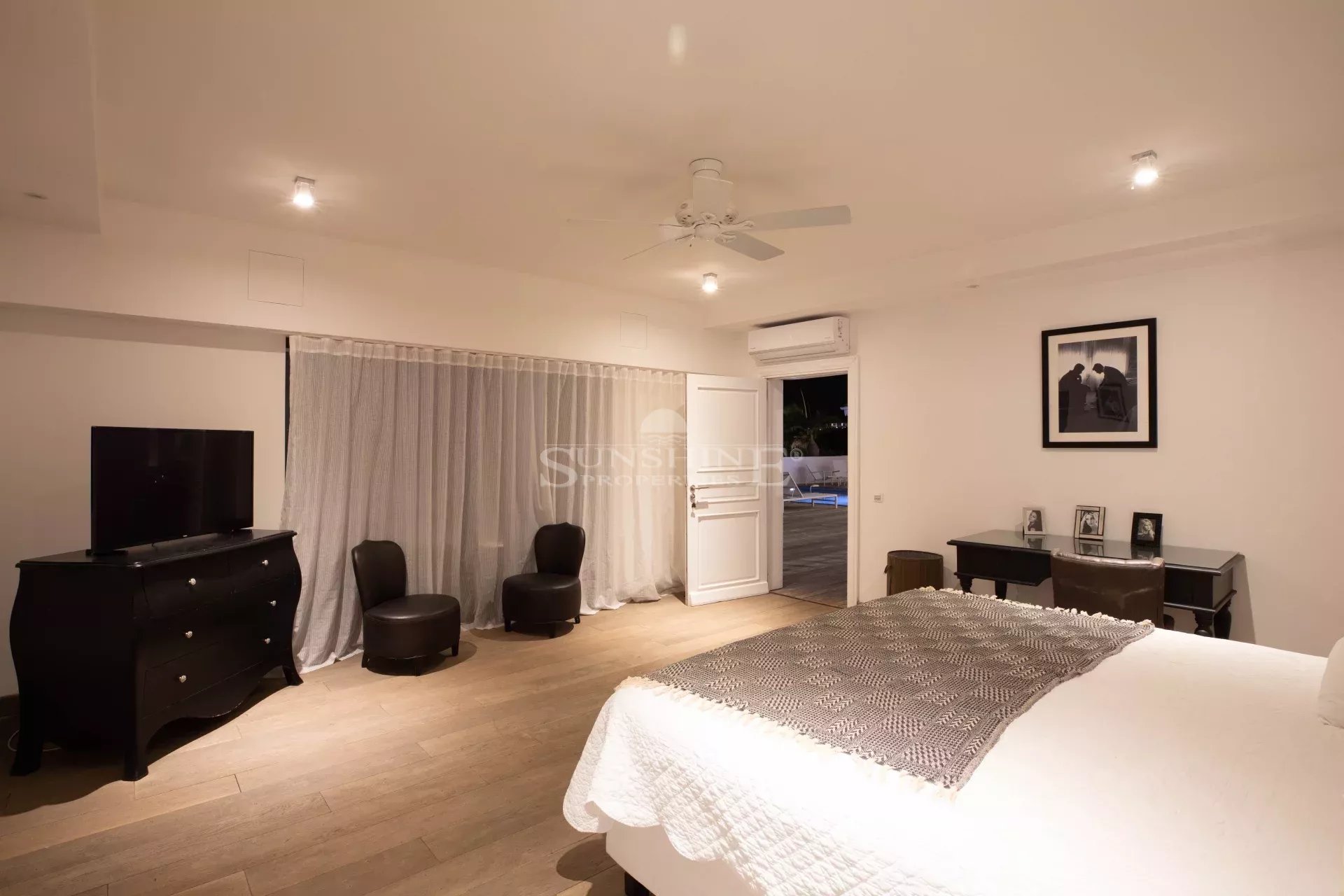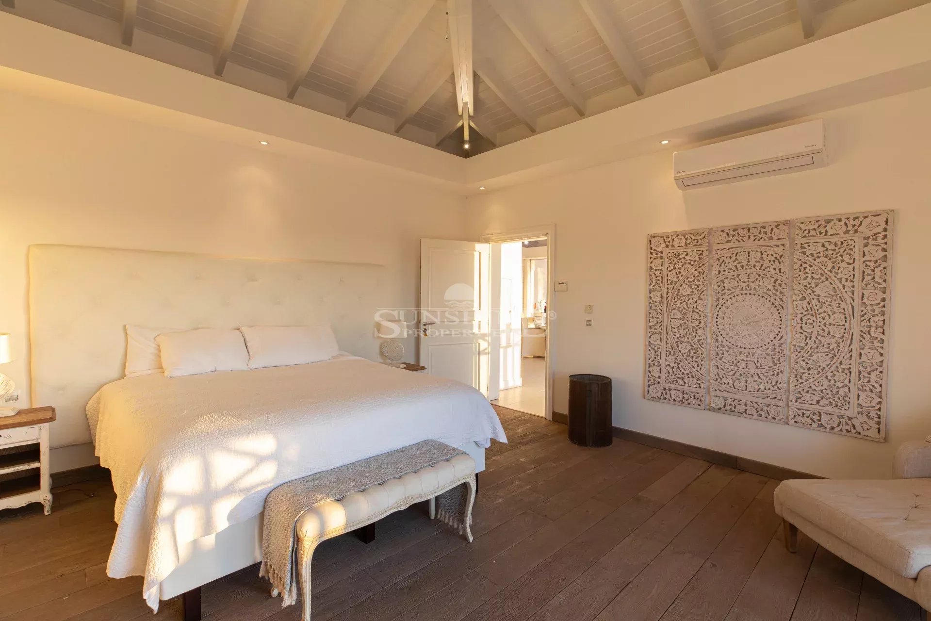 Elle est protégée 24 heures sur 24 et située dans la communauté luxueuse et recherchée des Terres Basses. Elle offre une vue panoramique splendide de 270 degrés s'étendant jusqu'à l'horizon de la mer des Caraïbes. Elle est entourée de magnifiques jardins luxuriants et d'arbres fruitiers tropicaux. Cette luxueuse propriété comprend 6 chambres et 6 salles de bains. La villa jouit d'une vue magnifique sur le coucher de soleil, complétée par des espaces intérieurs et extérieurs spacieux et ouverts. Le salon et la salle à manger sont ouverts et profitent pleinement des hauts plafonds, des murs de la galerie et des immenses portes conçues pour résister aux ouragans. Vous serez ravis de recevoir vos invités dans cette fabuleuse maison à plusieurs niveaux, tout en profitant des vues panoramiques changeantes à chaque coucher de soleil, dans une élégance et une quiétude splendides. Cette villa bénéficie d'une architecture moderne, chic et caribéenne, avec toutes les commodités modernes. Elle est située sur une légère pente sur 2,4 hectares, soit 24 000 m^(2). Veuillez nous contacter pour obtenir de plus amples informations. Veuillez noter que le prix de vente est exprimé en euros.