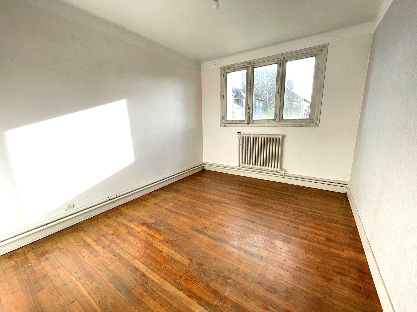 SAINT BRIEUC CENTRE, a proximité de toutes les commodités et dans une résidence calme et bien entretenue, bel et vaste appartement de type IV comprenant : entrée, un salon séjour ouvrant sur balcon et entièrement sur parquet, une cuisine indépendante aménagée et équipée, trois jolies chambres sur parquet, salle d'eau récente, WC. Box garage et cave privative. BEL EMPLACEMENT, BEAUX VOLUMES, PROCHE GARE, VENDU LIBRE? (5.30 % honoraires TTC à la charge de l'acquéreur.) Copropriété de 36 lots - dont 12 lots habitation. (Pas de procédure en cours). Charges annuelles : 1147 euros.