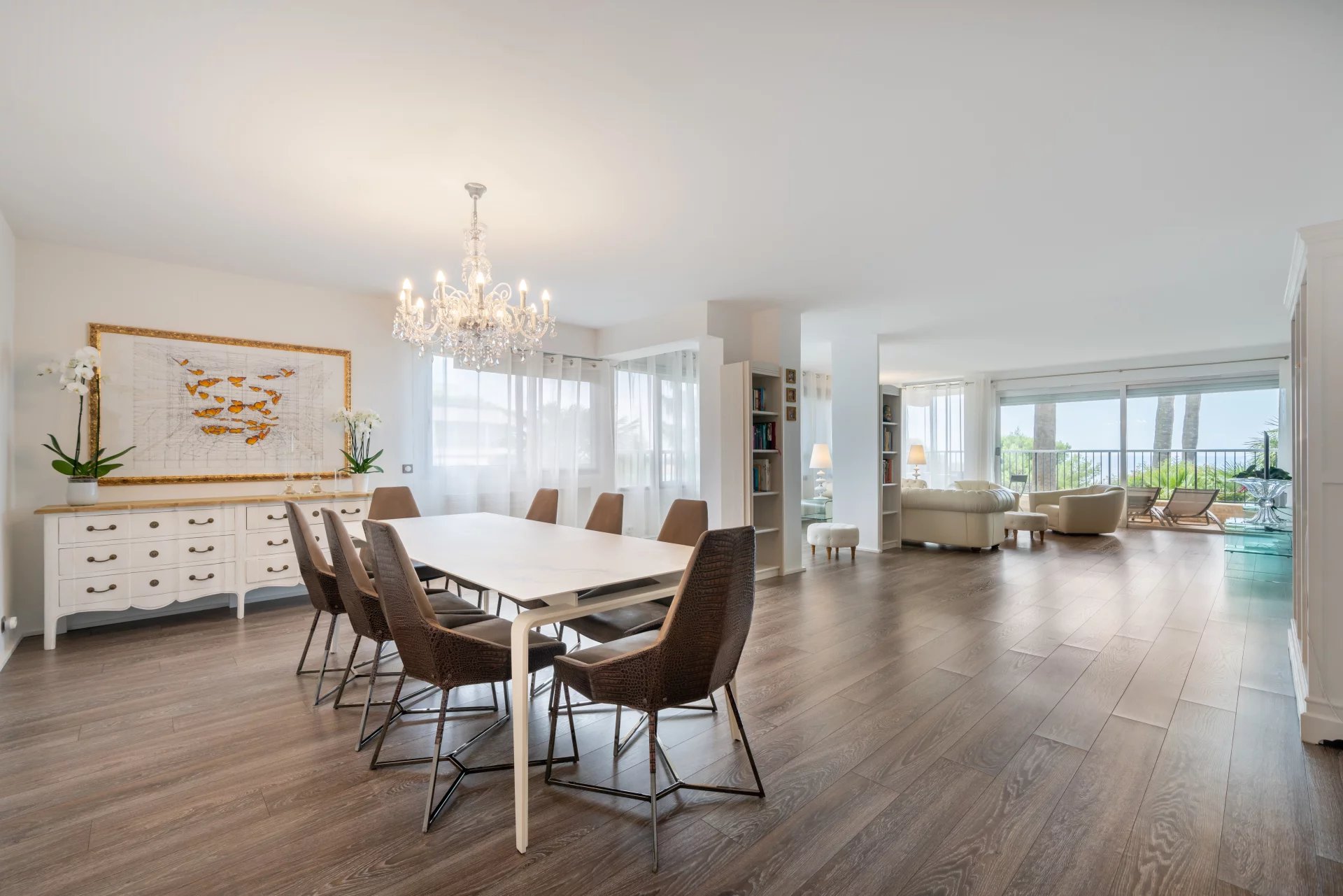 Dans une résidence prestigieuse et sécurisée, superbe appartement 5 pièces de 181 m², entièrement rénové avec des matériaux de haute qualité. il se compose d'un spacieux séjour de 80m2 ouvrant sur une grande terrasse offrant une vue mer panoramique. La cuisine indépendante est entièrement équipée avec des appareils haut de gamme. l'espace nuit comprend trois chambres, chacune avec sa salle de bain et son dressing, ainsi que des toilettes invités séparées. comprennent deux caves, deux grands parkings. Des courts de tennis, deux piscines, une salle de sport et un service de conciergerie 24h/24 et 7j/7 avec vidéosurveillance