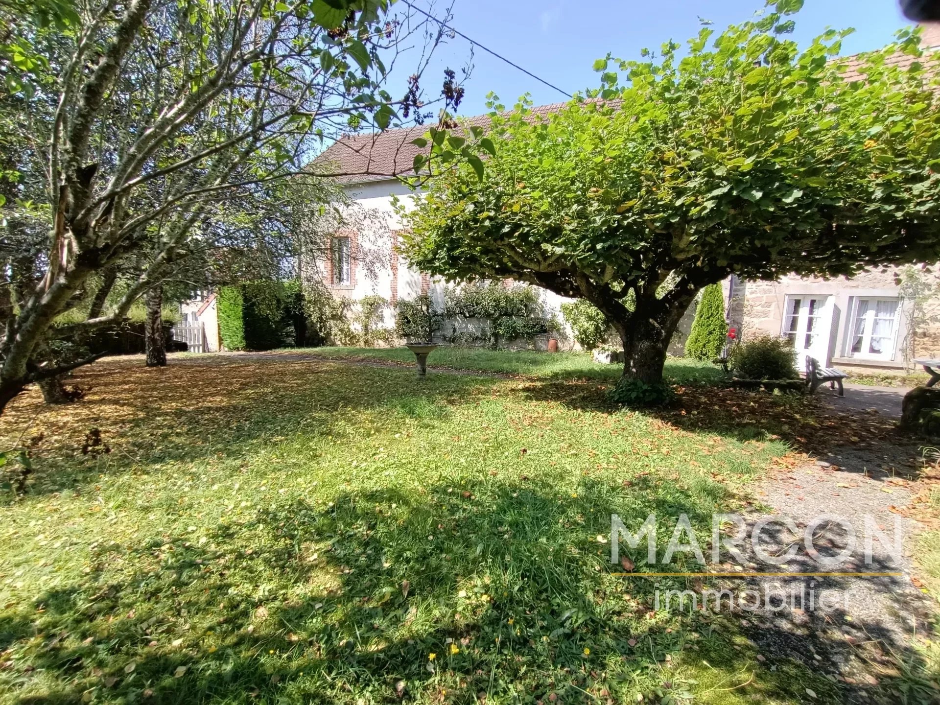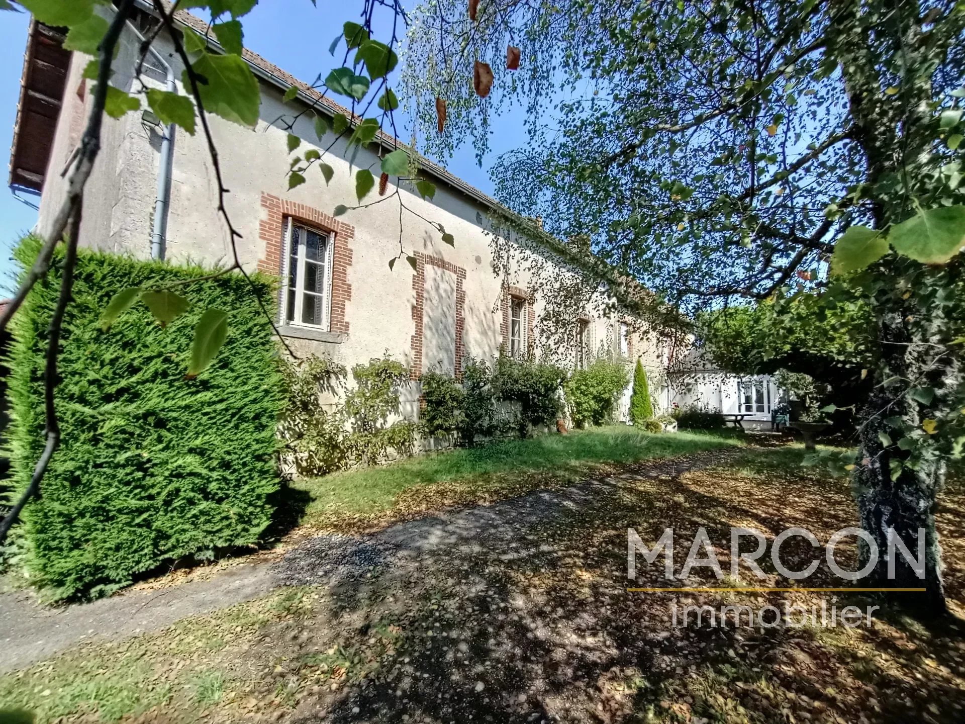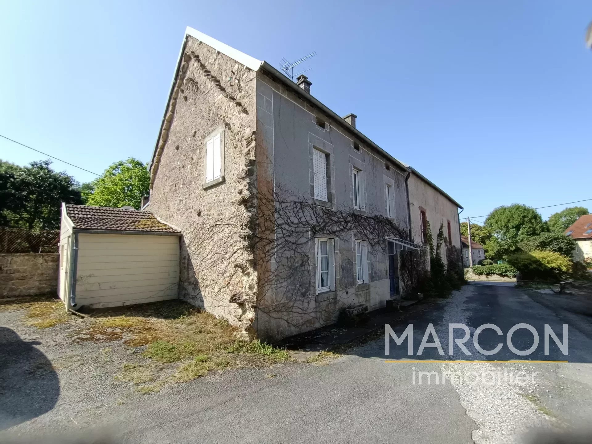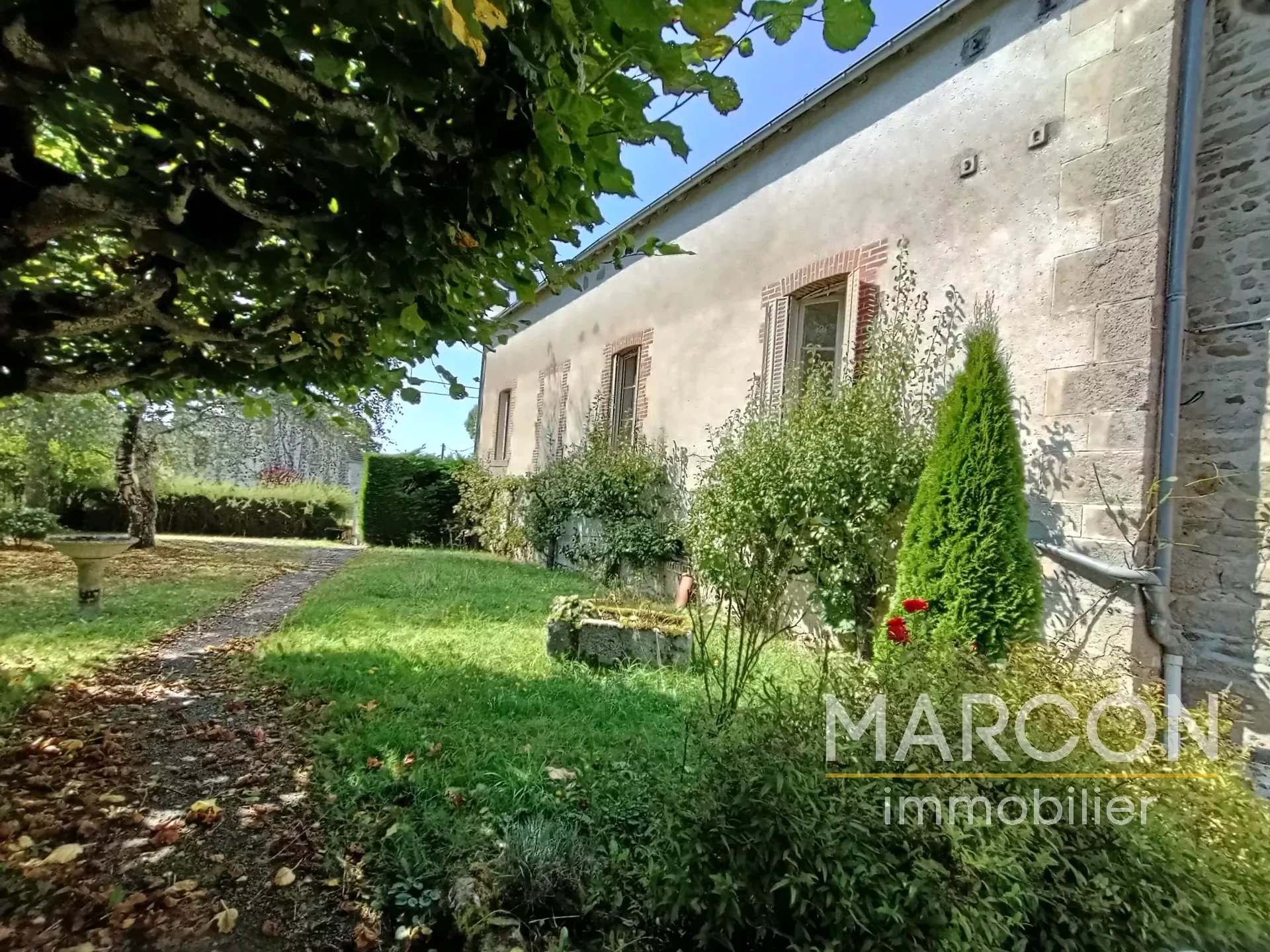 Réf 88606 - MARCON IMMOBILIER vous propose un ensemble immobilier comprenant : 1) Une maison d'habitation comprenant au rez-de-chaussée : entrée, salon avec insert, salle à manger avec cheminée, cuisine, cellier, bureau, salle d'eau avec toilettes, chaufferie. 1er étage : couloir, 4 chambres dont une avec cheminée, salle de bains avec toilettes. Grenier au-dessus. Chauffage avec insert bois. 2) Une maison à rénover sur sous-sol (chai) comprenant au rez-de-chaussée : une entrée-couloir. 1er étage : une grande pièce, une chambre avec cheminée. 2e étage : palier, deux pièces. Remises attenante et non attenante. Jardin attenant d'une superficie de 1825 m2. Deux puits. Prix : 149 000 € (honoraires d'agence de 7.97 % TTC à la charge de l'acquéreur). (Prix : 138 000 € hors honoraires). Réseau de 3 agences en Creuse : Aubusson, Guéret et La Souterraine. 05-55-66-20-37