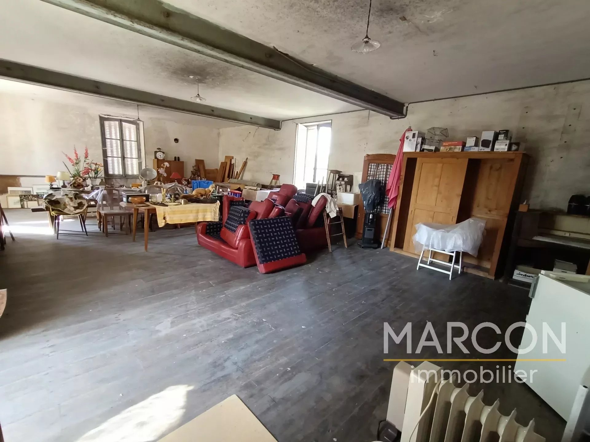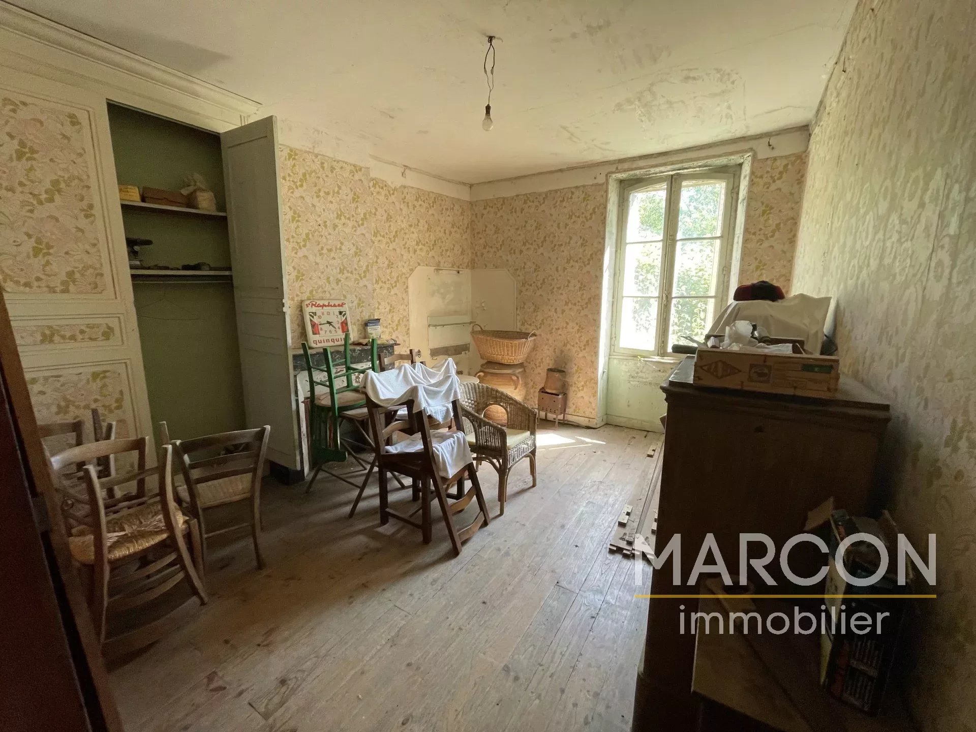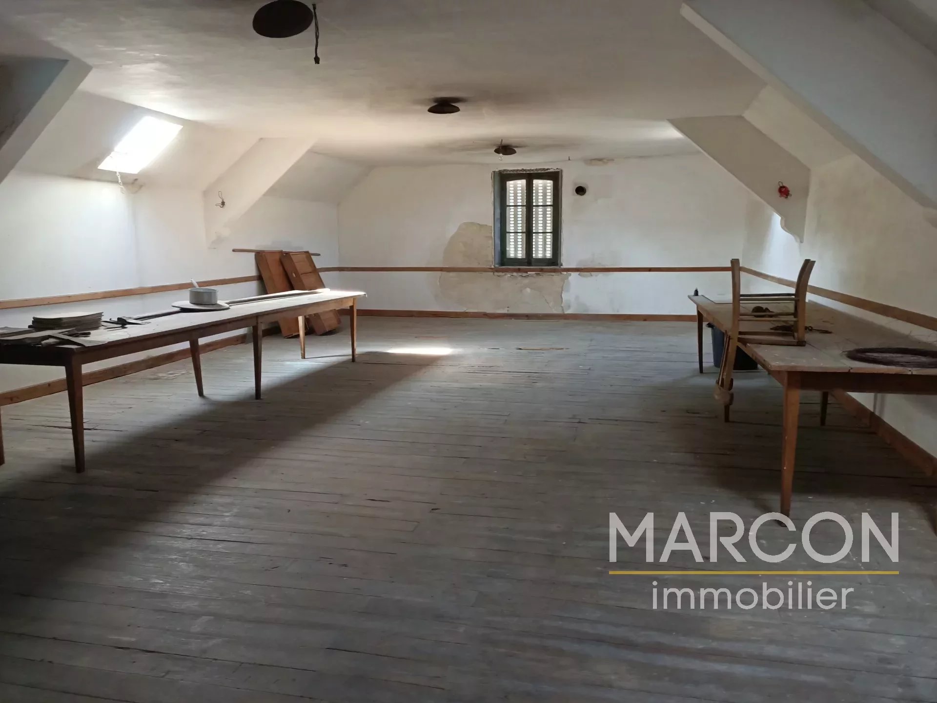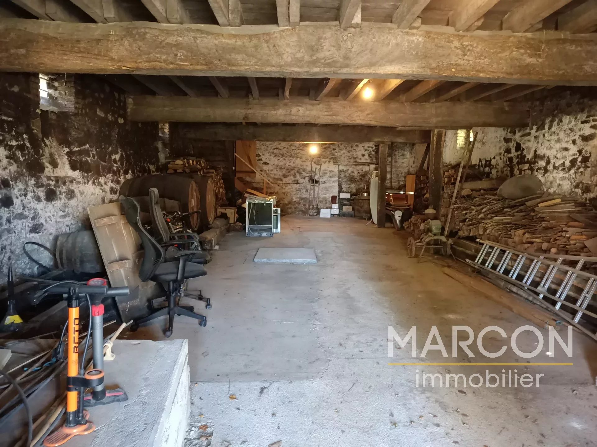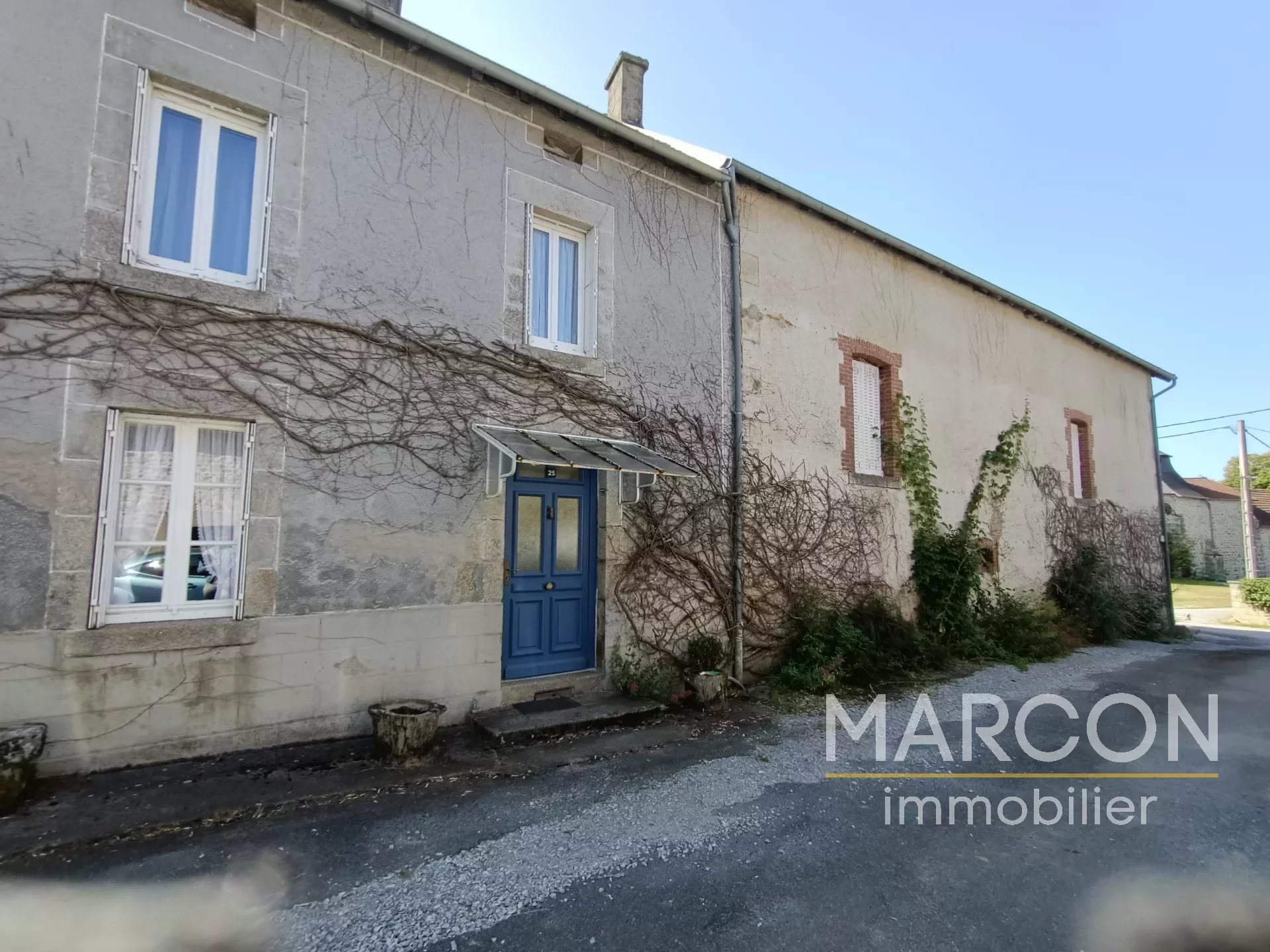 Réf 88606 - MARCON IMMOBILIER vous propose un ensemble immobilier comprenant : 1) Une maison d'habitation comprenant au rez-de-chaussée : entrée, salon avec insert, salle à manger avec cheminée, cuisine, cellier, bureau, salle d'eau avec toilettes, chaufferie. 1er étage : couloir, 4 chambres dont une avec cheminée, salle de bains avec toilettes. Grenier au-dessus. Chauffage avec insert bois. 2) Une maison à rénover sur sous-sol (chai) comprenant au rez-de-chaussée : une entrée-couloir. 1er étage : une grande pièce, une chambre avec cheminée. 2e étage : palier, deux pièces. Remises attenante et non attenante. Jardin attenant d'une superficie de 1825 m2. Deux puits. Prix : 149 000 € (honoraires d'agence de 7.97 % TTC à la charge de l'acquéreur). (Prix : 138 000 € hors honoraires). Réseau de 3 agences en Creuse : Aubusson, Guéret et La Souterraine. 05-55-66-20-37