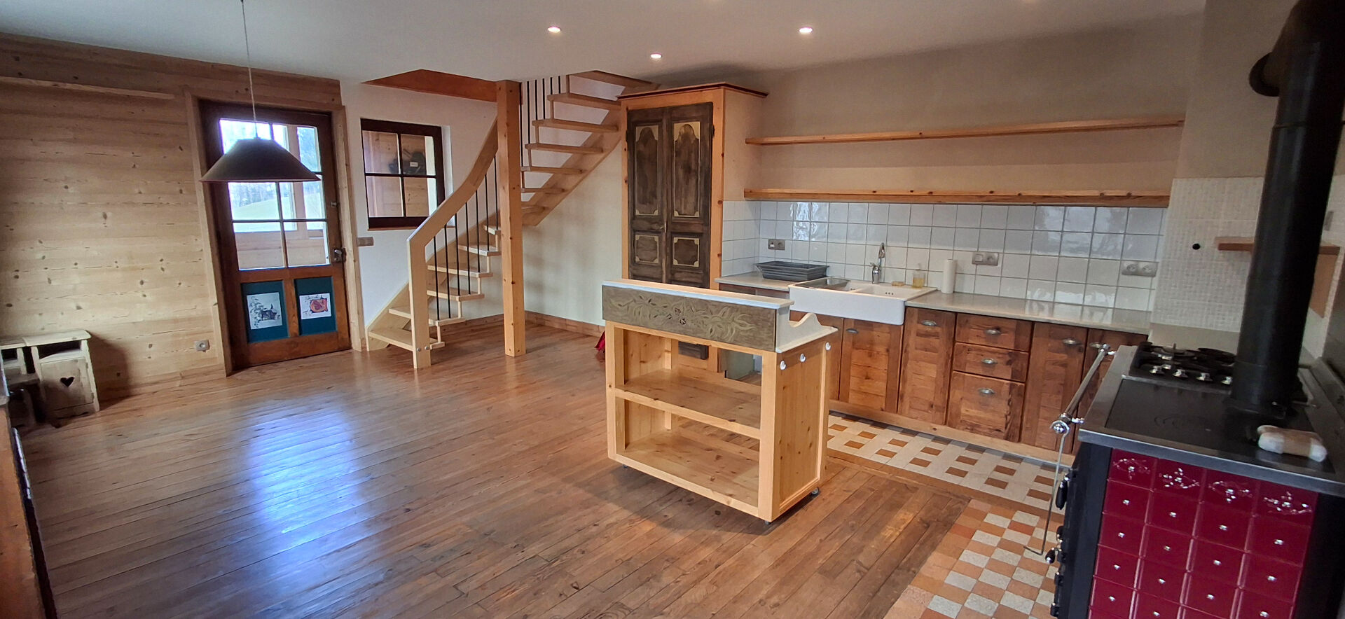 Située à Queige, à seulement cinq minutes de Beaufort et d'Albertville, cette maison mitoyenne de caractère récemment rénovée, offre un cadre de vie paisible et un panorama exceptionnel sur le Mont-Blanc. D'une surface habitable d'environ 80 m² , elle se compose d'une belle pièce de vie lumineuse, d'un salon à l'ambiance chaleureuse et cocooning et de deux chambres. Son jardin paysager, conçu par un professionnel, crée un véritable environnement nature avec vue sublime sur le massif du Mirantin. Le terrain attenant, en plus d'offrir un bel espace extérieur, est agrémenté d'arbres fruitiers variés tels que pommiers, pruniers, pêchers et poiriers, parfaits pour profiter de récoltes au fil des saisons. Un grand garage avec de nombreux espaces de rangement vient parfaire les prestations de ce bien idéal pour une résidence principale ou un pied-à-terre en montagne. Ne manquez pas cette opportunité unique ! Contactez nous dès maintenant pour plus d'informations ou organiser une visite.