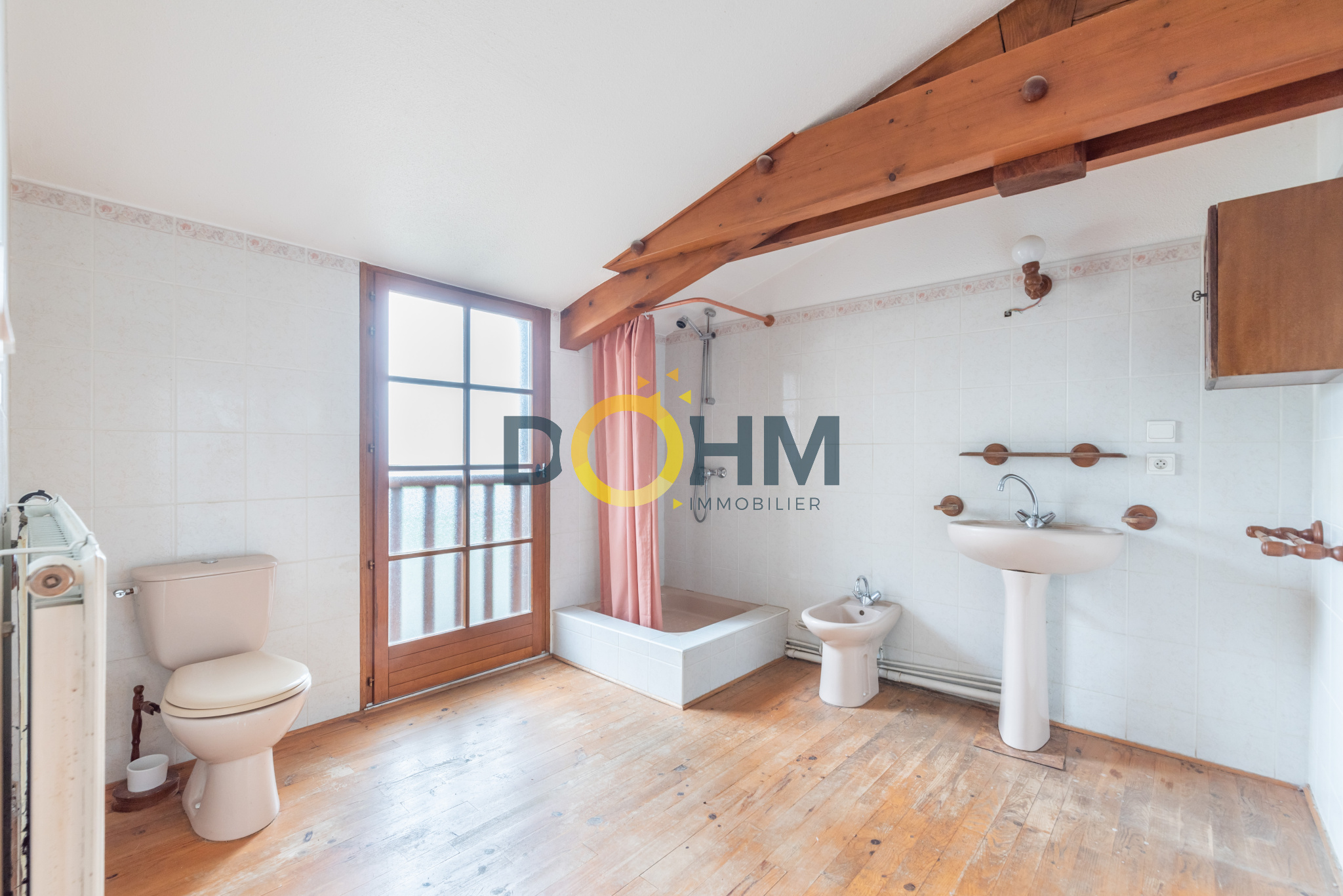 À l'étage, un large dégagement avec baie vitrée offre une belle vue sur le jardin. Deux grandes chambres vous attendent, dont une avec salle de bain privative. Une spacieuse salle d'eau avec WC vient compléter l'étage.