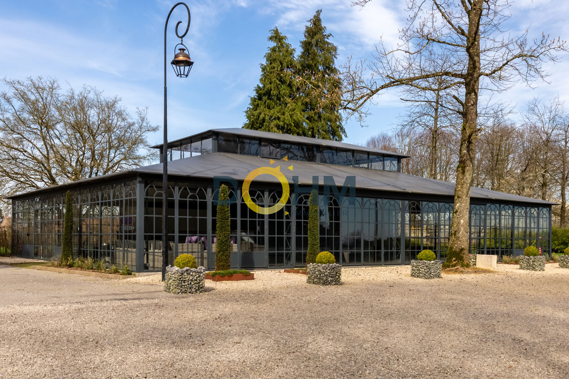 La propriété de 900m2 a été entièrement restaurée avec goût, et comprend également une orangerie de 400m2 avec sa chambre froide, son bar, et ses sanitaires pour une capacité de plus de 300 personnes debout, une maison de gardien avec 3 chambres supplémentaires et une salle de bain, ainsi qu'une dépendance pour le petit-déjeuner des convives. Le parc de 11ha est un écrin exceptionnel pour cette demeure d'exception.