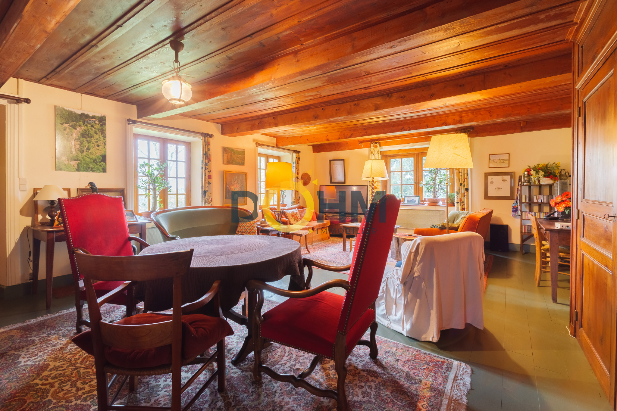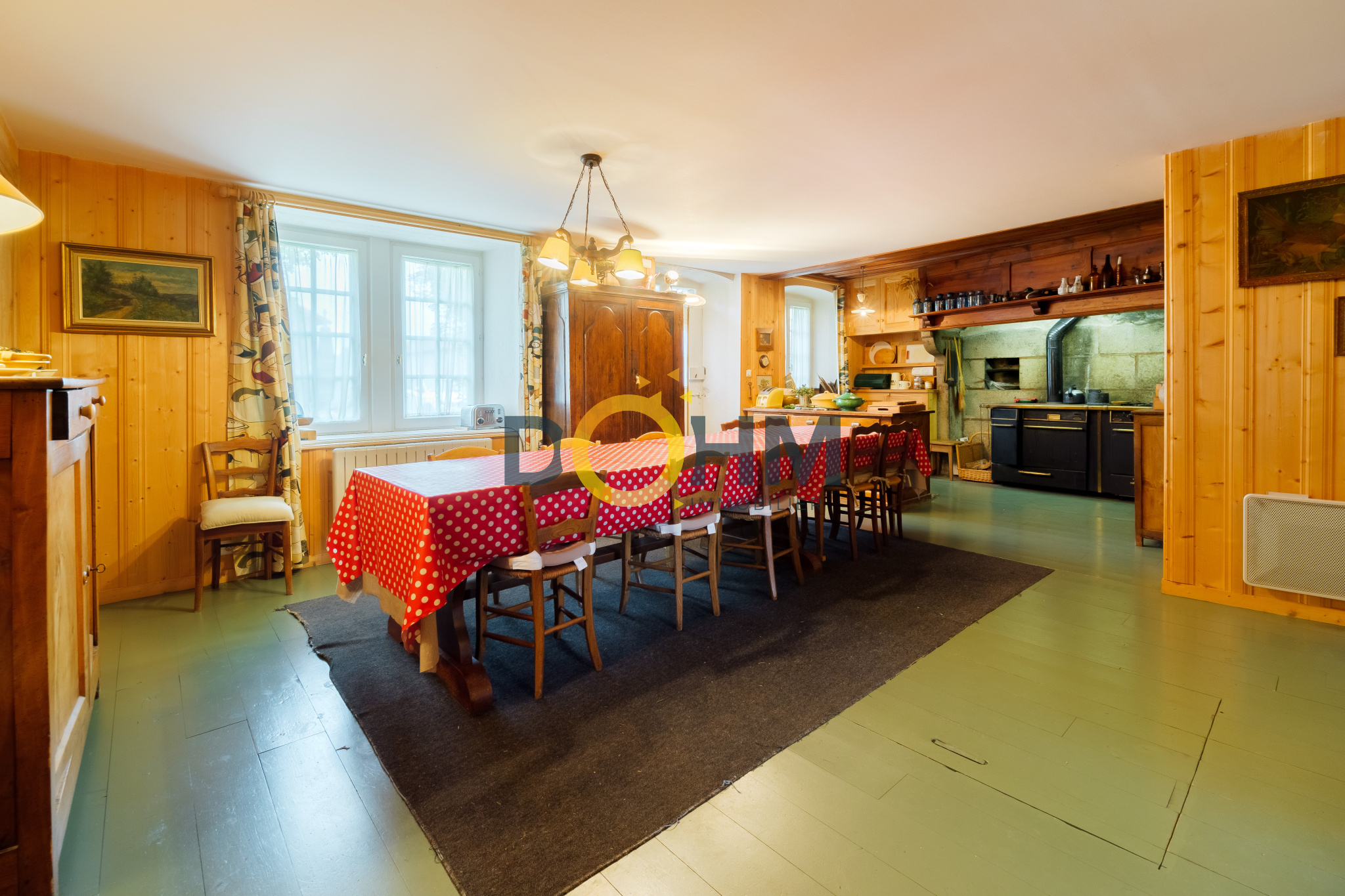 En exclusivité, Dohm Immobilier du Haut Forez, Belle demeure de caractère au coeur du village de La Chaulme, ce bel ensemble en pierres apparentes, restauré avec goût, tout en préservant son authenticité, se compose d'une habitation principale de 335 m2 répartie sur trois niveaux avec un agréable jardin sans vis-à-vis, situé à l'arrière de la maison. Six chambres, un dortoir, une grande salle à manger avec son espace cuisine, un salon et une buanderie. En annexes attenantes, une remise et deux caves. Les parties du logements sont modulables selon les projets envisagés (maison familiale, chambres et table d'hôtes, accueil, location...). Possibilité d'acquérir en sus un garage pour les véhicules avec jardins à quelques mètres de l'habitation. Nombreux circuits de randonnées à proximité. Taxe foncière 1587EUR/an.