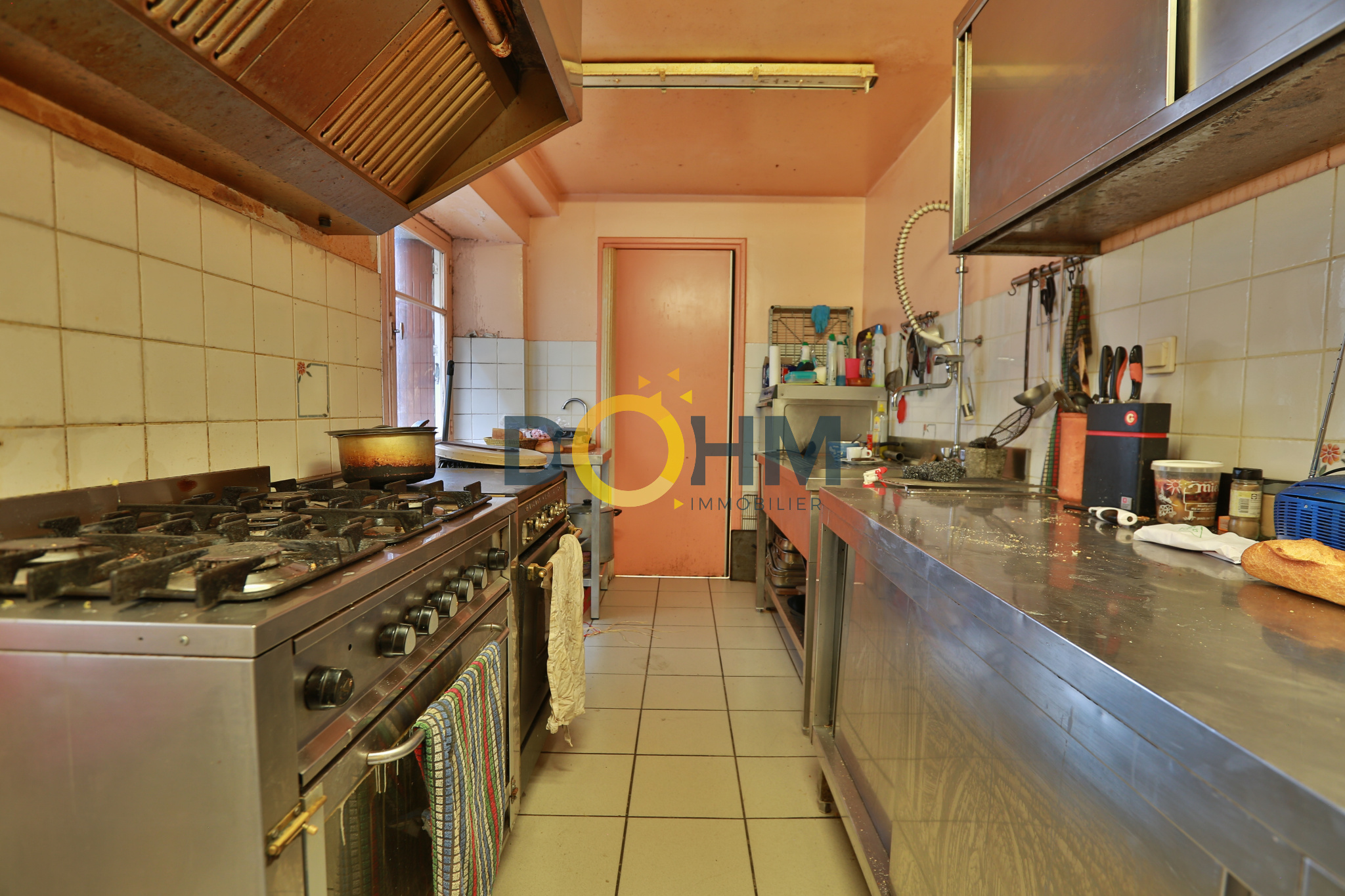 Le commerce comprend un équipement de cuisine simple mais complet pour proposer une cuisine familiale. (piano, hotte, four, lave main, évier, rangements inox...)