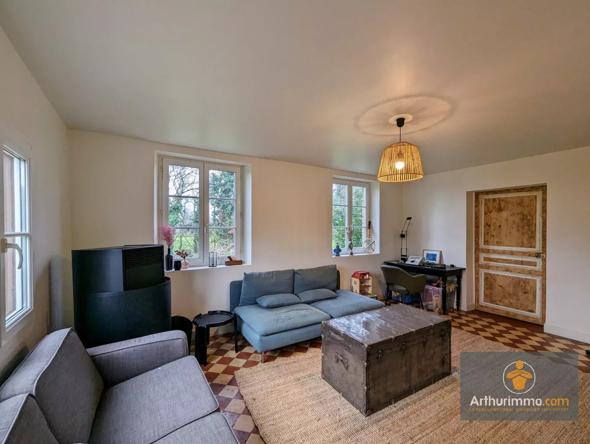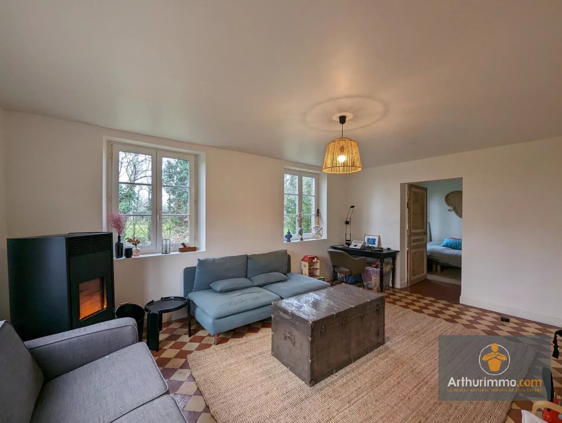A VISITER SANS TARDER !! Longère de 143 m² à 1h15 de Paris Ravissante longère située dans un écrin de verdure, édifiée sur un beau terrain arboré de plus de 2 000m² dans un secteur calme à 5 minutes de la A1. Elle se compose au rez-de-chaussée d'un salon/salle à manger de plus de 27m² avec ancienne cheminée, d'une cuisine dinatoire de 20m², d'un second salon attenant de 19m² avec poêle à granulé neuf, ainsi qu'une chambre de 12m² avec salle d'eau/WC de 7m². A l'étage, vous trouverez un pallier de 8 m² desservant 2 chambres de 9 m² et une troisième de de 10.72 m² ainsi qu'une salle de bains neuve de 4 m² avec un WC indépendant. Pour compléter ce bien vous trouverez une petite dépendance de 13.51 m² vous permettant un espace de stockage supplémentaire. Envie d'une maison au calme, sans vis à vis et en pleine nature....Cette maison est faite pour vous !! Pour les amateurs de balade un chemin en accès direct depuis la maison vous conduira sur un paisible sentier pédestre. Toutes les huisseries sont neuves en PVC, double vitrage. Taxe foncière : 719€