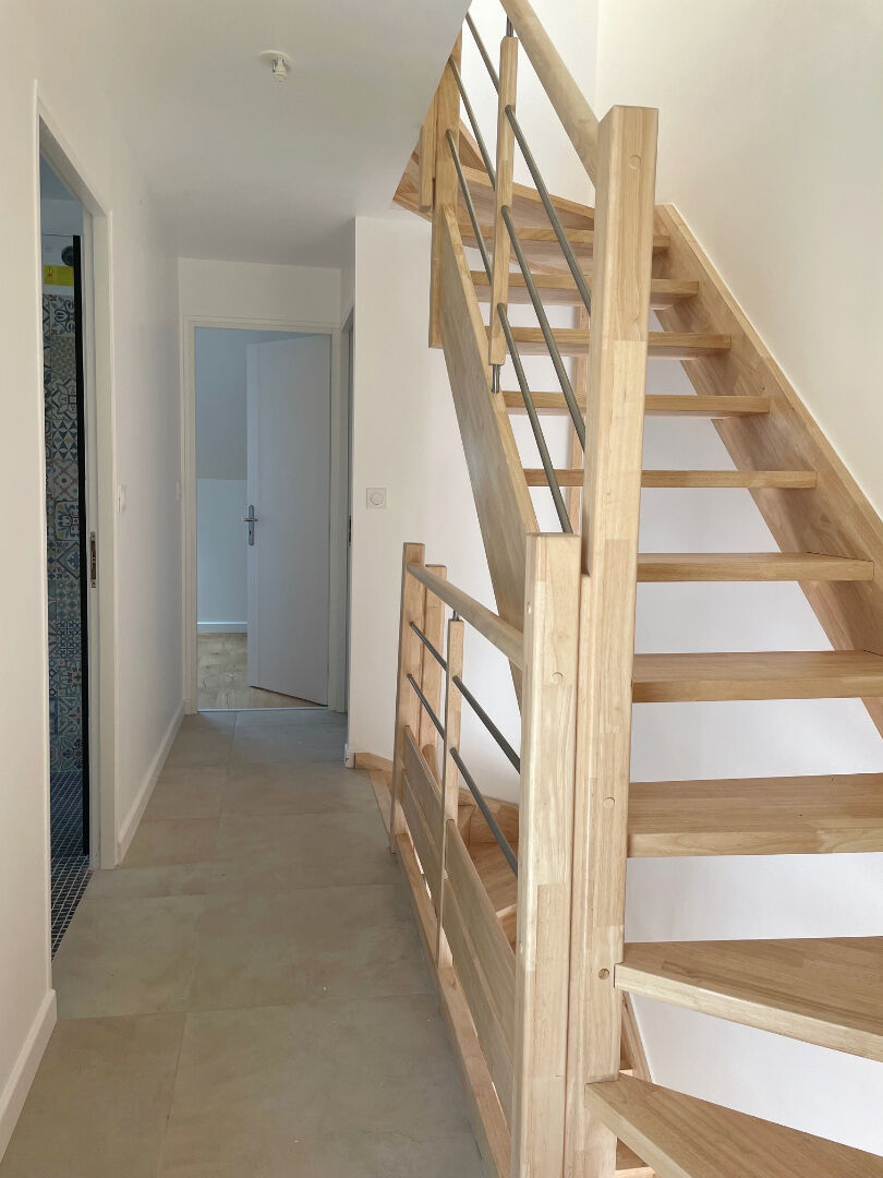 QUIMPER SUD- KERDREZEC Maison en duplex avec jardinet et terrasse, alliant magnifiquement le charme de l'ancien au confort moderne. Idéalement situé à proximité des commerces et à 10 minutes à pieds des quais de l'Odet Au rez de chaussée un séjour avec poêle à pellets, cuisine aménagée et équipée, un wc. cellier. Le premier étage accueille 2 chambres, un wc et une salle d'eau. Le deuxième étage lui reçoit la 3ème chambre. Une terrasse carrelée, un jardin privatif et un emplacement de parking complète ce bien. FRAIS DE NOTAIRE RÉDUITS. (6.00 % honoraires TTC à la charge de l'acquéreur.)