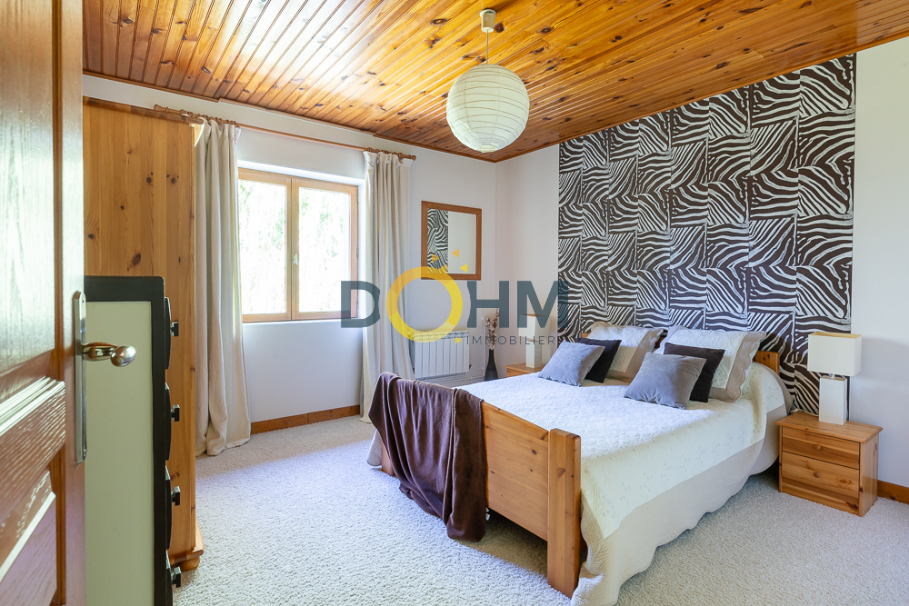 A 8 minutes de l'autoroute A43 Chimilin, l'agence DOHM immobilier vend une maison renovée avec cachet et modernité de 214m2 et grange attenante de 100m2 au sol qui donne un beau potentiel et garages