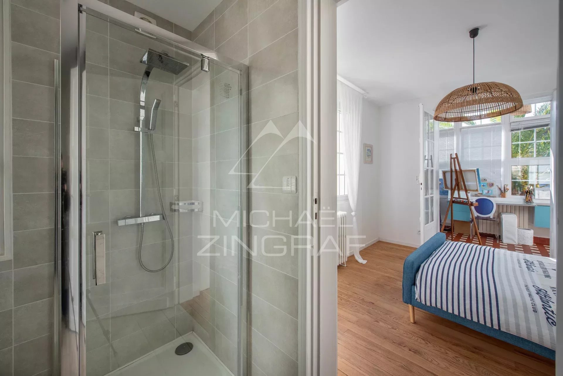 MICHAEL ZINGRAF REAL ESTATE vous propose cette villa en première ligne du Bassin d'Arcachon, bénéficiant d'un accès direct à la plage. Idéalement située en plein cœur d'Arcachon, elle se trouve à seulement trois minutes à pied des commerces et de la place du marché, ainsi qu'à cinq minutes de la gare d'Arcachon. D'une superficie habitable d'environ 250 m², cette élégante demeure offre 10 pièces réparties sur deux niveaux baignés de lumière. Le rez-de-chaussée s'ouvre sur une entrée cathédrale menant à un salon, une salle à manger, une cuisine déjeunatoire, une buanderie, un bureau ainsi que trois chambres, chacune disposant de sa propre salle d'eau ou salle de bains. À l'étage, un palier dessert un espace de vie de plus de 40 m² avec une vue panoramique sur le Bassin d'Arcachon, trois chambres, une chambre d’enfants et une salle d’eau avec toilettes. Édifiée sur un terrain d’environ 700 m², cette propriété dispose d’un jardin avec vue imprenable sur la mer, d’un double garage et d’un espace de stationnement.