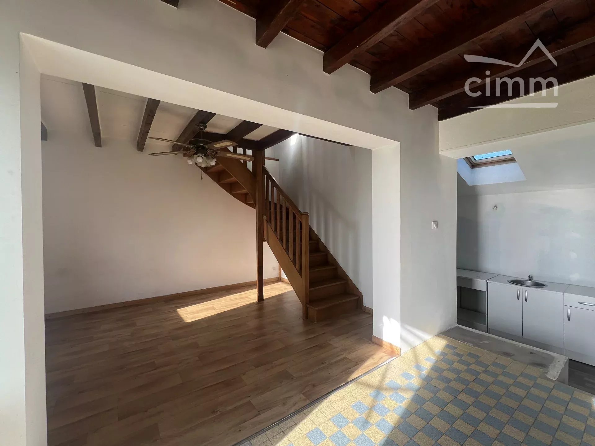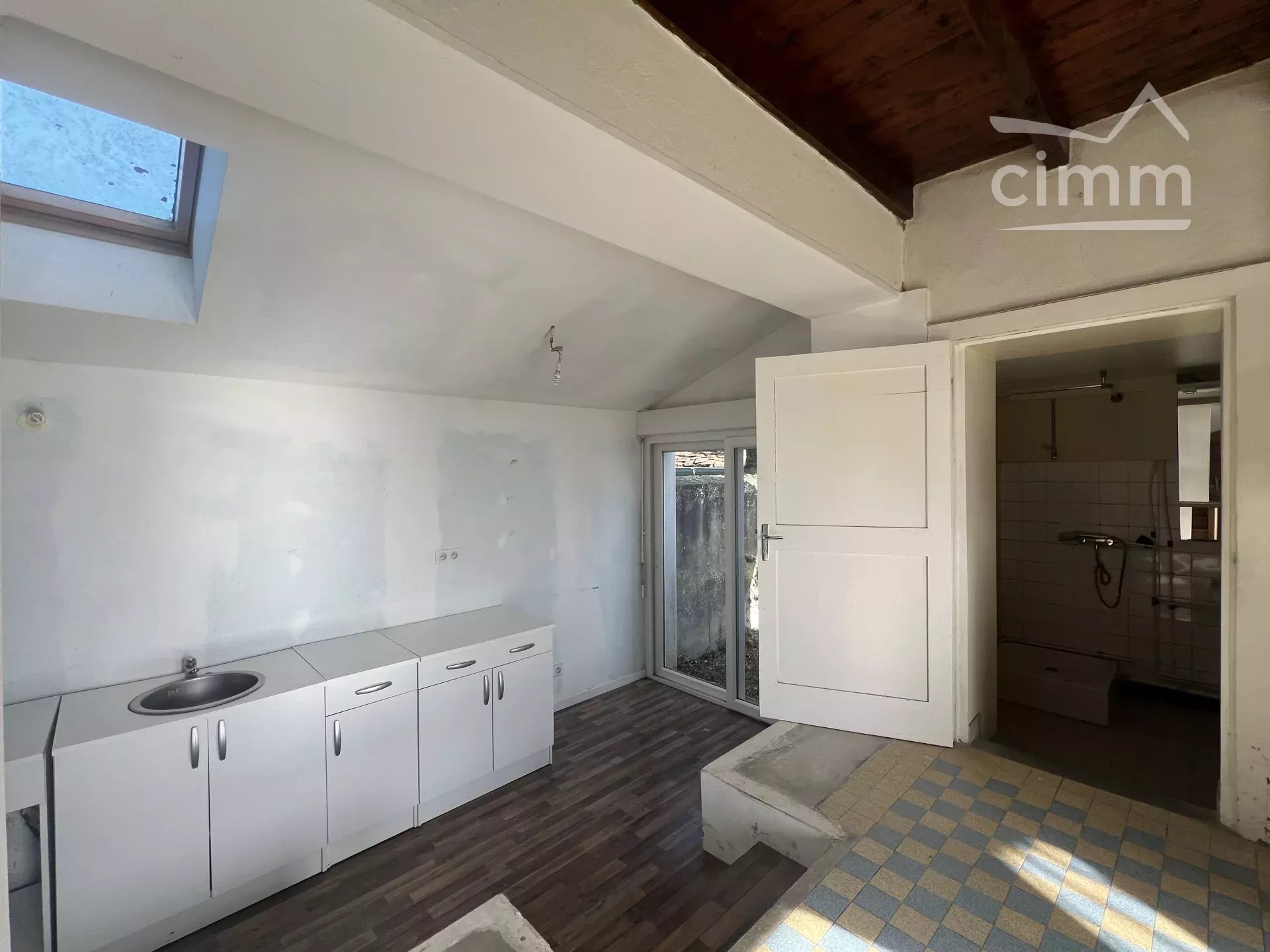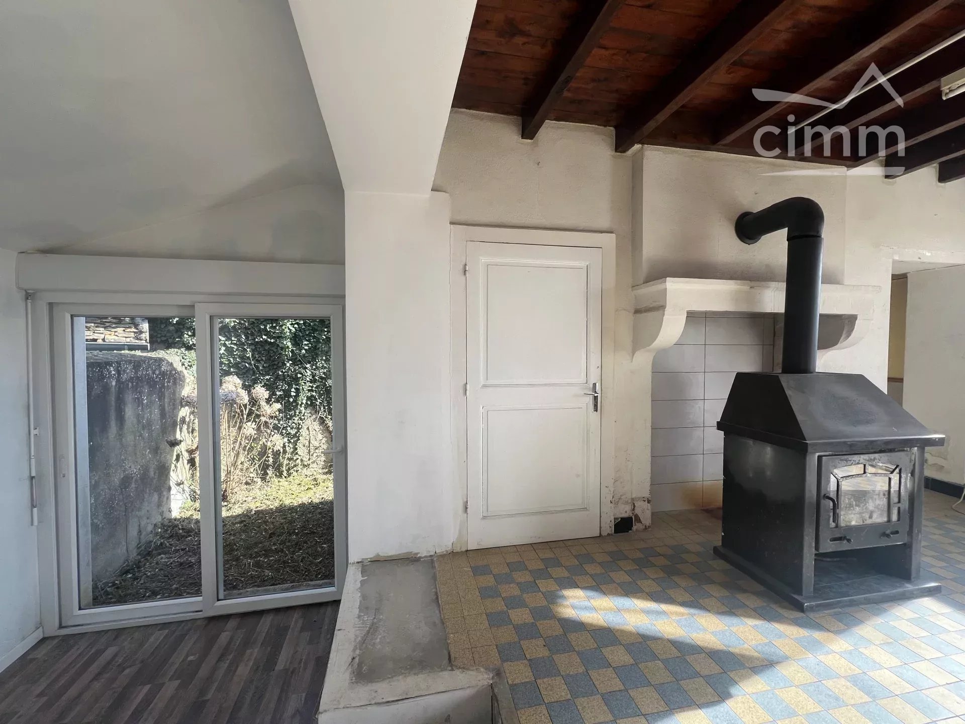 La maison se compose d'une pièce séjour équipée de son poêle à bois avec cuisine en contrebas, une salle de bain wc, une petite buanderie, un salon avec montée d'escalier, un palier ( office coin nuit ) et une chambre.