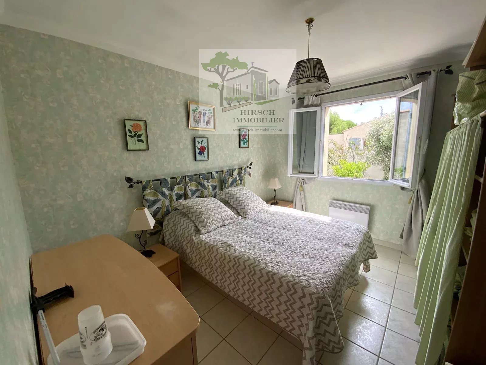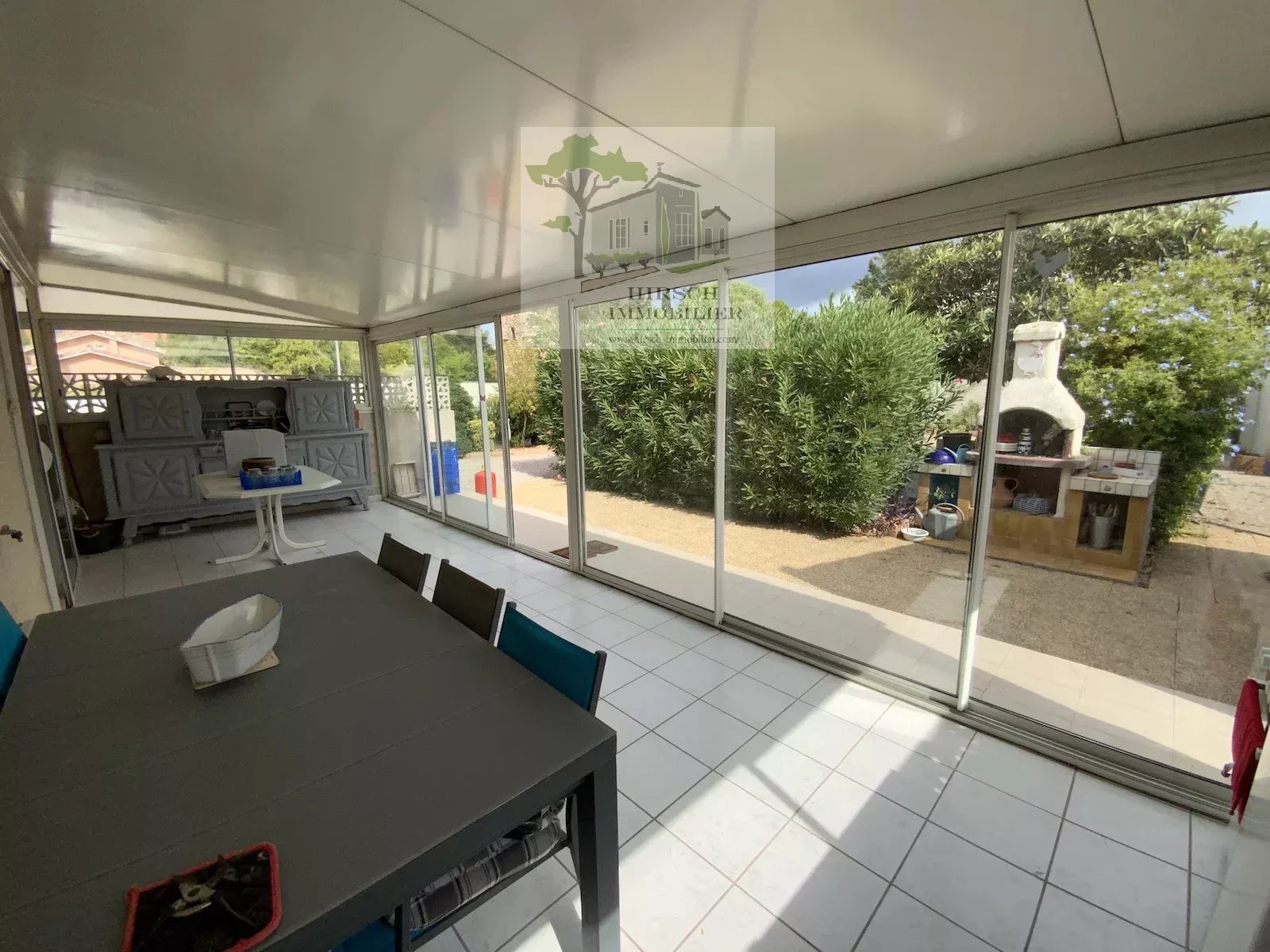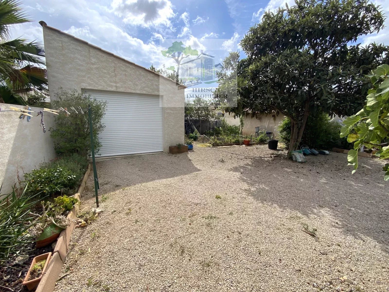 Proche Ginestas et seulement à 15 minutes de Narbonne, Je vous propose cette maison de plain pied sur 1100 m2 de jardin. Elle dispose de 85 m2 habitables plus une véranda de 25 m2. C'est une construction traditionnelle datant de 1998 très bien entretenue. Vous y découvrirez une vaste pièce de vie lumineuse équipée d'un poêle à granulé et d'une climatisation. La cuisine est équipée. Une grande sde avec douche à l'italienne, 2 chambres et une 3ème aménagée dans l'ancien garage concluent la visite de ce bien. Toute la maison est équipée de double vitrage, d'une isolation renforcée sous comble et d'une vidéo surveillance. La parcelle de 1100 m2 dispose d'un garage de 20 m2 et d'un second de 40 m2. Il peut être transformé en appartement indépendant. De nombreux arbres fruitiers et un coin potager agrémentent cette parcelle. Un vrai coin de paradis. Pour tous renseignements, Contactez Christophe HIRSCH au +33613912266 de HIRSCH IMMOBILIER - +33-468414946