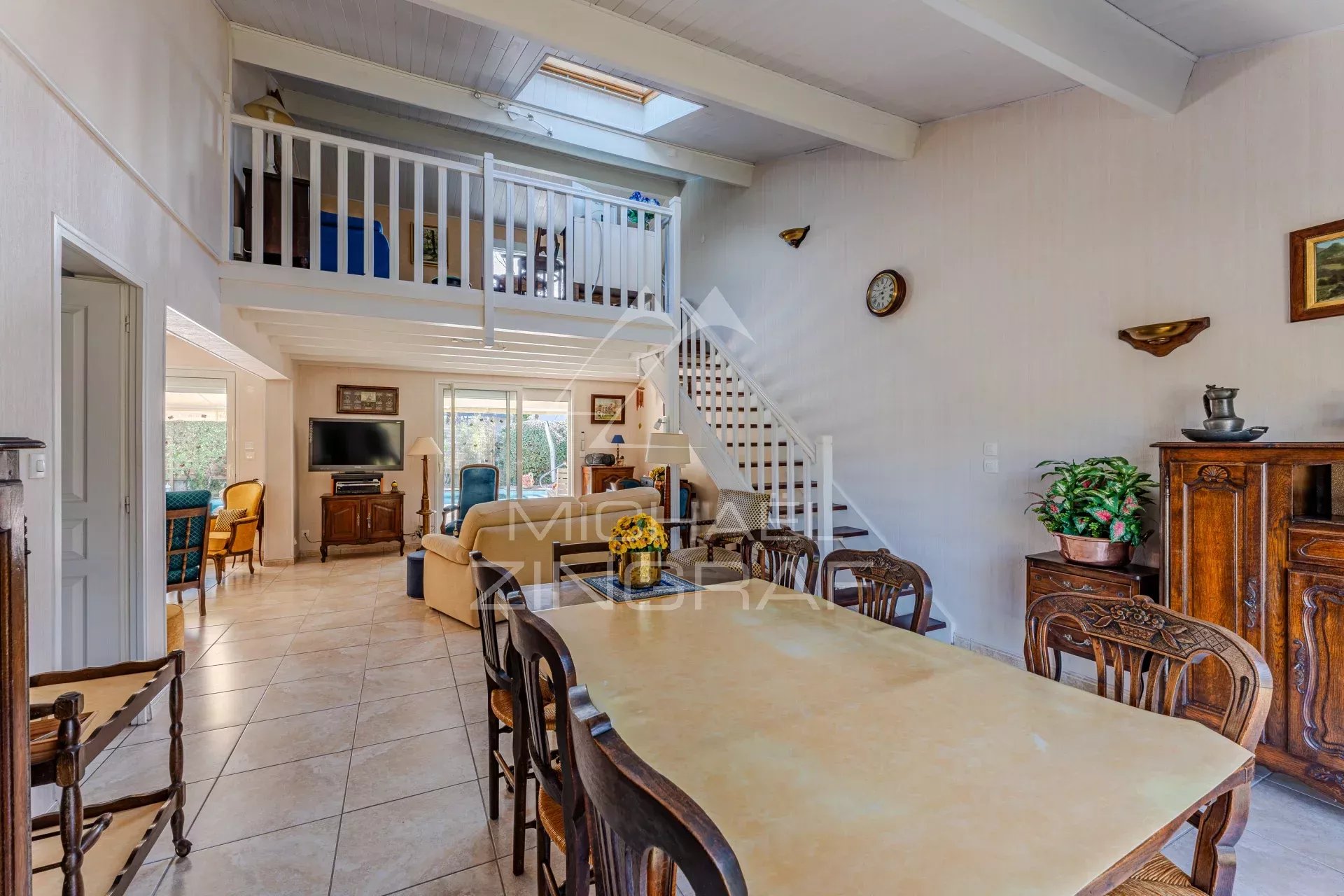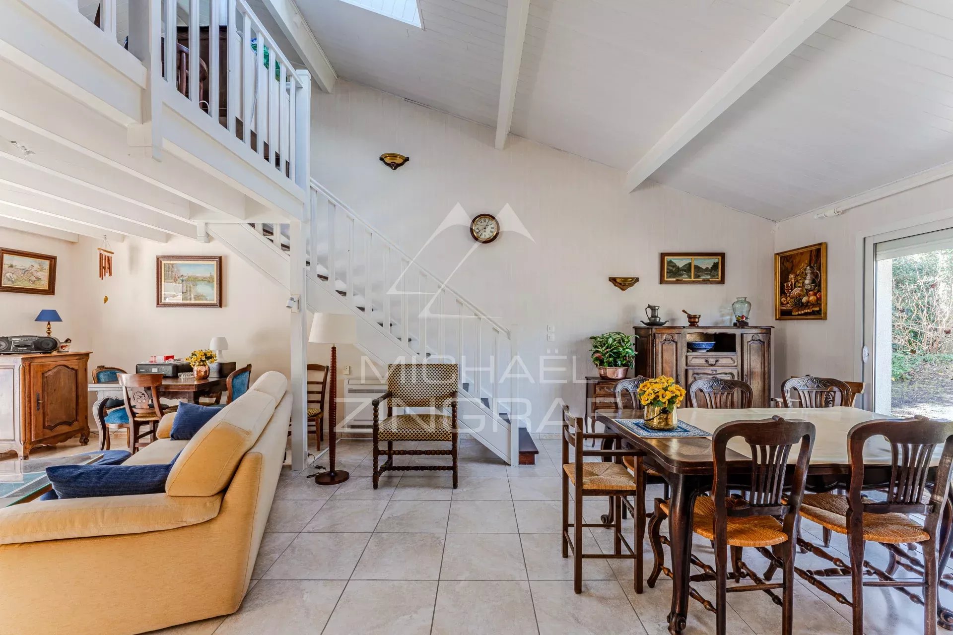 MICHAËL ZINGRAF REAL ESTATE vous présente une belle opportunité immobilière sur le très prisé Bassin d’Arcachon. Située dans un environnement recherché, à quelques pas des commerces et bénéficiant d’un accès direct aux plages de l’Atlantique, cette élégante propriété d’environ 190 m² habitables offre un cadre de vie rare, alliant confort et sérénité. Dès l’entrée, vous serez séduit par un vaste séjour baigné de lumière, prolongé par une grande terrasse ensoleillée avec piscine, idéale pour savourer les beaux jours. La maison comprend 5 chambres, dont une en rez-de-chaussée, ainsi que 4 salles d’eau, permettant d’accueillir famille et invités dans les meilleures conditions. Les amateurs d’espaces naturels profiteront également de la proximité de la Dune du Pilat, accessible en seulement 4 km grâce à la piste cyclable.
