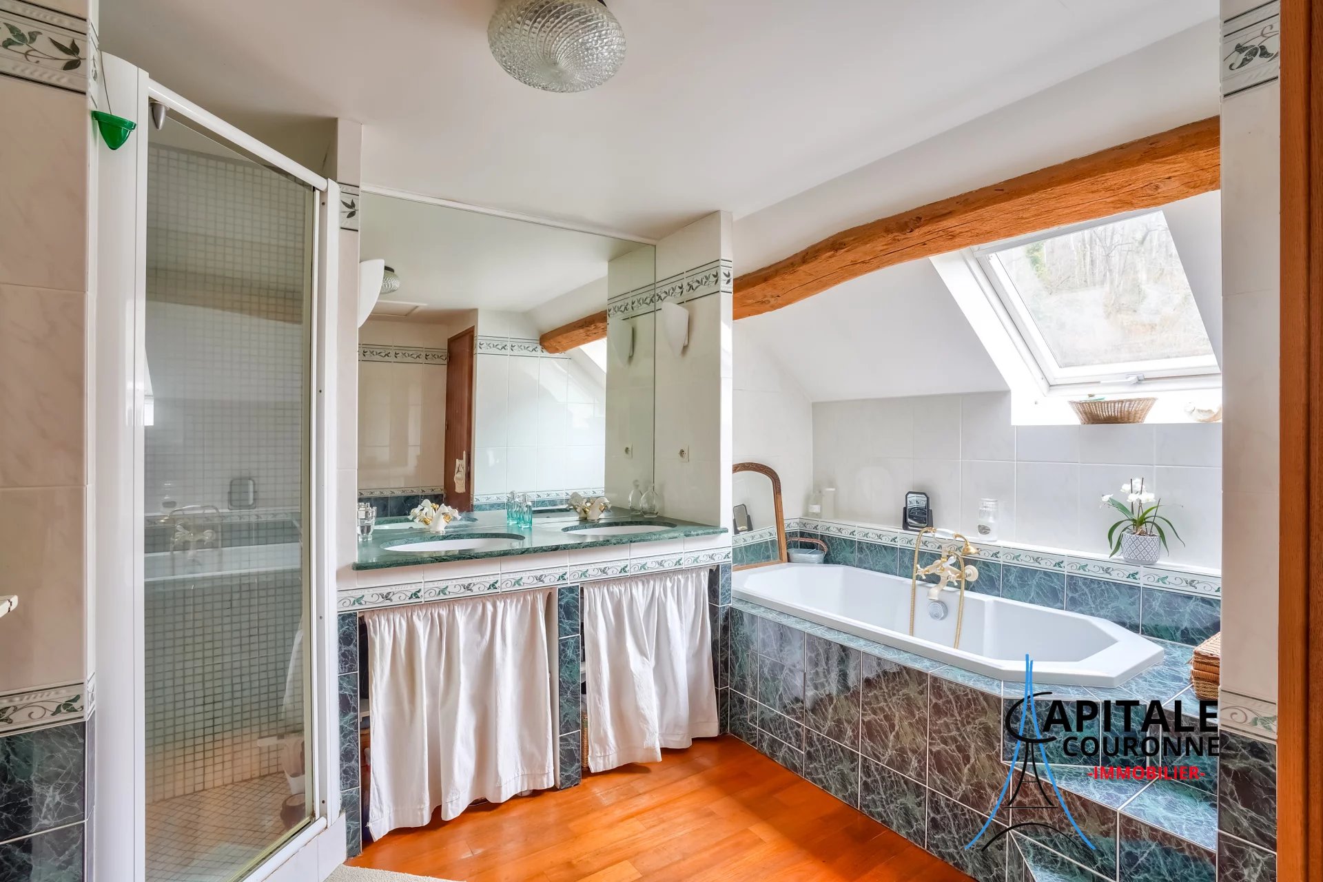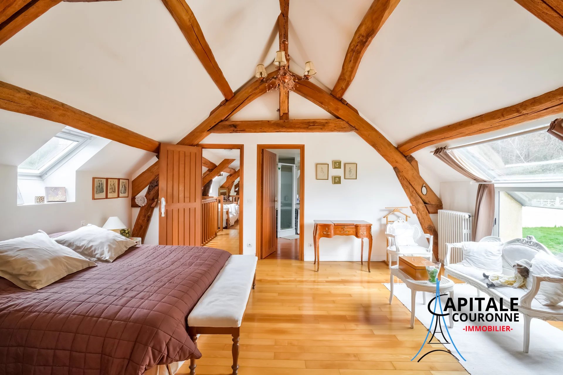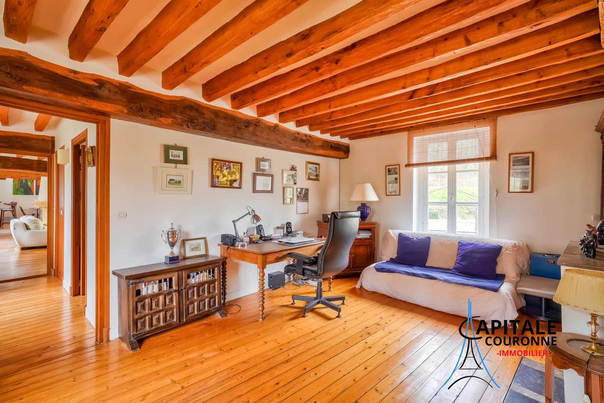 Environnement privilégié pour cette propriété du XVII à Proximité immédiate de PARIS, (Porte d’Auteuil 23 mn). Rénovation quasi-complète en 2001 de cet ancien moulin et de ses dépendances. Les matériaux haut-de-gamme utilisés lui ont conservé toute son authenticité. La demeure principale représente environ 285 m2 utilisables avec en rez-de-jardin : hall d’entrée 24 m2 , salle à manger 31 m2 , cuisine séparée 17 m2 , une chambre avec salle de douche 16 m2 env et des toilettes séparées. Le niveau supérieur propose : un très grand salon 75 m2 env toit cathédrale pour partie, lumière traversante, cheminée centrale, vue panoramique sur le bief de (200 m2 env) et son hectare 350 de verdure, accès direct à la grande terrasse d'env 140 m2. On trouve aussi à ce niveau un bureau/chambre 20 m2, une autre chambre de 20 m2, une salle de bain 10 m2 et une toilette séparée. Le dernier niveau se décompose en une chambre de 17 m2 env, la suite parentale de 50 m2 env dont la chambre 25 m2, salle de bain 11 m2, dressing 13 m2 et une toilette séparée. Et aussi en rez-de-jardin : Le local moulin et sa roue ainsi que le local chaufferie. S'ajoute les dépendances d’une surface d'environ 290 m2 dont : pour la principale (240 m2 env), en partie supérieure un appartement de 50 m2 env à rénover, au même niveau un très beau grenier de 60 m2 env aménageable avec accès à la grande terrasse et le parc. En rez-de-jardin : 3 boxes à chevaux (60 m2 env), une cave, un atelier/garage et un autre garage. Une petite grange comprend un garage et un autre grenier (20 m2 env au sol). Enfin un atelier (peinture) de 18 m2 env avec vue panoramique sur le bief et la nature (Isolé et chauffé). Un carport pour 4 véhicules. Volets en chêne massif sur toutes les ouvertures, (matériaux identiques concernant les menuiseries et portes d’intérieur). Portail et portes de garages automatisés, interphone. L’ensemble est idéal pour concilier cadre de vie et activité professionnelle. Ecole maternelle/primaire et périscolaire à 5 mn. Ramassage scolaire pour les collèges ou Lycées à 600 m. Les premiers commerces à 1,5 kms. Nationale 12 à 3 kms et Orly à 25 mn. Gares SNCF à 5 kms (Neauphe-le-Château/Pontchartrain). 1 600 000€ FAI. Honoraires Charge Vendeur. 06 09 17 03 01; Email: jp.simon@capitalecouronne.fr