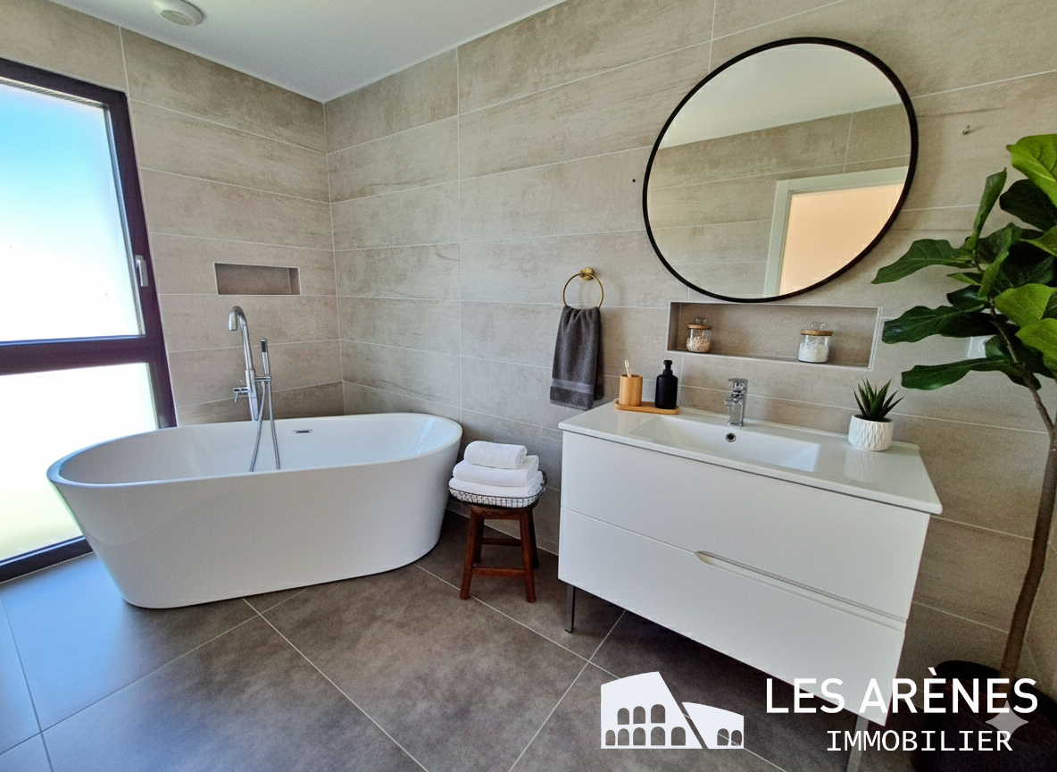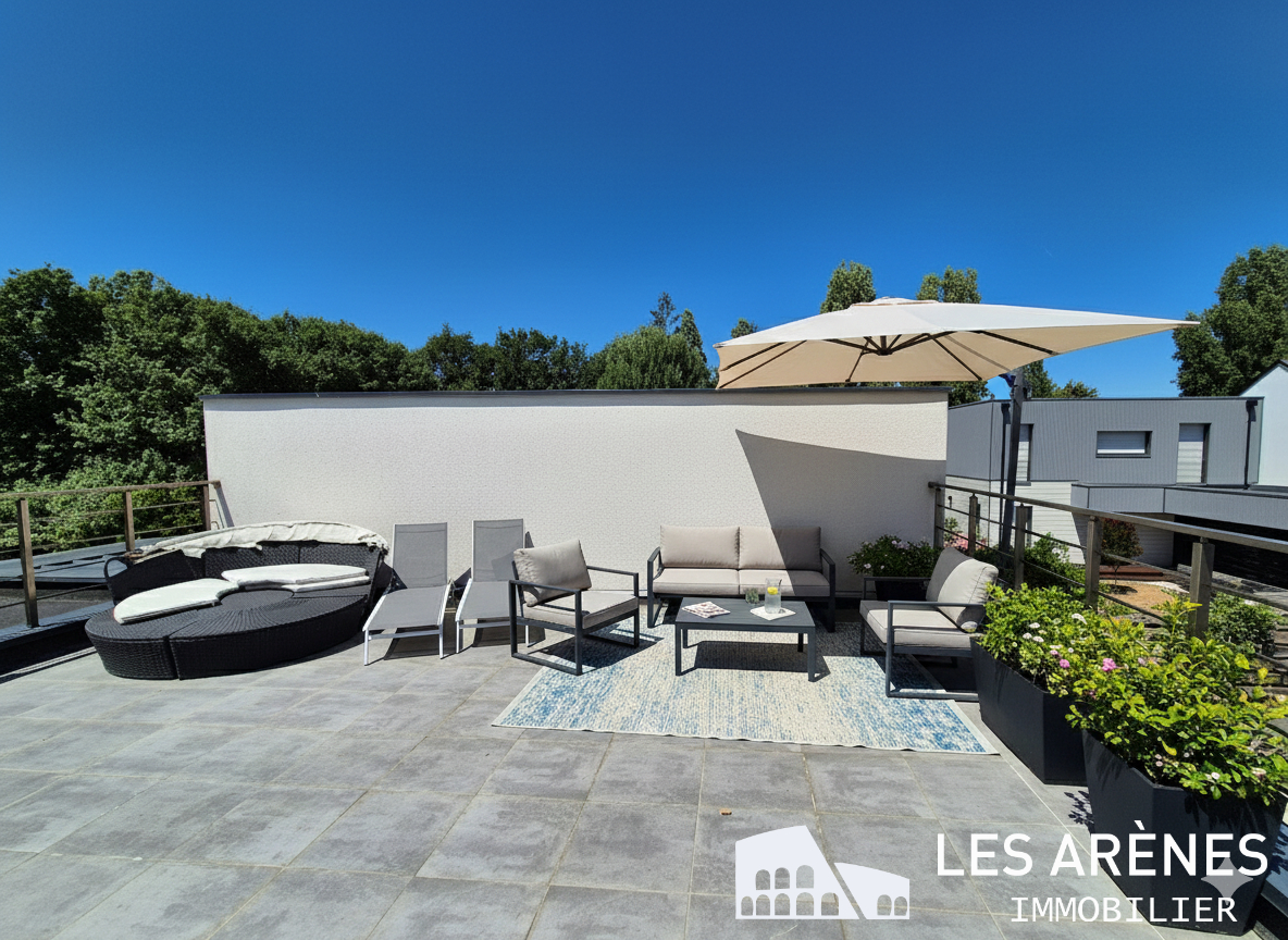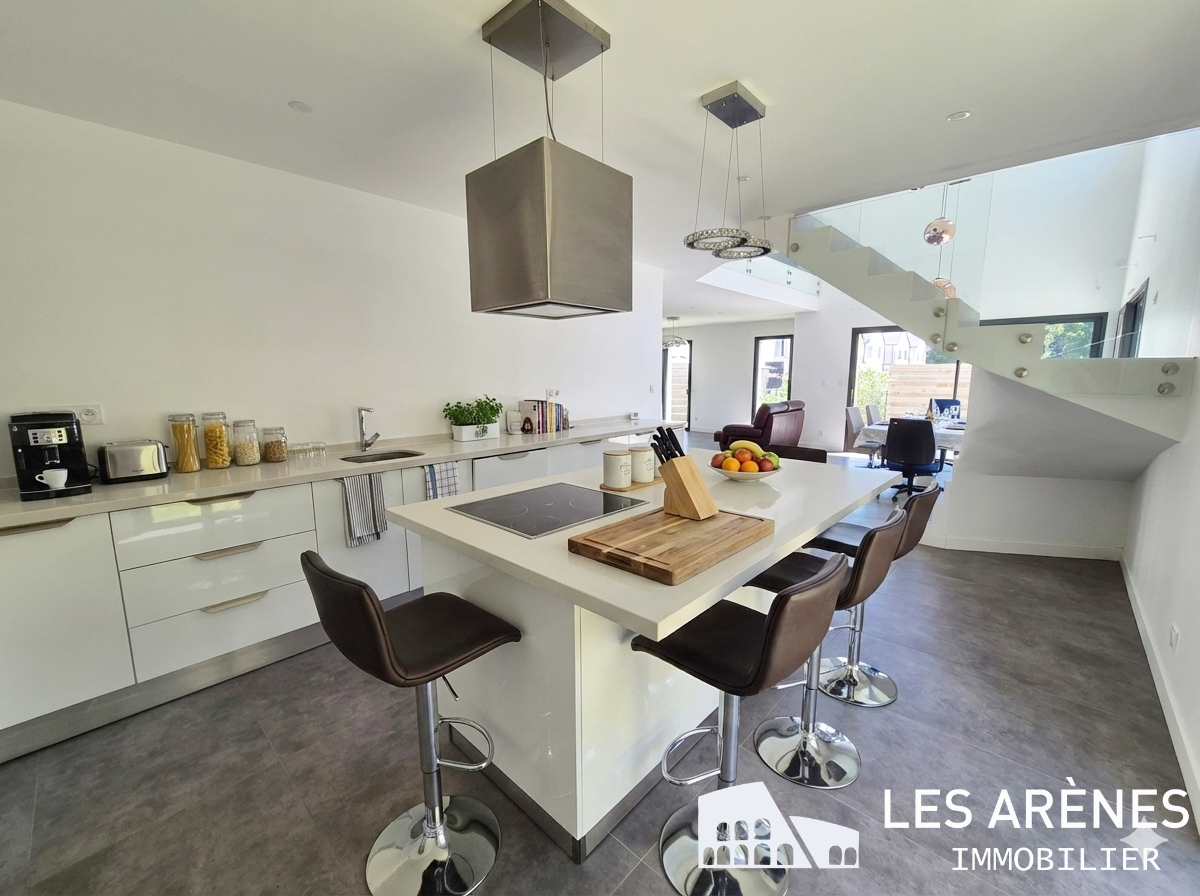 ÉCOUFLANT HIPPODROME (ANGERS Par EXPO) Les Arènes Immobilier vous présente cette magnifique maison contemporaine de 2019, alliant modernité, volumes généreux et performances énergétiques de premier ordre. Située dans le secteur prisé de l'Hippodrome à Écouflant, vous profitez d'un cadre de vie privilégié à seulement 2 minutes des portes d'Angers, avec tous les commerces et services accessibles à pied (écoles, boulangerie, complexe sportif, médecins). -LES POINTS FORTS : DPE CLASSE A : Pompe à chaleur avec chauffage au sol sur les deux niveaux (confort et économies garantis). LUMINOSITÉ : Exposition plein SUD avec de larges baies vitrées coulissantes. VIE DE PLAIN-PIED : Suite parentale au rez-de-chaussée. VOLUMES : Pièce de vie de 67 m² et chambres spacieuses (jusqu'à 23 m²). -DESCRIPTION DU BIEN : Au Rez-de-Chaussée : Vaste pièce de vie baignée de lumière, ouverte sur le jardin. Cuisine design et épurée : plan de travail en pierre, façades blanc brillant, nombreux rangements. Suite parentale (15m2) avec salle d'eau privative. Grande buanderie (19m2) avec placards, offrant un accès direct au jardin et au garage. Grand garage de 29 m² avec porte motorisée. A l'Étage : 2 très grandes chambres (23 m² et 14 m²), dont une avec accès à une terrasse privative orientée Ouest. Mezzanine de 21 m² : Espace idéal pour un grand bureau (télétravail) ou transformable facilement en 4ème chambre. Spacieuse salle de bains avec baignoire, douche et WC. -PRESTATIONS DE QUALITÉ : Menuiseries Aluminium double vitrage avec volets motorisés. Fibre optique installée. Parcelle de 313 m² entièrement close et bien orientée. DPE : A / GES : A (Excellente performance énergétique). L'AVIS DE L'EXPERT : Sa situation géographique stratégique et ses volumes en font le bien idéal pour une famille en quête de confort et de modernité. Contactez nous dès maintenant pour organiser une visite ! (Agent commercial EI) (6.00 % honoraires TTC à la charge de l'acquéreur.)