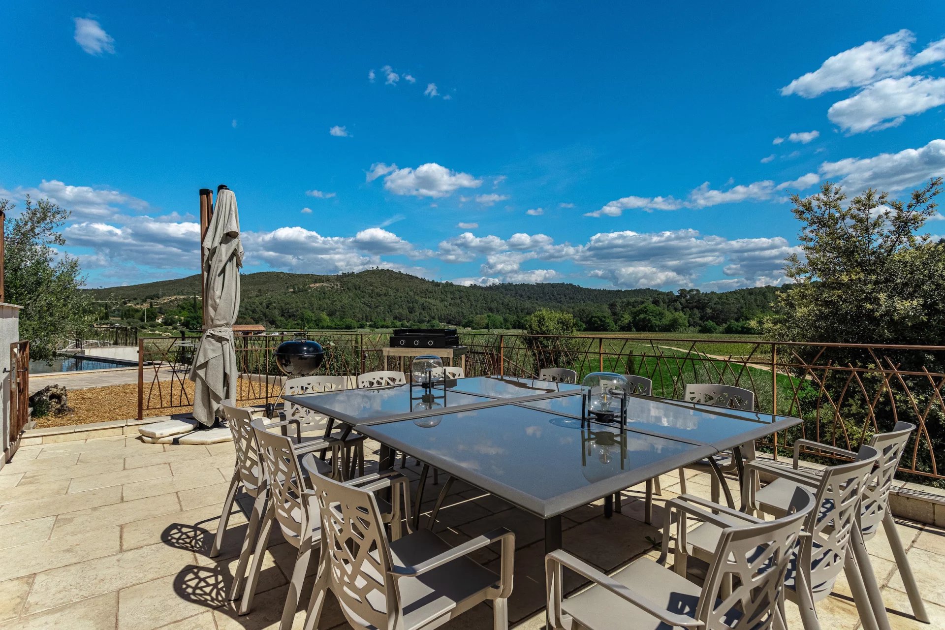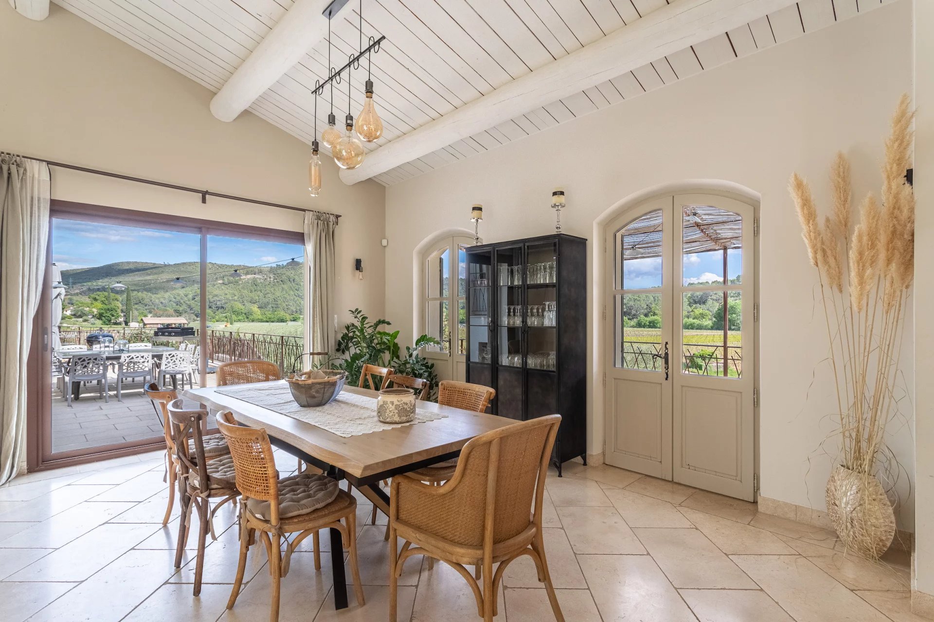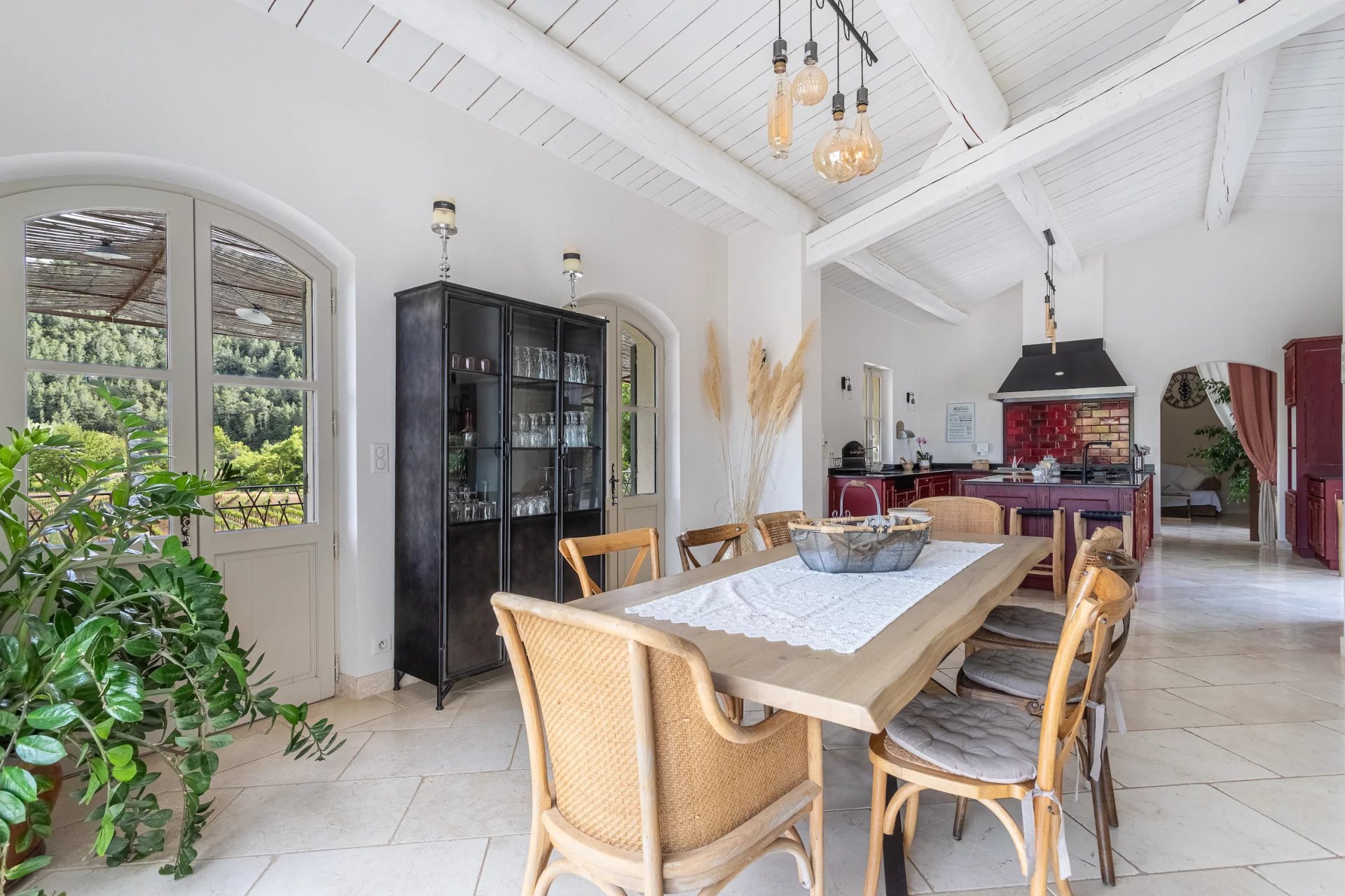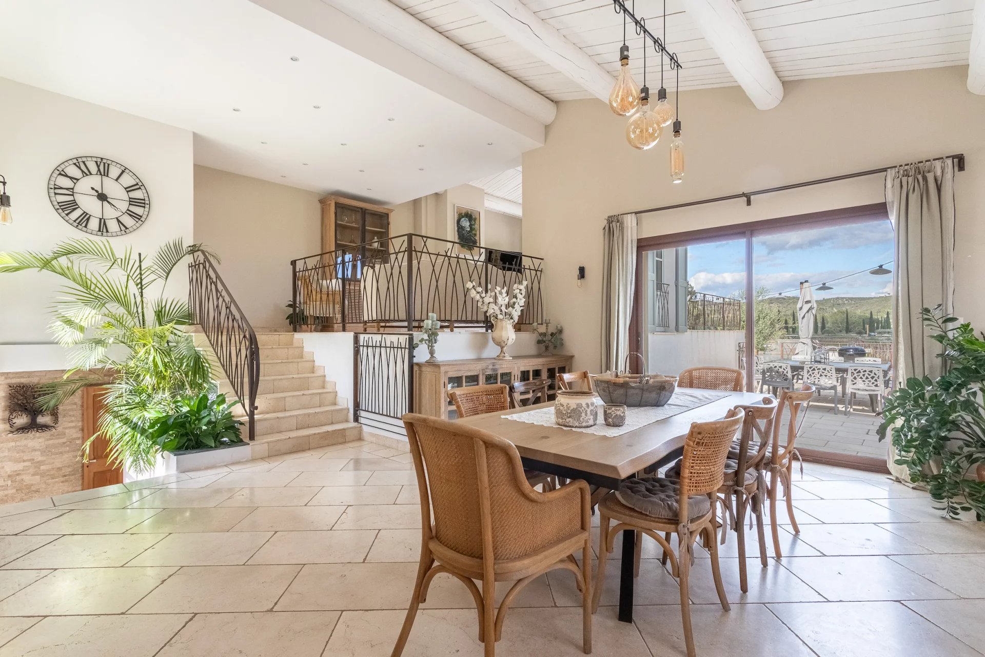 MAISON - 10 MINUTES DE COTIGNAC, au cœur de la Provence Verte, à 1h du bord de mer, des Gorges du Verdon et d’Aix en Provence, à proximité d’un adorable village de caractère et des commodités, dans un cadre campagne préservé et privilégié, superbe maison provençale implantée sur un peu plus de 3 000 m² de terrain planté d’essences méditerranéennes. La piscine à débordement (12 x 5 m) avec ses larges plages dallées agrémente le jardin qui est un véritable havre de paix. En position dominante, elle offre une vue panoramique unique et exceptionnelle sur l’ensemble de la campagne environnante. Entrée, wc, petit salon, salon avec cheminée, salle à manger, superbe cuisine provençale entièrement équipée. Ces différentes pièces de vie s’ouvrent sur des terrasses et un petit patio avec sa fontaine qui vous inviteront au repos. Buanderie. une confortable chambre parentale avec espace dressing, salle d’eau privative, wc et une jolie mezzanine. Sur une autre aile de la maison, une parie indépendante pour recevoir vos hôtes composée d’un dégagement, 3 belles chambres chacune avec salle d’eau privative, wc et s’ouvrant toutes sur des terrasses et le jardin. Appartement attenant et communiquant avec la maison avec espace salon, cuisine équipée, une chambre, salle d’eau avec wc. Garage, pièce de rangement, cave à vins, chauffage au sol, panneaux solaires photovoltaïques, ferronneries d’art… Bénéficiant d’une exposition idéale, la maison est lumineuse et agréable à vivre. En parfait état général, peu énergivore, les matériaux sont de qualité, les dimensions sont généreuses et les volumes harmonieux. Cette maison de qualité, décorée avec gout, aux volumes confortables offre de nombreuses possibilités. Coup de cœur assuré, en résidence principale ou secondaire, pour cette maison pleine de charme. Excellent rapport locatif possible (chambres d’hôtes, gîte). Les informations sur les risques auxquels ce bien est exposé sont disponibles sur le site Géorisques : georisques.gouv.fr