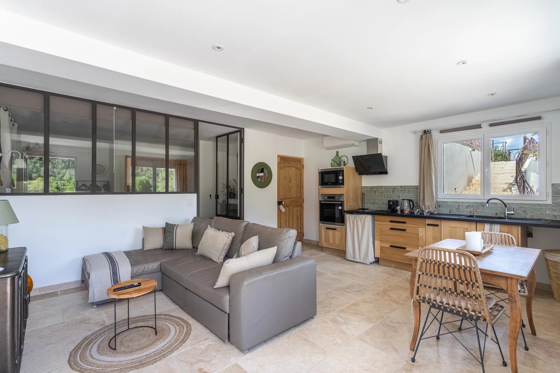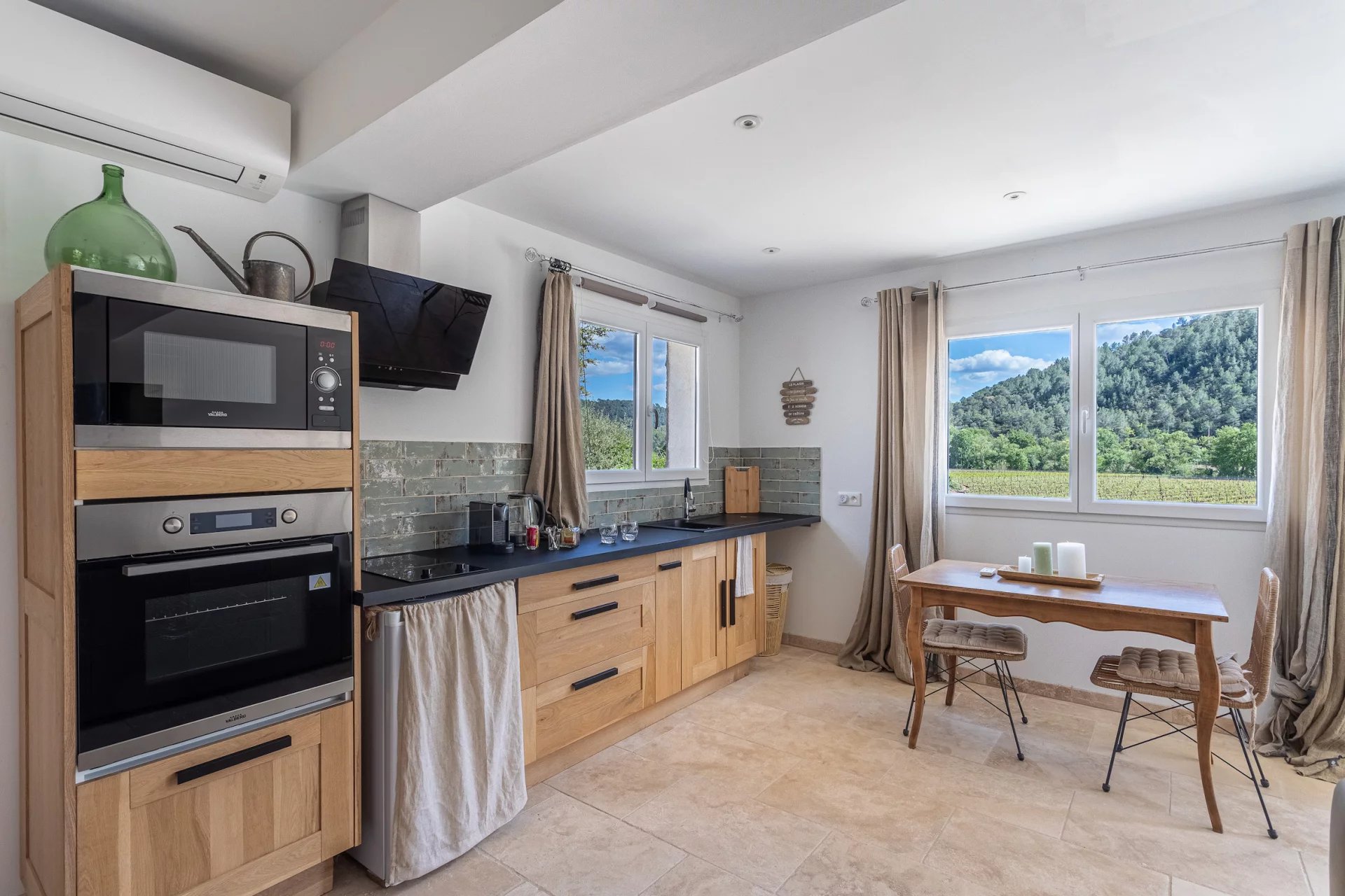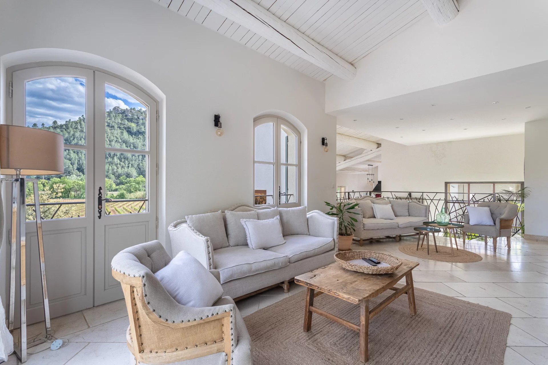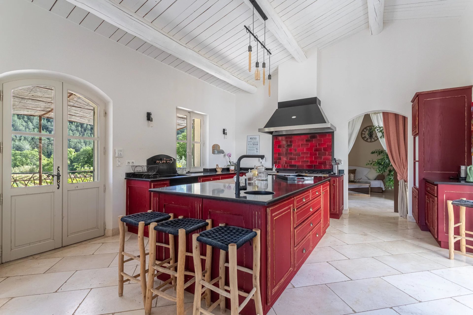 MAISON - 10 MINUTES DE COTIGNAC, au cœur de la Provence Verte, à 1h du bord de mer, des Gorges du Verdon et d’Aix en Provence, à proximité d’un adorable village de caractère et des commodités, dans un cadre campagne préservé et privilégié, superbe maison provençale implantée sur un peu plus de 3 000 m² de terrain planté d’essences méditerranéennes. La piscine à débordement (12 x 5 m) avec ses larges plages dallées agrémente le jardin qui est un véritable havre de paix. En position dominante, elle offre une vue panoramique unique et exceptionnelle sur l’ensemble de la campagne environnante. Entrée, wc, petit salon, salon avec cheminée, salle à manger, superbe cuisine provençale entièrement équipée. Ces différentes pièces de vie s’ouvrent sur des terrasses et un petit patio avec sa fontaine qui vous inviteront au repos. Buanderie. une confortable chambre parentale avec espace dressing, salle d’eau privative, wc et une jolie mezzanine. Sur une autre aile de la maison, une parie indépendante pour recevoir vos hôtes composée d’un dégagement, 3 belles chambres chacune avec salle d’eau privative, wc et s’ouvrant toutes sur des terrasses et le jardin. Appartement attenant et communiquant avec la maison avec espace salon, cuisine équipée, une chambre, salle d’eau avec wc. Garage, pièce de rangement, cave à vins, chauffage au sol, panneaux solaires photovoltaïques, ferronneries d’art… Bénéficiant d’une exposition idéale, la maison est lumineuse et agréable à vivre. En parfait état général, peu énergivore, les matériaux sont de qualité, les dimensions sont généreuses et les volumes harmonieux. Cette maison de qualité, décorée avec gout, aux volumes confortables offre de nombreuses possibilités. Coup de cœur assuré, en résidence principale ou secondaire, pour cette maison pleine de charme. Excellent rapport locatif possible (chambres d’hôtes, gîte). Les informations sur les risques auxquels ce bien est exposé sont disponibles sur le site Géorisques : georisques.gouv.fr
