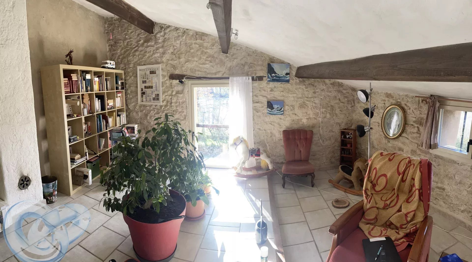 Cette bâtisse se compose en RDC d'une pièce à vivre et d'une cuisine. A l'étage, un petit et un grand salon, deux chambres dont une avec mezzanine, une salle d'eau et des toilettes. Chauffage poêle à bois et insert, ne pas tenir compte donc du coup de l'énergie mentionné ci-dessous sur le diagnostic, celui-ci étant basé uniquement sur l'électricité.