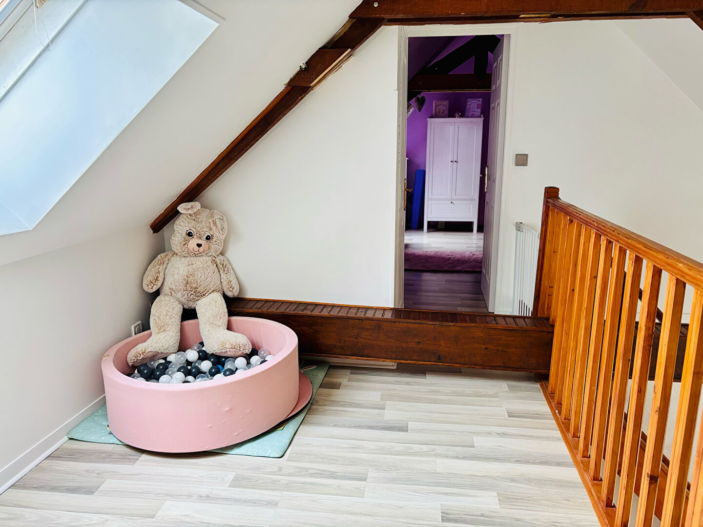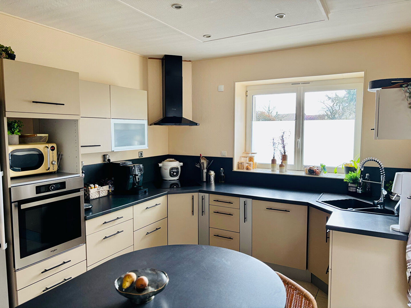 Cette maison offre de beaux volumes et des espaces fonctionnels, parfaits pour une vie de famille. Dès l'entrée, vous découvrirez un séjour chaleureux avec cheminée insert, un salon lumineux, ainsi qu'une cuisine aménagée et équipée. Le rez-de-chaussée comprend également une chambre, une salle de douche, une salle de bains avec double vasque, un WC, un dressing, une buanderie et une chaufferie. Une superbe véranda exposée plein sud vient compléter cet espace de vie. A l'étage, une mezzanine dessert deux chambres supplémentaires ainsi qu'un WC. Un garage et une cave apportent des espaces de rangement pratiques. Le tout sur un terrain de 797 m², offrant un cadre agréable et verdoyant. Enfin, les informations sur les risques auxquels ce bien est exposé sont disponibles sur le site Géorisques : www.georisques.gouv.fr. Pour plus d'informations, contactez Koté Maison. (4.50 % honoraires TTC à la charge de l'acquéreur.)