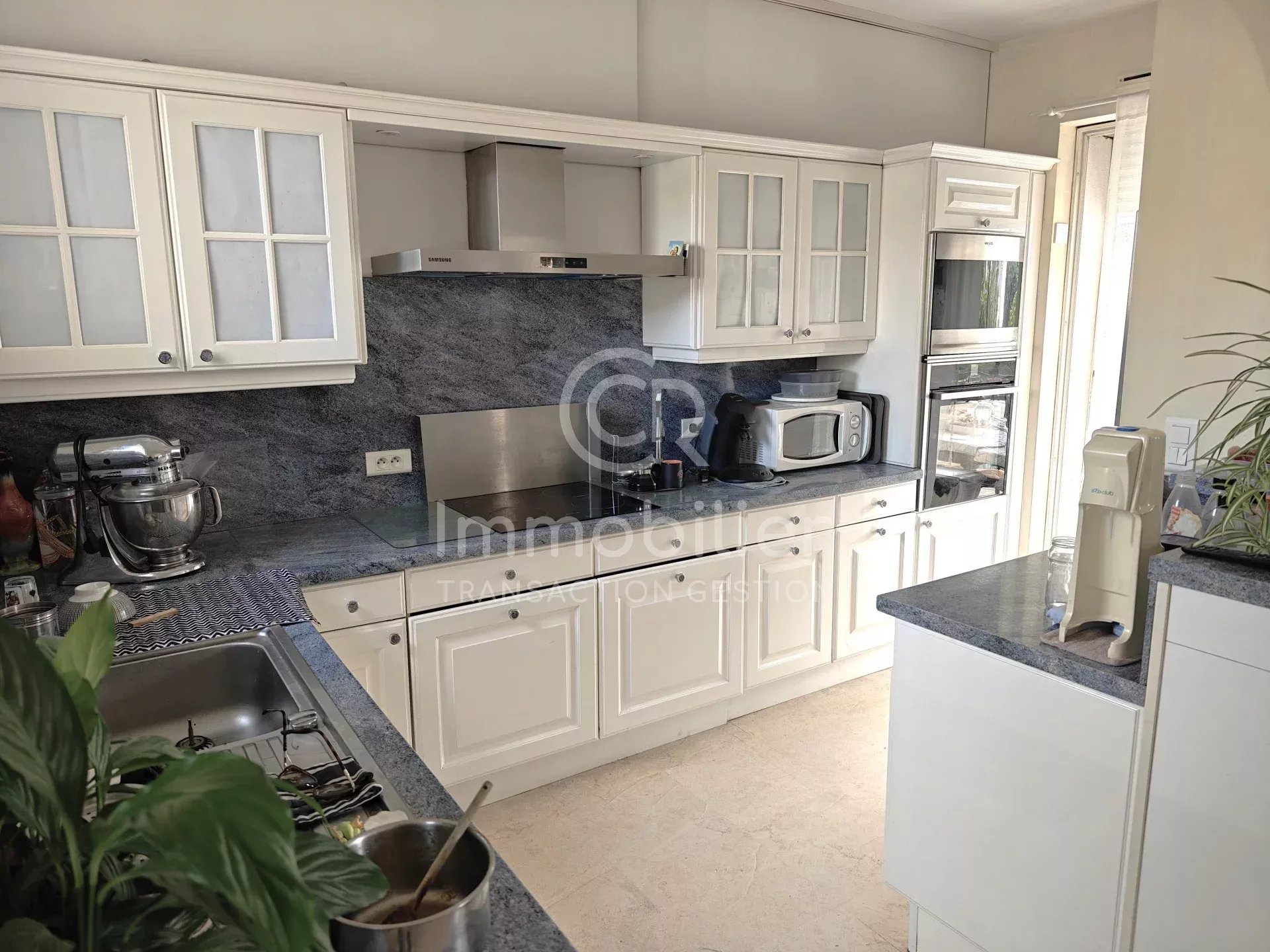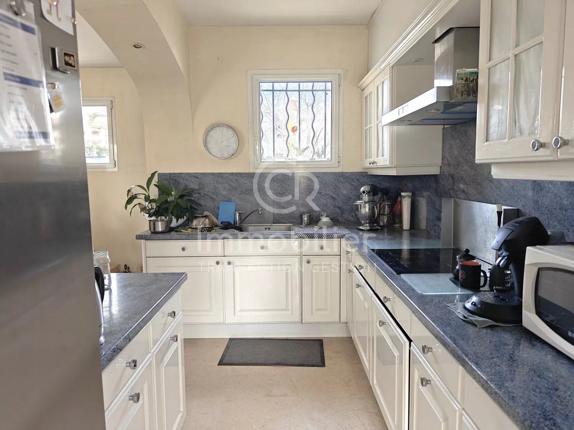 NOUVEAU - EN CO EXCLUSIVITE - RARE SUR LE SECTEUR ! Cannes la bocca, dans une rue très calme proche du centre ville, proches toutes commodités, Belle construction récente de 2001, antisismique, en béton et briques à l'intérieur (pas de cloisons en plaques de platres) pour une bonne qualité de construction.. Toute la toiture (avec 3 rangs de génoises pour une façade préservée), est équipée de panneaux solaires afin d'avoir une très faible dépense électrique! Cette construction a été conçue pour éviter les inondations (bien qu'écartée grâce aux travaux effectué par la ville depuis 2015), grâce à son espace de vie bien pensé au 1er niveau. Au RDC, se trouve un grand garage équipé d'un chargeur pour les véhicules électriques, et d'une grande buanderie/cave, Au 1er étage, le séjour avec très grande terrasse de 20m² plein SUD et vue jardin, la cuisine ouverte, et un WC invité. Au dernier niveau, un dégagement avec placard, salle de douche équipé d'une cabine SAUNA/HAMAM, une suite parentale (douche et baignoire jacuzzi) avec mezzanine, une 2 eme chambre, et une 3eme avec encore une mezzanine pour profiter d'un espace de stockage supplémentaire ou d'un coin bureau/chambre d'amis. WC en fond de couloir. Balcon attenant aux chambres. Toute la maison est climatisée et dispose d'un chauffage au sol (pompe à chaleur) afin de garder vos petits pieds bien au chaud toute l'année! Galandages, volets roulants électrique, store électrique, piscine, aspiration centralisée à tout les étages, VMC.. cette villa disposent d'un grande nombre de prestations. Jardin avec grande terrasse couverte, piscine hors sol et cabanon en bois. Excellent état général. Plages à pieds en 10 minutes maximum. Taxe foncière 1823 €. Pas de copropriété.