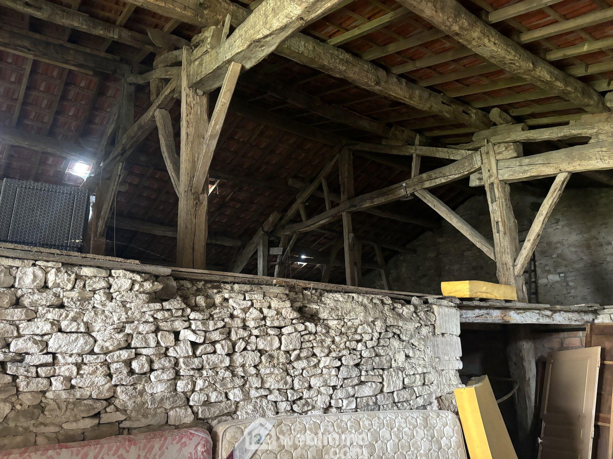 Grange d'environ 125 m², parcelle en herbe.