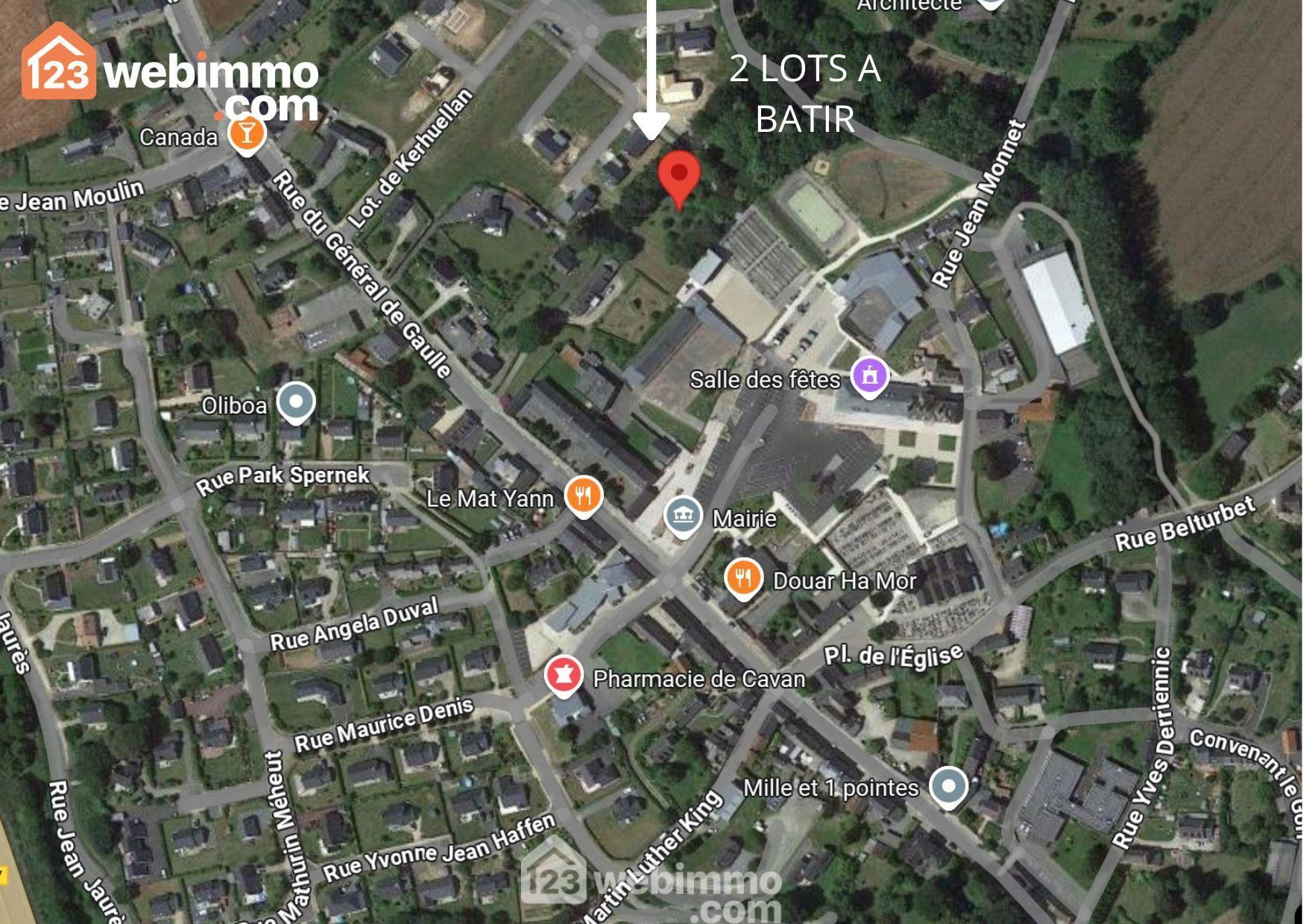 Votre agence 123webimmo l'immobilier au meilleur prix vous présente : Dans le bourg de CAVAN, à 50m des commerces et de l'école, terrain à bâtir de 633 m², viabilisé et borné.