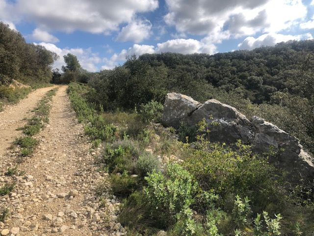 Secteur boisé de chênes et garrigue, chemins d'accès proche, zone escarpée / pentue pour le haut du terrain, semi plate niveau bas - Possibilité bois de chauffage