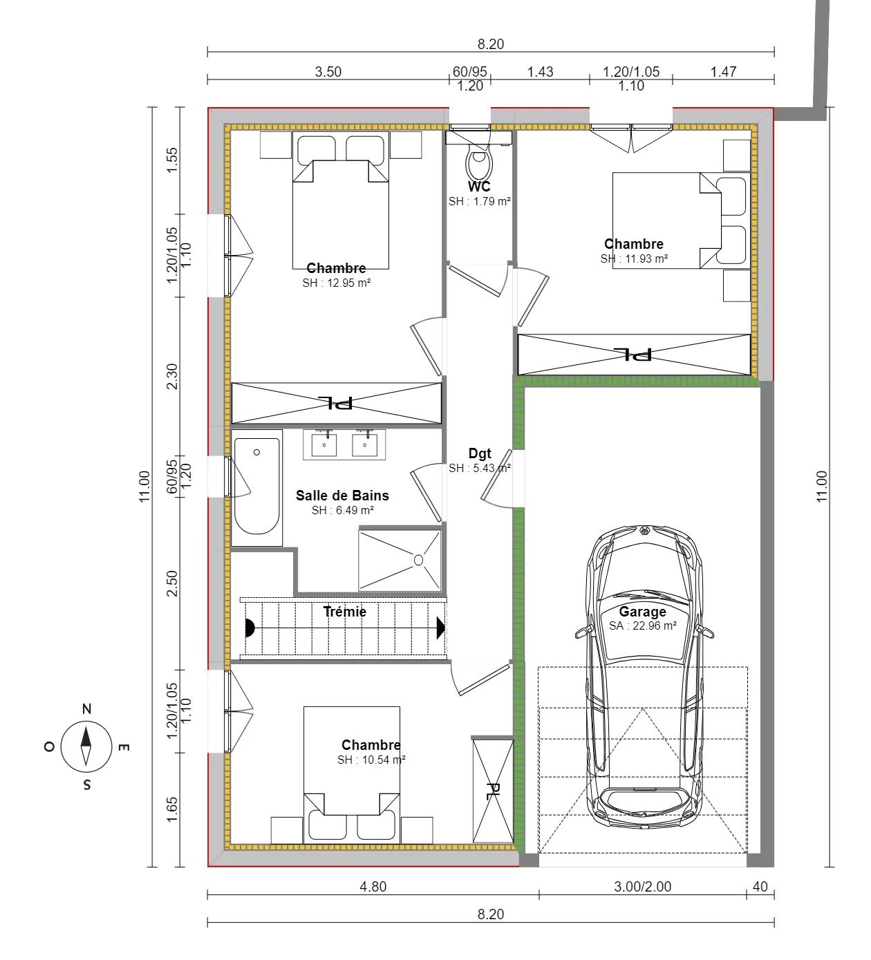 La maison présentée sur son terrain de 627 m² offre plus de 120 m² habitable + un garage.