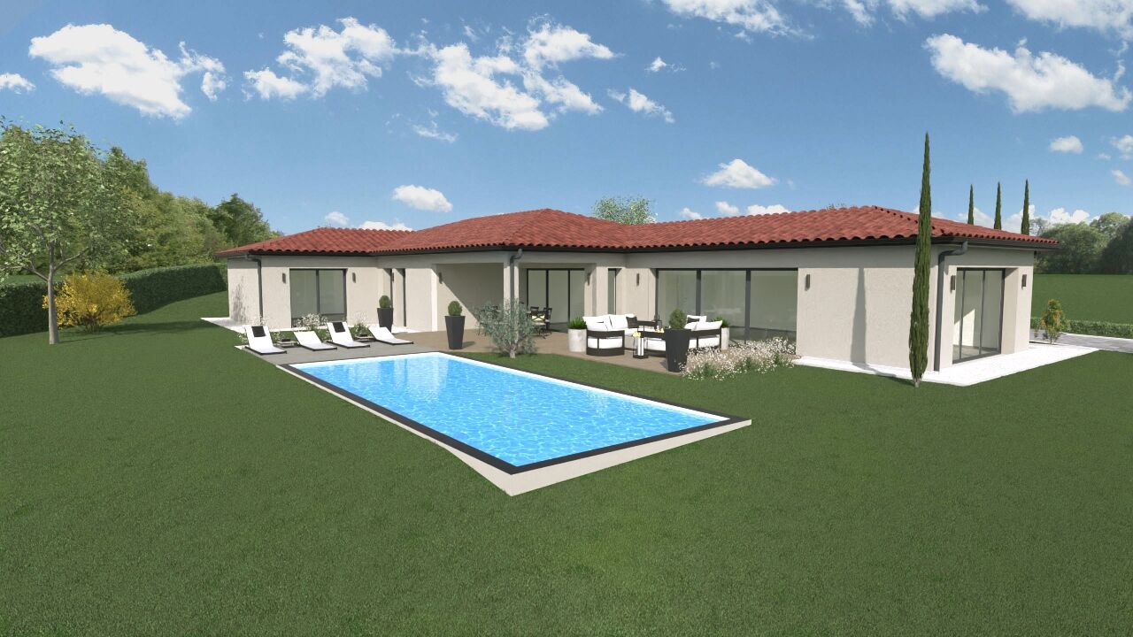 Nous vous proposons ce projet de villa semi-contemporaine d'une surface de 170 m² habitables entièrement de plain pied (maison à étage possible) le tout aux Normes RE2020.