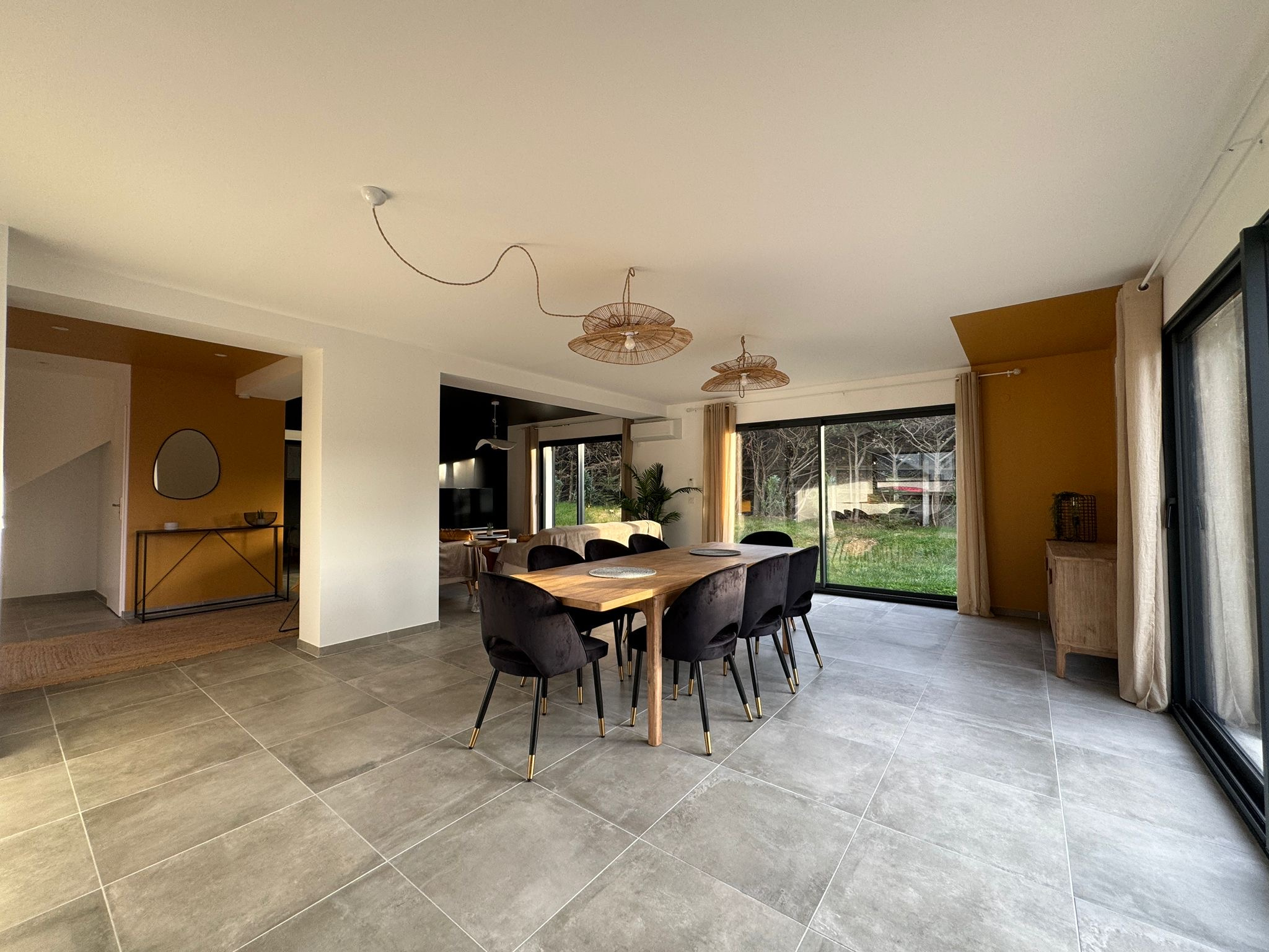 La maison dispose d'une superbe pièce de vie de plus de 50m2 avec cuisine équipée, nombreuses baies vitrées Sud Ouest, une suite parentale avec dressing et salle de douche, ainsi que 3 autres chambres à l'étage avec salle de bains.