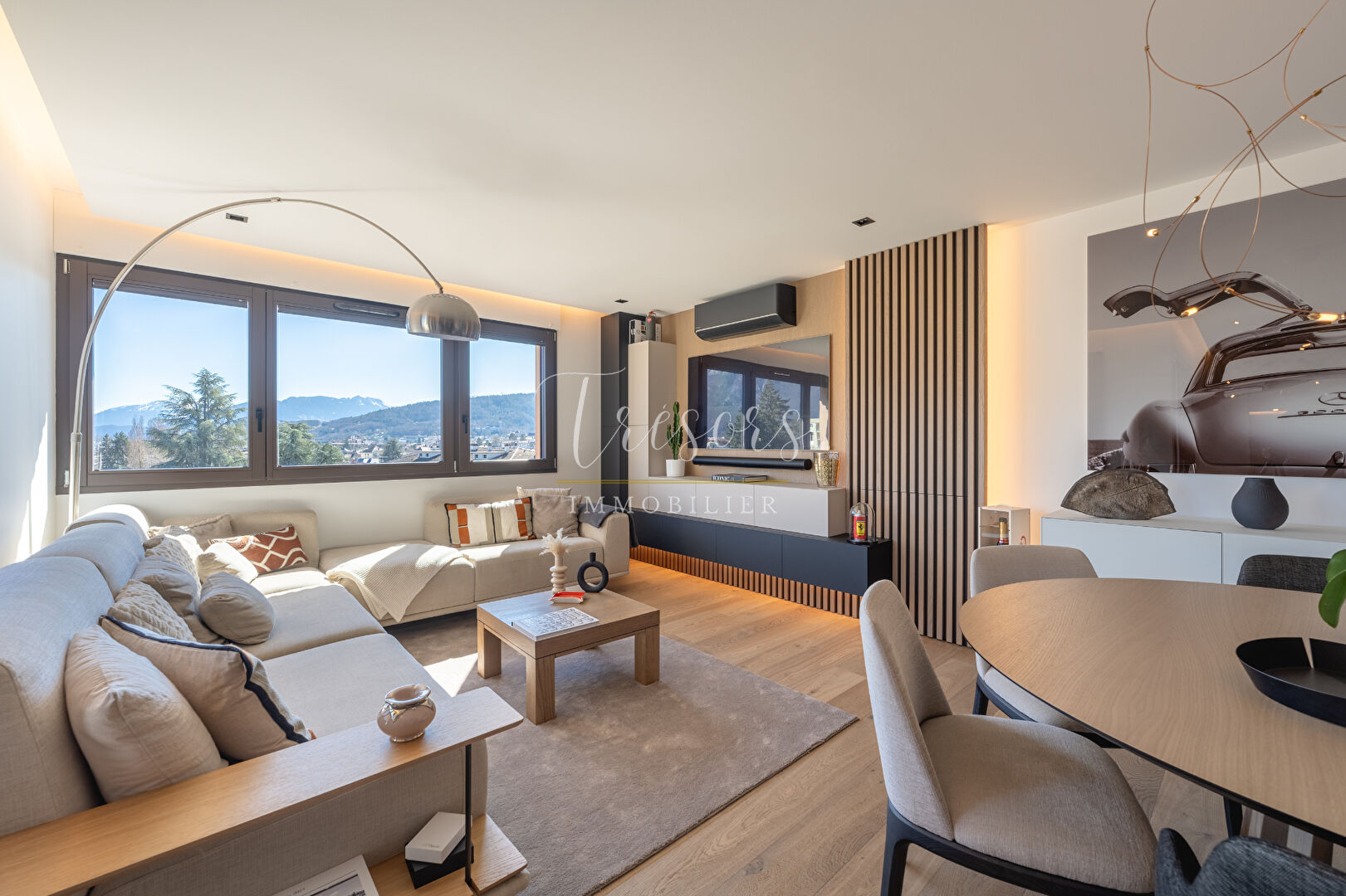 Annecy, l'agence Trésors Immobilier vous propose en dernier étage avec une vue à 180°, De Type 5, 107m² entièrement rénové aux prestations haut de gamme et sur mesure . Il se compose : d' une entrée, un espace séjour offrant un panorama sur la ville et ses montagnes, cuisine entièrement aménagée et équipée donnant accès au balcon exposé SUD. L'espace nuit dispose d'une suite parentale avec dressing salle d'eau et WC privatif, 3 chambres avec dressings, une salle de bain, un WC séparé, une buanderie.En annexe une grande cave de 8m², local à vélo places de stationnements en copropriété sécurisé.Garage possible en sus.Contact Charlotte ROBERTET 06 70 83 62 65crobertet@tresorsimmobilier.comRSAC/893567057 Agent commercial indépendantCopropriété de 29 lots - dont 29 lots habitation. (Pas de procédure en cours).Charges annuelles : 3650