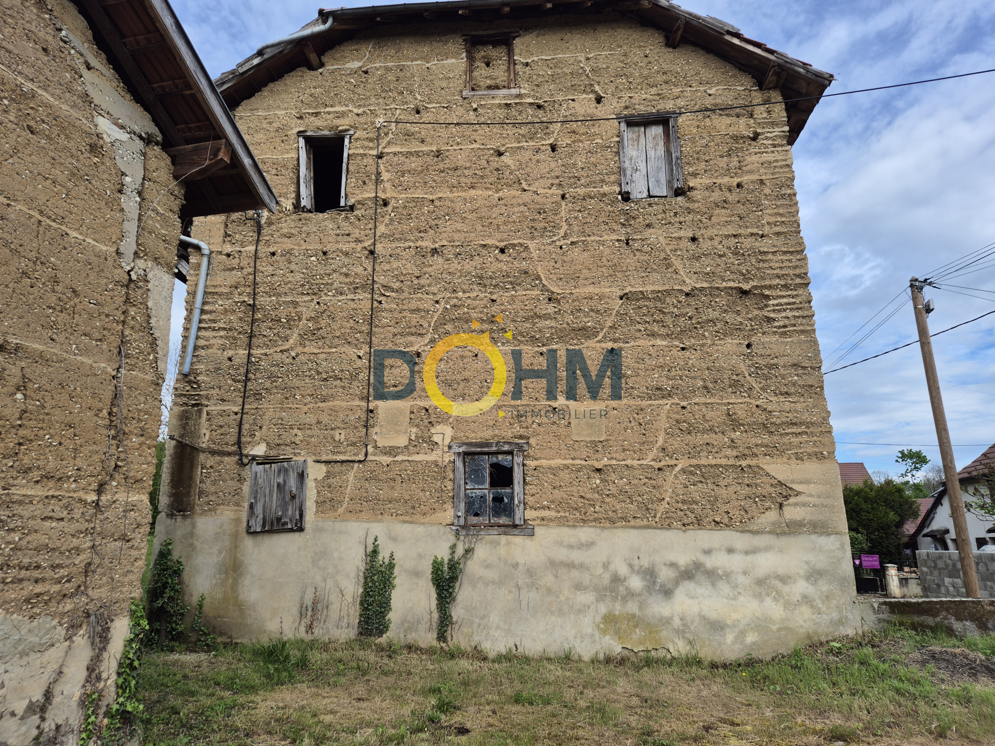 L'agence DOHM immobilier vous propose une grange à réhabiliter divisée en deux lots sur deux niveaux plus combles sur un terrain plat de 394m2 et de 583 m2 avec bassin.