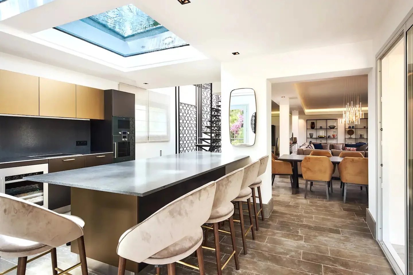 Situata nel cuore di Antibes, questa villa da sogno di 220 m² offre un equilibrio perfetto tra eleganza e comfort. Con cinque camere da letto e sette ambienti totali, lo spazio è ampio e accogliente, ideale per famiglie numerose o per chi ama ospitare. La doppia vetrata assicura un isolamento eccellente, mantenendo la villa silenziosa e confortevole in ogni stagione. Gli interni sono stati progettati con attenzione ai dettagli, offrendo finiture di alto livello e arredi moderni che esaltano la luminosità degli spazi. Il salone ampio è perfetto per momenti di relax o per intrattenere gli ospiti, mentre la zona pranzo offre un setting raffinato per cene eleganti. La cucina completamente accessoriata si integra perfettamente con il resto dell’ambiente, permettendo di godere di una vita domestica di qualità. All'esterno, l'ampio giardino e la terrazza con piscina diventano un rifugio perfetto durante le calde giornate estive. Il design paesaggistico è stato pensato per garantire privacy e tranquillità, creando un’oasi di pace. Le grandi finestre consentono di apprezzare la vista sul verde circostante, rendendo questa villa una residenza esclusiva e irripetibile.
