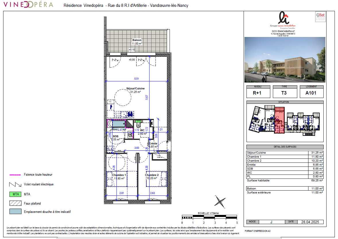 La résidence Vinedopéra située au coeur de l'écoquartier Biancamaria offre un environnement verdoyant. La résidence de 12 logements a été conçue pour vous offrir une qualité de vie optimale et des prestations de qualité parfaitement adaptée à vos besoins. Découvrez sans plus tarder ce T3 de 69,25m² comprenant un balcon, une entrée avec emplacement de placard, un séjour-cuisine, deux chambres, une salle de bains, un WC séparé. Contactez nous au 03 87 75 67 67 ou par e-mail : accueil@immogeorges.com PTZ + TVA 5,5% (sous réserve d'éligibilité) Copropriété de 12 lots - dont 12 lots habitation.